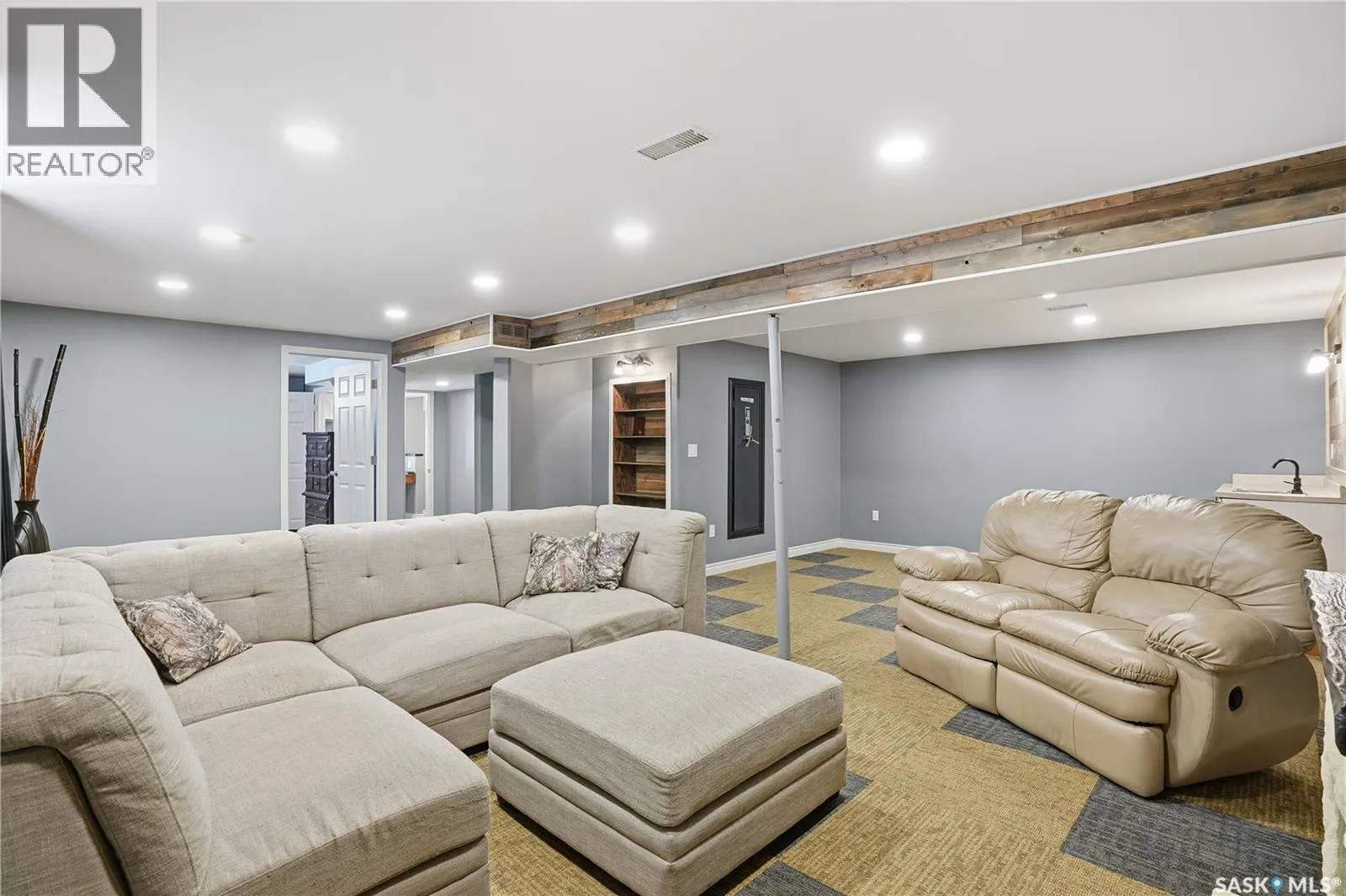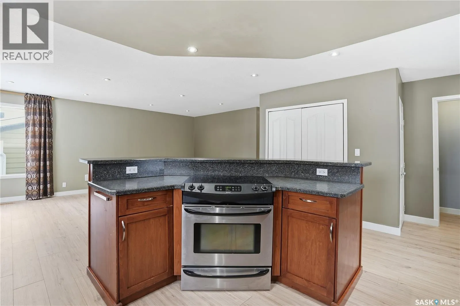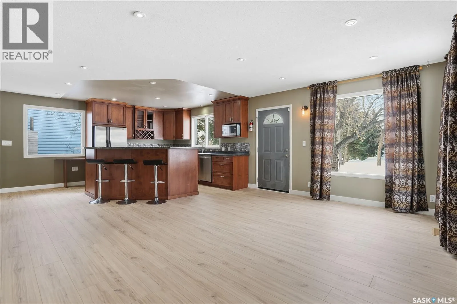 Welcome home to this fully finished 1,020 sq. ft. bungalow in the heart of Davidson, ideally located between Saskatoon and Regina. Just one block from the elementary school, this family-friendly location allows you to watch the kids walk to school right from your window. This well-cared-for home offers 2+1 bedrooms and two bathrooms, along with a beautiful, spacious kitchen featuring plenty of cabinets, ample counter space, and brand-new flooring that flows seamlessly through the living room, kitchen, and dining areaâperfect for everyday living and entertaining. The convenience of main-floor laundry and the abundance of storage throughout the home add to its ease and functionality. All appliances are included, making this home truly move-in ready. The fully finished basement provides excellent additional living space, featuring a great flex area complete with a wet bar and built-in safe. Outside, enjoy a generous-sized yard ideal for relaxing or hosting friends and family, as well as an oversized single detached insulated garage. Whether youâre downsizing, purchasing your first home, commuting to Saskatoon or Regina, or simply looking for comfortable living in a welcoming community, this home checks all the boxes. Priced to sell. Contact your REALTOR® today to book your own private viewing. (id:27476)