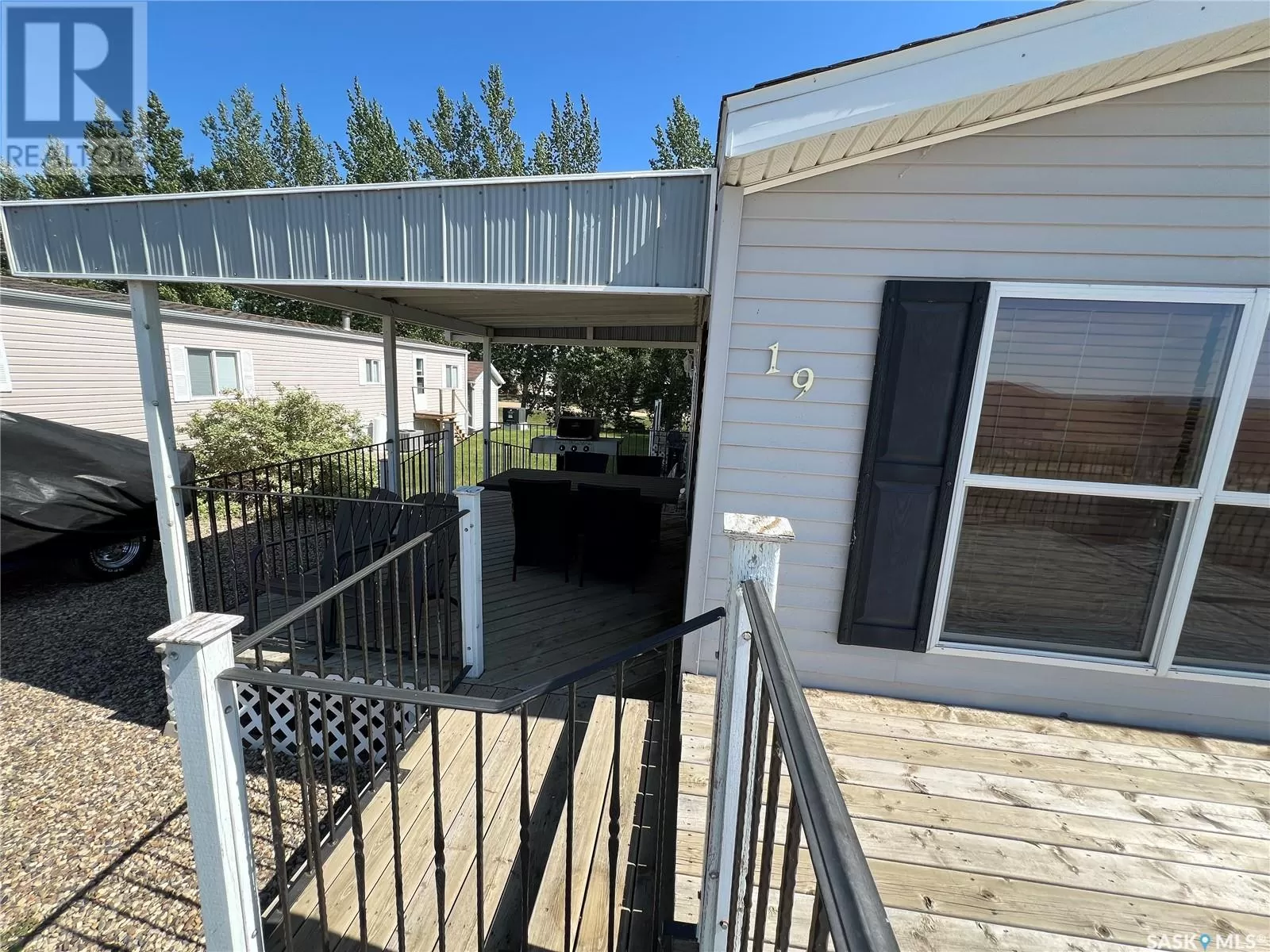 Welcome to 19 Meadowlark Mesa at Palliser Regional Park. Your perfect escape with breathtaking views of Lake Diefenbaker and unforgettable sunsets. This charming property feature three bedroom two bathrooms. One being a 4 pc ensuite located off of your generous size primary bedroom. There is a spacious living room, a bright kitchen with ample cabinet storage. Everything you need for comfort and relaxation is located right here. Step outside and enjoy the yard where you will find a few different but all fantastic areas to gather. Coffee out from enjoying the views and a evening beverage under the covered patio. All surrounded by friendly neighbours and peaceful vibes. Palliser Park offers a beautiful golf course, parks, markets, pancake breakfasts, swimming pool, concession and so much more. I can say without a doubt this is my favorite place to be in the summer and I would love to show you why. Lets set up a tour and you will see why people fall in love with Palliser Park and its sandy beaches. (id:27476)
