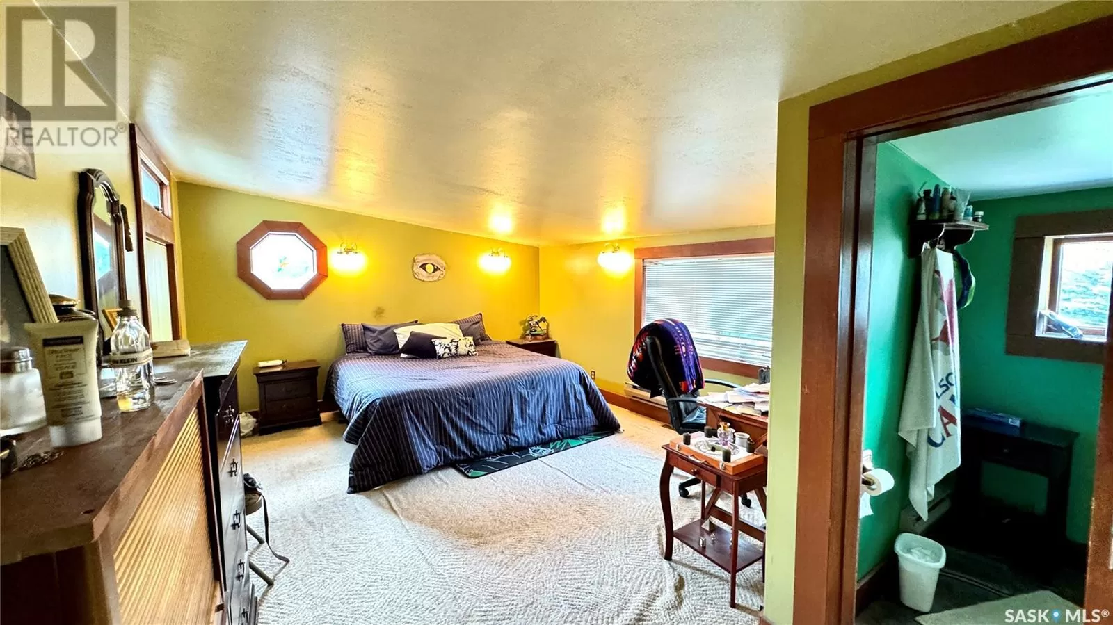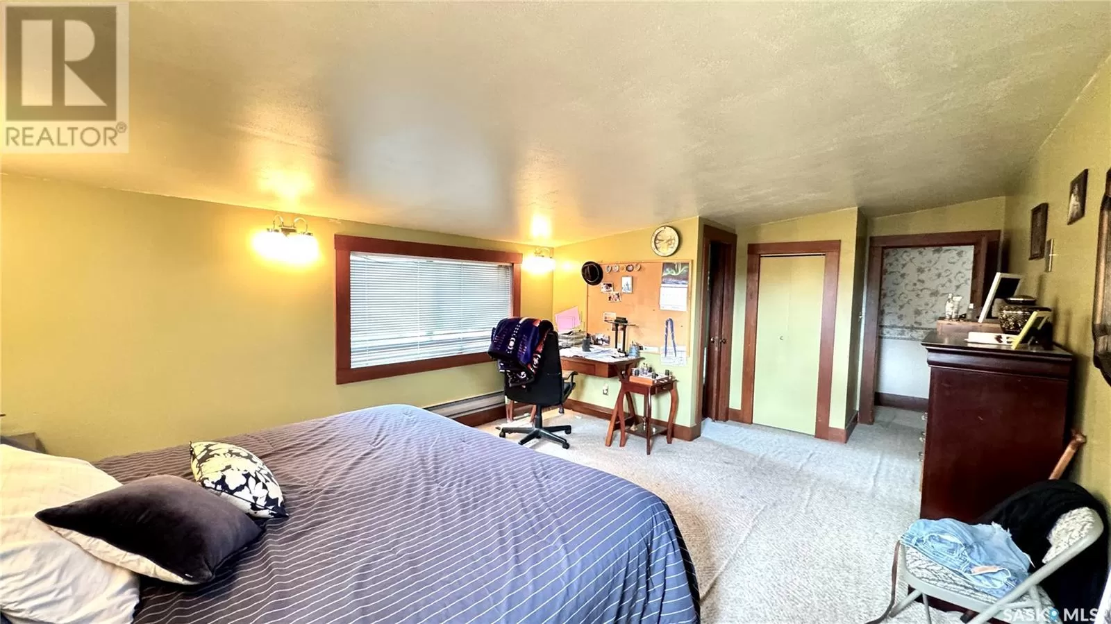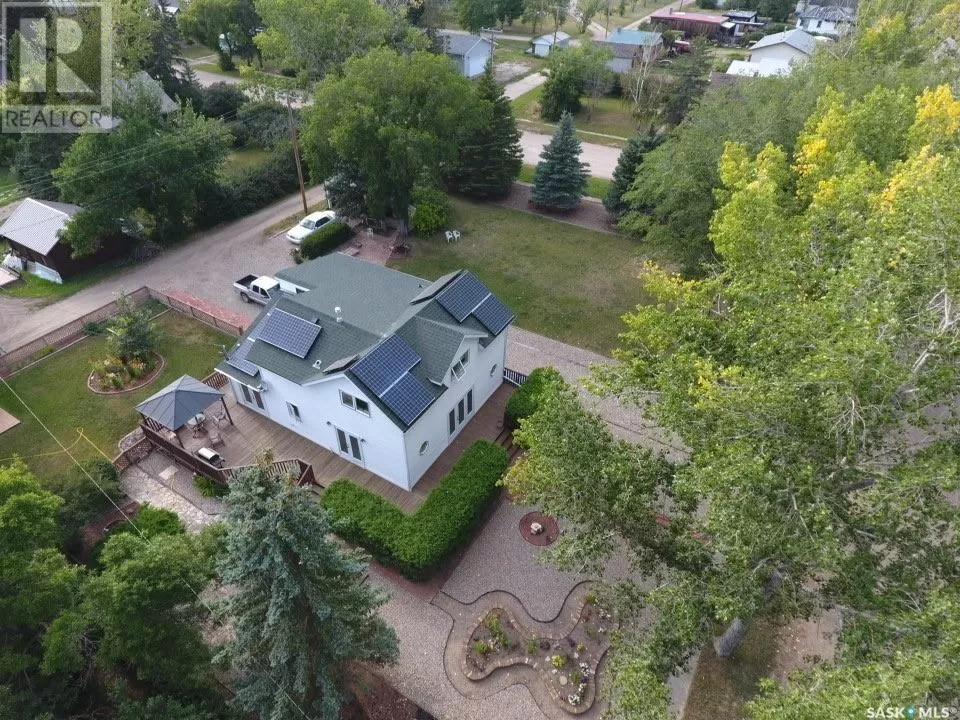 106 2ND ST EAST DINSMORE, SK Discover the perfect blend of history and modern convenience in this stunning 1910 character home, expanded with a 1983 addition. Boasting over 2,200 sq ft, the home offers 5+ bedrooms, 4 baths, including a MASTER ENSUITE, and main floor laundry. A main-floor den doubles as a potential 6th bedroom. The FINISHED BASEMENT features a family room, bedroom, 3-piece bath, workshop, and large utility room. ORIGINAL HARDWOOD TRIM preserves the home's timeless charm, complemented by updated vinyl tile flooring in the bathrooms. Patio doors open to a spacious deck, ideal for relaxing or entertaining. Solar panels on the roof enhance energy efficiency, with just 1.5 years of payments remaining. UTILITY COSTS ARE ECONOMICAL, with SaskPower at $2,300/year, SaskEnergy at $800/year, and water/sewer/garbage averaging $110/month. Key updates in the last 15 years include a new hot water boiler, select windows and doors, and shingles on the house and garage (2016). Sewer lines were roto-rootered six years ago, and the town replaced most clay lines from the house to the street. Situated on a large 162x130 lot, the property features mature landscaping, perennial gardens, spruce trees, stone pathways, and vibrant flower beds. A single-car detached garage adds utility to this beautiful property. This home combines historical charm, modern updates, and energy efficiencyâa unique and inviting place to call home! (id:27476)