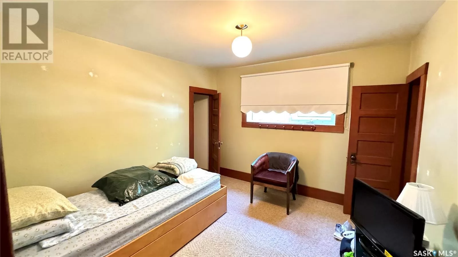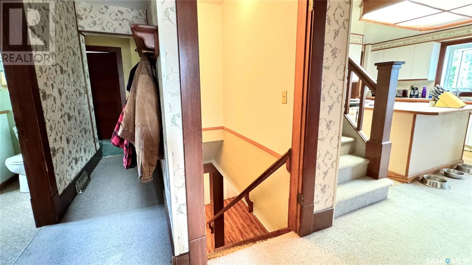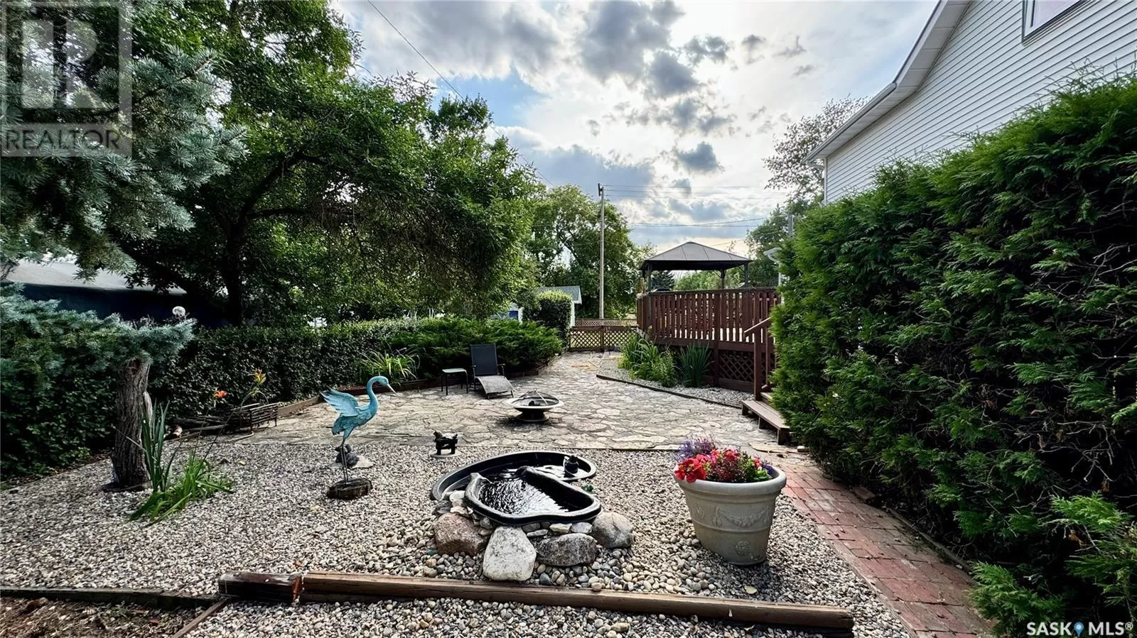 106 2ND ST EAST DINSMORE, SK Discover the perfect blend of history and modern convenience in this stunning 1910 character home, expanded with a 1983 addition. Boasting over 2,200 sq ft, the home offers 5+ bedrooms, 4 baths, including a MASTER ENSUITE, and main floor laundry. A main-floor den doubles as a potential 6th bedroom. The FINISHED BASEMENT features a family room, bedroom, 3-piece bath, workshop, and large utility room. ORIGINAL HARDWOOD TRIM preserves the home's timeless charm, complemented by updated vinyl tile flooring in the bathrooms. Patio doors open to a spacious deck, ideal for relaxing or entertaining. Solar panels on the roof enhance energy efficiency, with just 1.5 years of payments remaining. UTILITY COSTS ARE ECONOMICAL, with SaskPower at $2,300/year, SaskEnergy at $800/year, and water/sewer/garbage averaging $110/month. Key updates in the last 15 years include a new hot water boiler, select windows and doors, and shingles on the house and garage (2016). Sewer lines were roto-rootered six years ago, and the town replaced most clay lines from the house to the street. Situated on a large 162x130 lot, the property features mature landscaping, perennial gardens, spruce trees, stone pathways, and vibrant flower beds. A single-car detached garage adds utility to this beautiful property. This home combines historical charm, modern updates, and energy efficiencyâa unique and inviting place to call home! (id:27476)