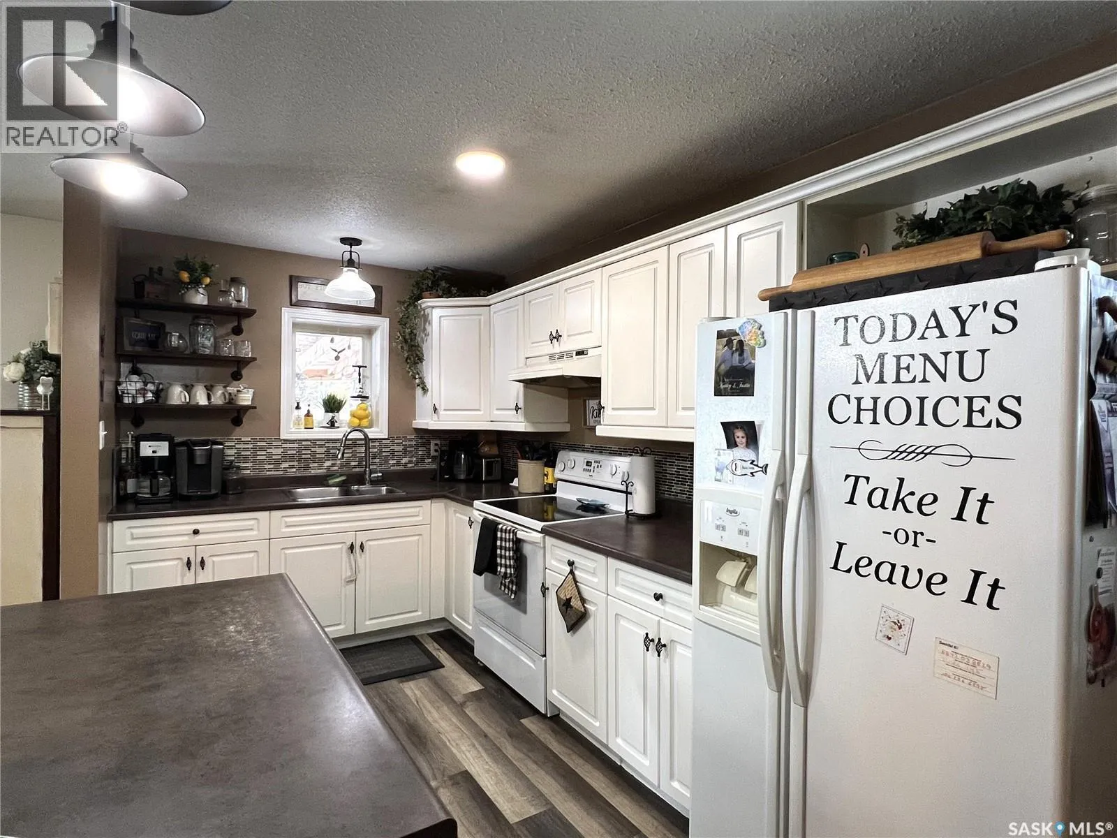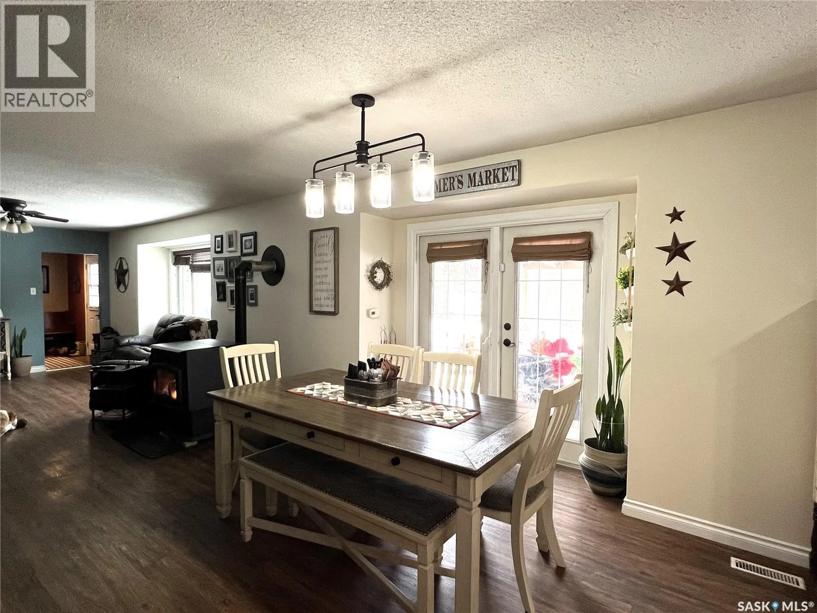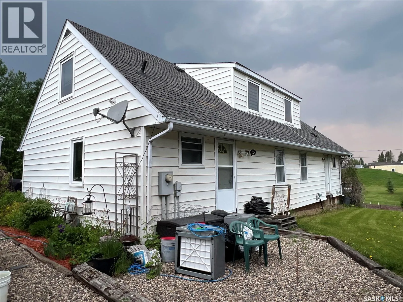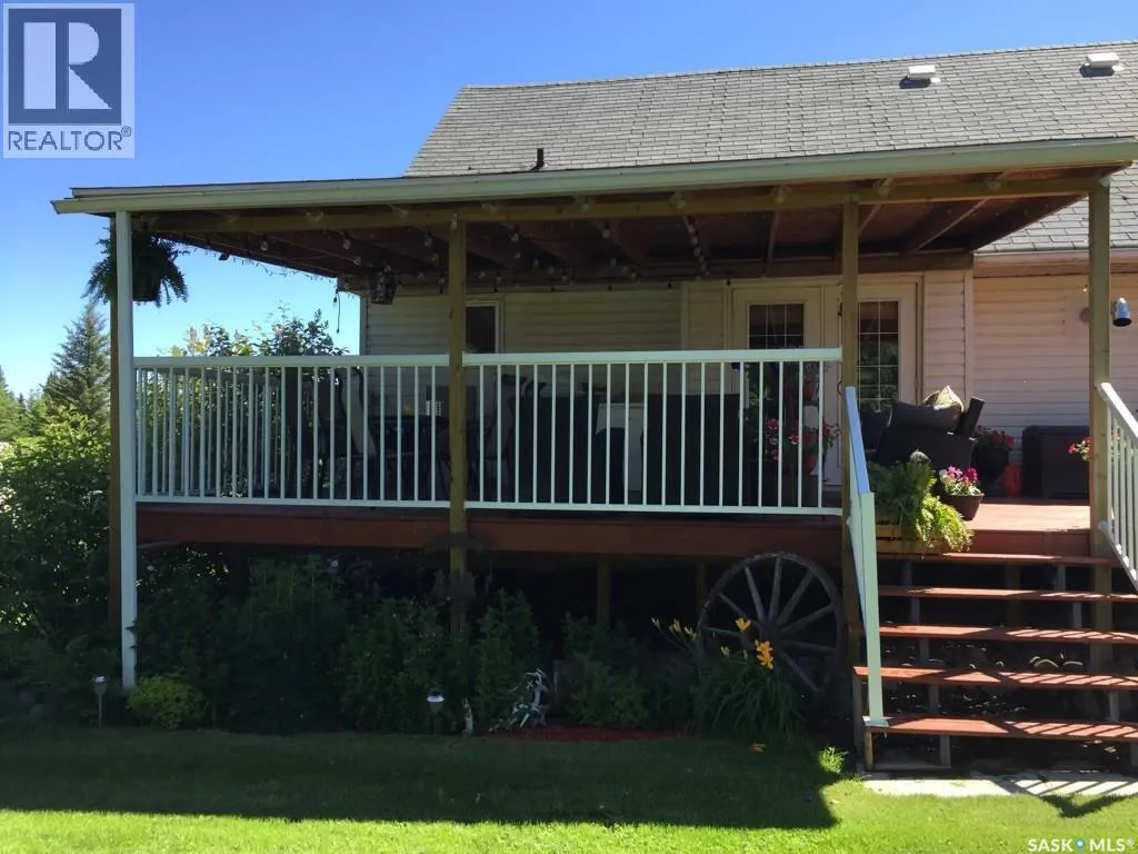 Pride in ownership really shows in this property. This beautiful 5 bedroom home is located in the quiet community of Dorintosh, 5 minutes from the Meadow Lake Provincial Park, giving you access to beautiful lakes, fishing, hiking, quading, swimming, boating, cross country skiing, snowmobiling and mini golf. Main level features kitchen, dining room with access to covered deck, living room with new pellet stove in 2024, primary bedroom with walk in closet, 2 bathrooms and main floor laundry. 2nd level consists of 4 nice sized bedrooms with original hardwood flooring. House was moved onto a 4ft crawl space in 2009 and totally updated at that time. Energy efficiency program was done in 2009 which included new insulation and new Hi-eff furnace. All new windows except primary bedroom and one bathroom. New shingles in 2019, washer & dryer 2024 and 3pc bathroom was updated in 2023. New flooring & light fixtures in kitchen and some fresh paint throughout. Yard is beautifully landscaped with garden area, raised beds, perennial flowers, raspberries, 2 apple trees, asparagus & rhubarb. Outbuildings include a C-Can shop with attached storage shed, two 8x10 storage sheds and a fenced dog run. The property is comprised of two lots which gives you lots of space for RV parking and lake toys! This property is a must see!! (id:27476)