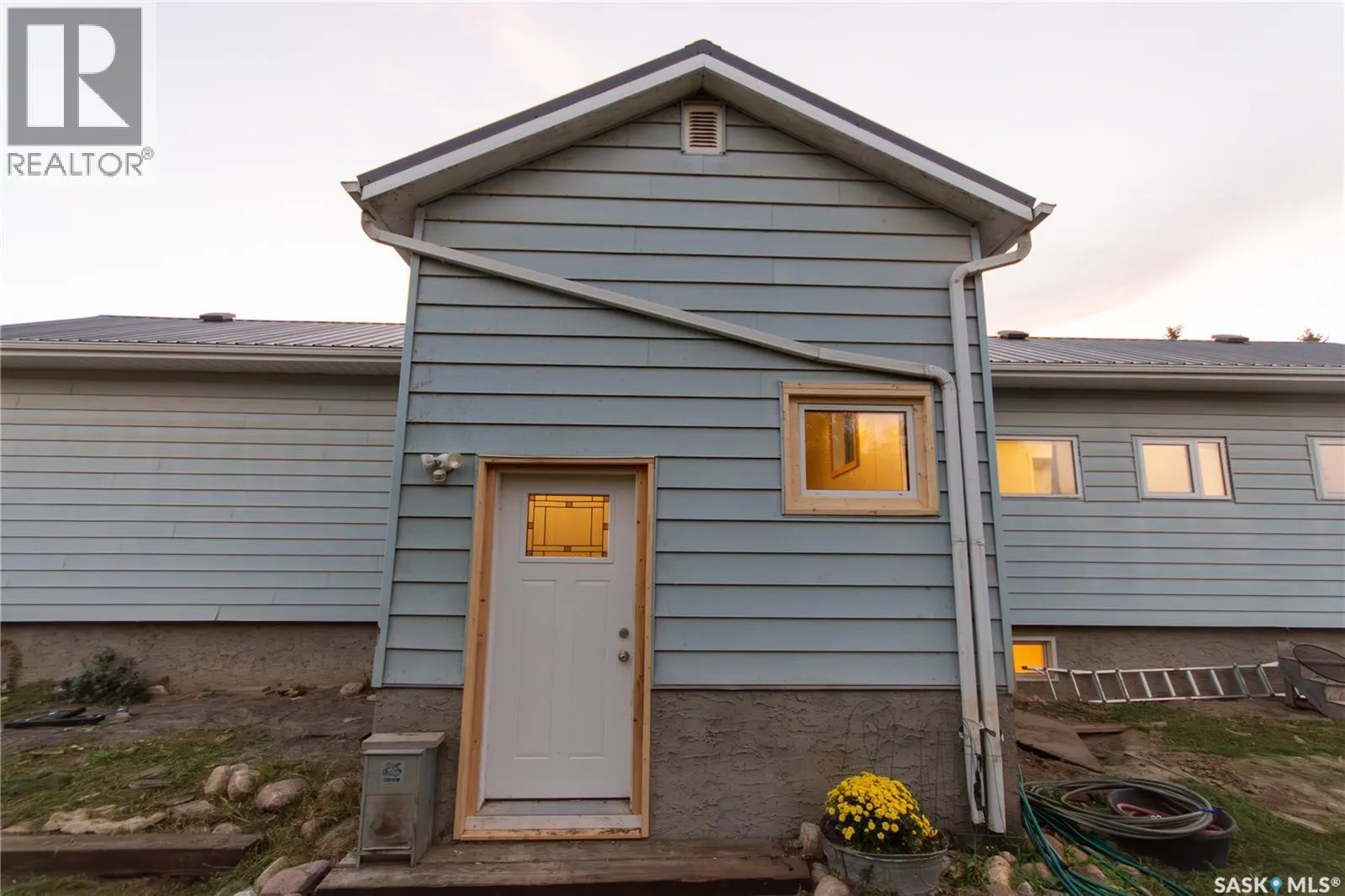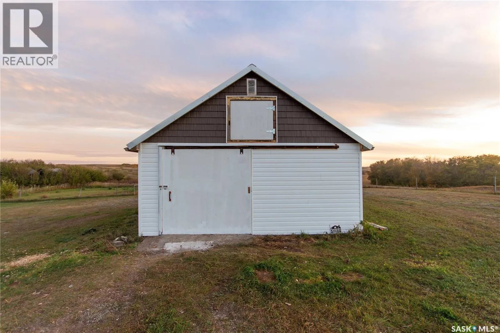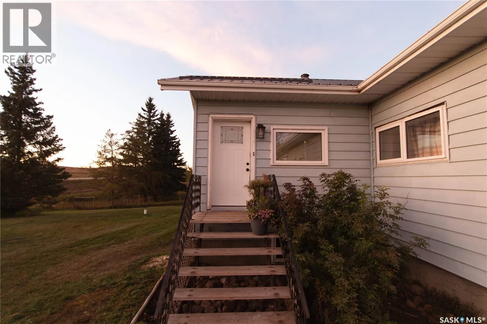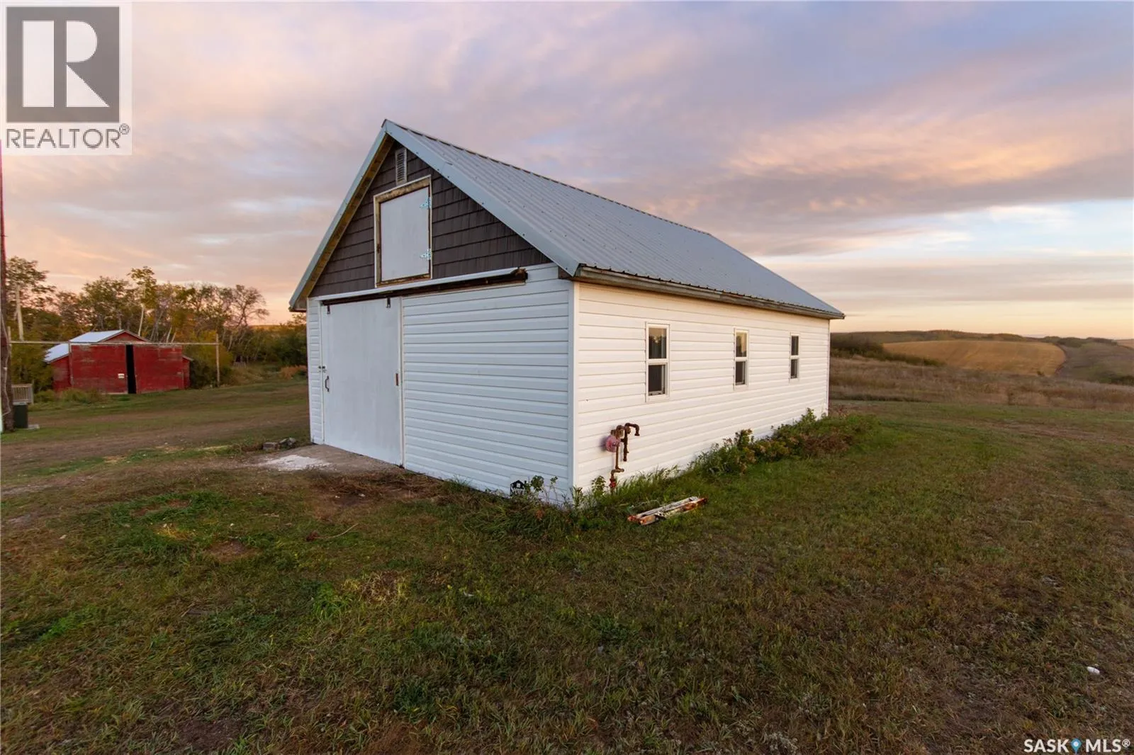 Straight East on Highway 40, turn left (north) before the S bend. Drive down grid 6km, on right. Country living at its best, this 10.28 acre acreage is just what you're looking for! Take a drive through the beautiful rolling hills of Saskatchewan to this updated and move in ready 1380sqft house! Step up into an entrance where memories will be made, featuring a large mud room to store all your jackets and boots. To the right, an open kitchen with timeless oak cabinets and a spacious living room with large bay windows to enjoy every sunset and sunrise. Upstairs features two bedrooms with fresh flooring and an updated 4 piece bathroom. Upstairs laundry and storage area is just past the kitchen. Continuing downstairs, you'll find a landing and separate entrance, providing easy access to a fire pit/gathering area. Heading downstairs, you'll find a beautiful 3 piece bathroom and large rec room with a wood burning stove. On either side are two spacious bedrooms and a mechanical/workshop room in the middle. The land features a 20'x28' garage/shop (has its own electrical panel. Natural gas line is ran to this garage, natural gas heater is included but not connected), a 26'x48' quonset with a 100amp panel, a chicken coop, garden area, and many other storage sheds. For the hobby farmers, the perimeter is fenced and the land is planted for grazing. Many updates include:House metal roofing (approx 5yrs), all new windows upstairs and new basement bathroom in the house, garage roof (approx 5 years) & quonset roof and complete basement renovation, and a 200 amp panel. (id:27476)