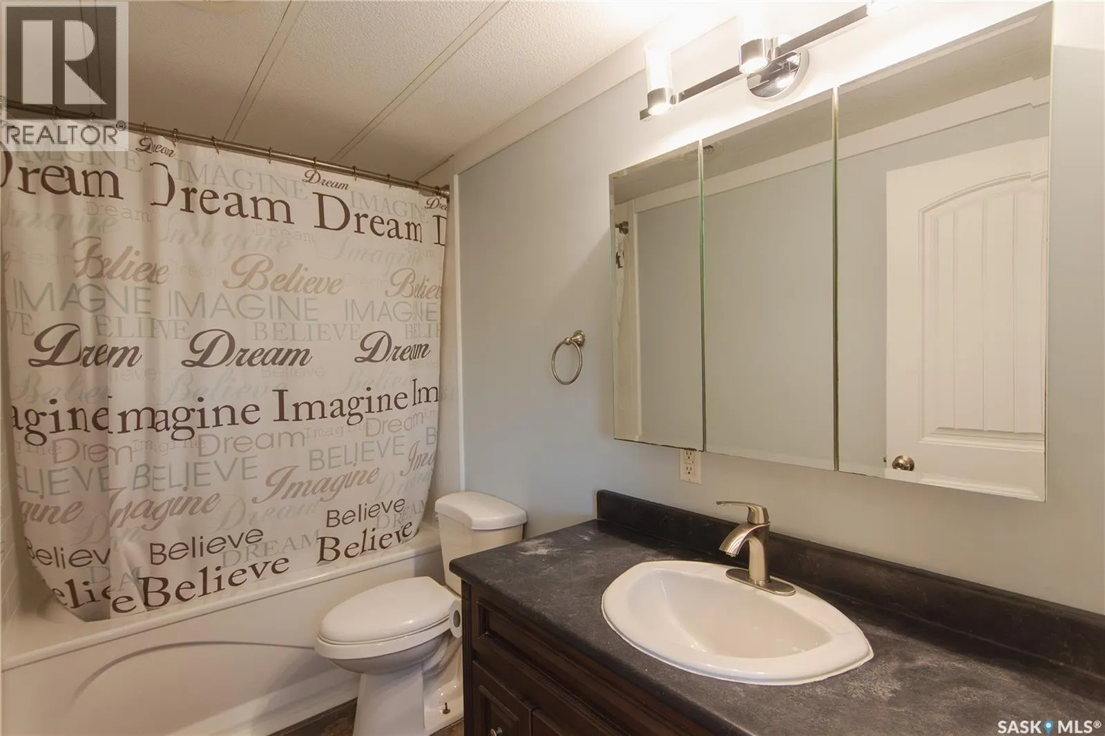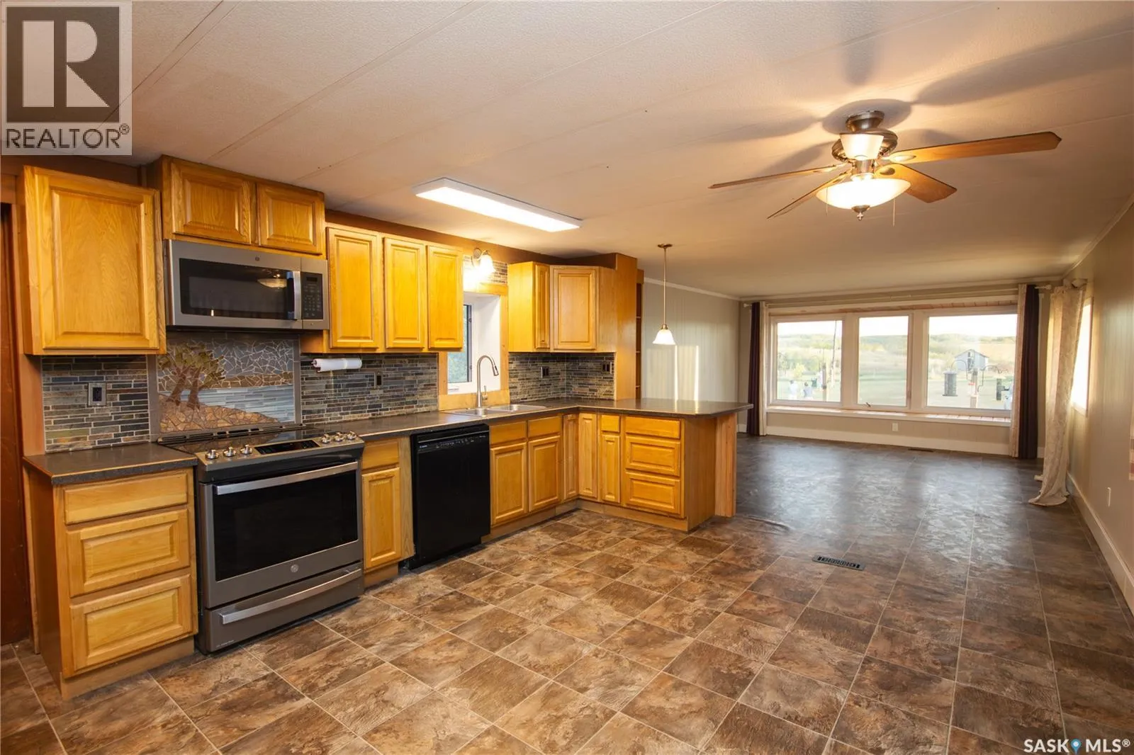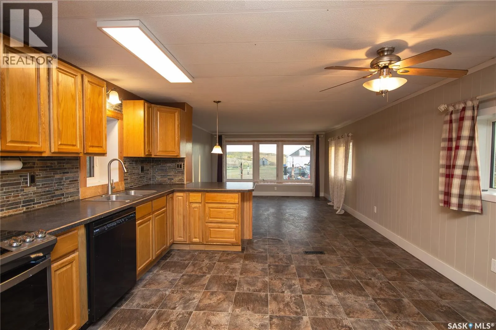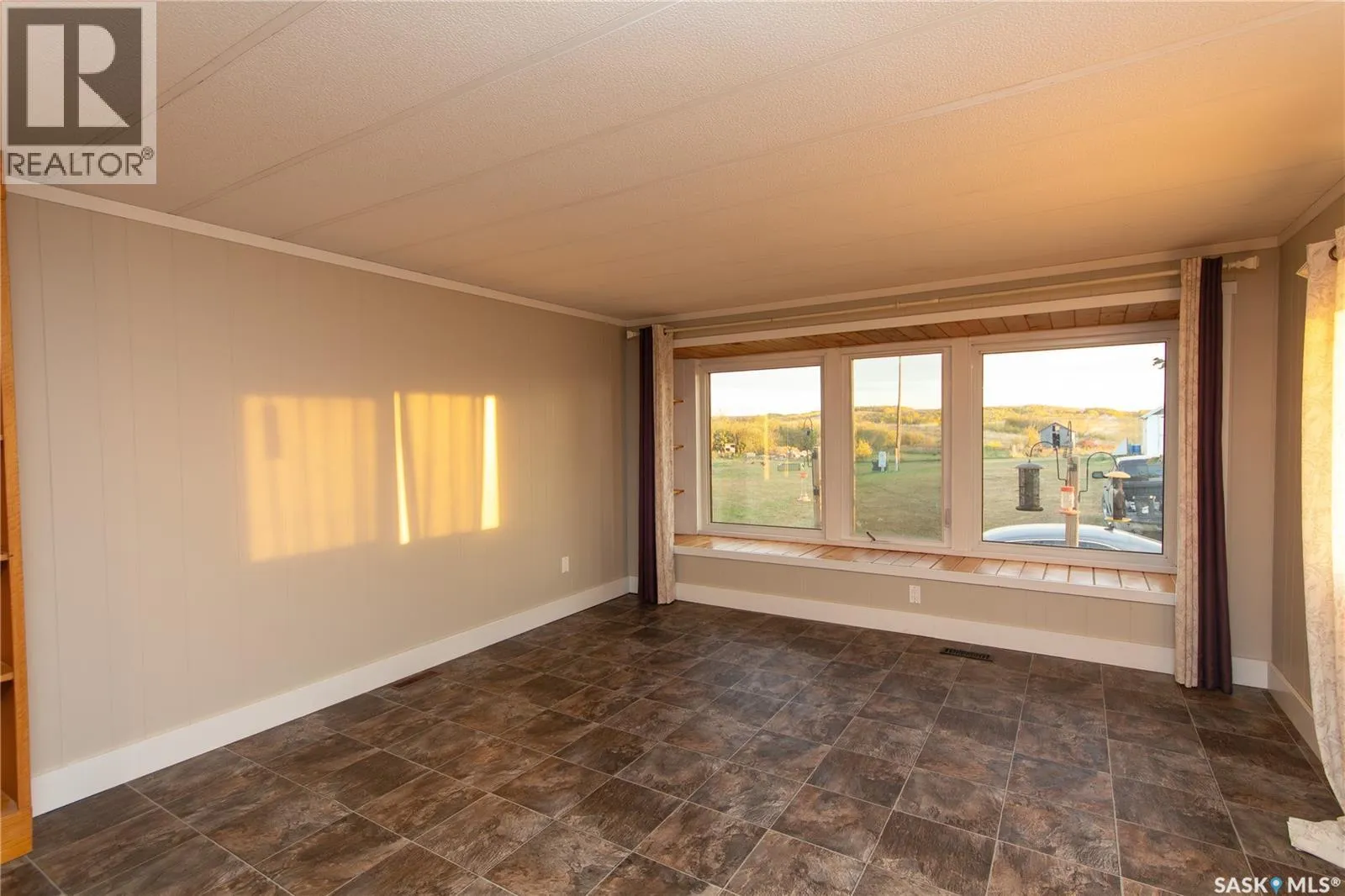 Straight East on Highway 40, turn left (north) before the S bend. Drive down grid 6km, on right. Country living at its best, this 10.28 acre acreage is just what you're looking for! Take a drive through the beautiful rolling hills of Saskatchewan to this updated and move in ready 1380sqft house! Step up into an entrance where memories will be made, featuring a large mud room to store all your jackets and boots. To the right, an open kitchen with timeless oak cabinets and a spacious living room with large bay windows to enjoy every sunset and sunrise. Upstairs features two bedrooms with fresh flooring and an updated 4 piece bathroom. Upstairs laundry and storage area is just past the kitchen. Continuing downstairs, you'll find a landing and separate entrance, providing easy access to a fire pit/gathering area. Heading downstairs, you'll find a beautiful 3 piece bathroom and large rec room with a wood burning stove. On either side are two spacious bedrooms and a mechanical/workshop room in the middle. The land features a 20'x28' garage/shop (has its own electrical panel. Natural gas line is ran to this garage, natural gas heater is included but not connected), a 26'x48' quonset with a 100amp panel, a chicken coop, garden area, and many other storage sheds. For the hobby farmers, the perimeter is fenced and the land is planted for grazing. Many updates include:House metal roofing (approx 5yrs), all new windows upstairs and new basement bathroom in the house, garage roof (approx 5 years) & quonset roof and complete basement renovation, and a 200 amp panel. (id:27476)