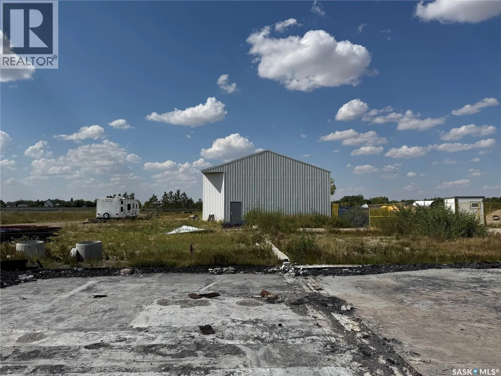 High-exposure investment opportunity just outside Drinkwater, SK. Set on 8.78 acres with over 800 sq. ft. of highway frontage, this property offers excellent visibility and accessibility for a wide range of uses. The site includes two standalone buildings totaling 10,775 sq. ft. along with a massive 50,000+ sq. ft. concrete pad, providing ample space for storage, parking, or expansion. Fully serviced with natural gas and two separate 3-phase power supplies, the property is ready to accommodate industrial operations, commercial tenants, or future development projects. With its strong infrastructure, flexible land base, and strategic location along the highway, this is a rare opportunity to secure a property that offers both immediate functionality and long-term growth potential. (id:27476)