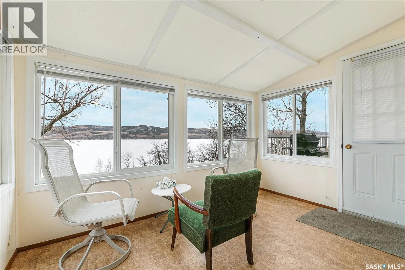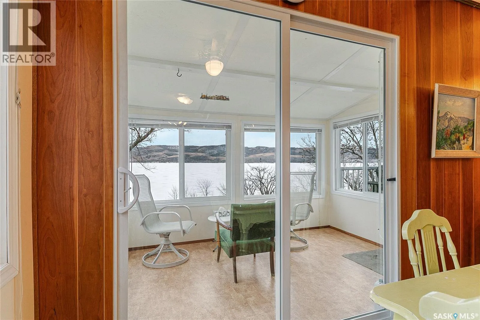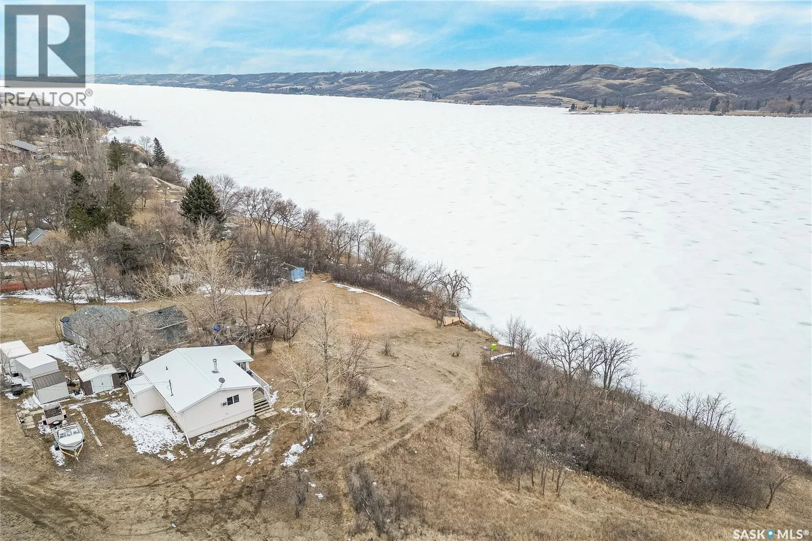 Waterfront property at Buffalo Pound's Valley View resort! Welcome to this charming four-season waterfront cabin at Buffalo Pound Lake in the peaceful community of Valley View Resort. Located just 45 minutes from Regina, with less than 14 KM of gravel and the remainder on comfortable asphalt, this property offers the perfect balance of accessibility and quiet lakeside living. Valley View is well known for its privacy, tranquillity, and convenient boat launch. This well-maintained 704 sq. ft. cabin features 3 bedrooms and 1 bathroom, offering a functional and inviting layout. The bathroom features a functional design with separate rooms for the shower and toilet. The kitchen features warm wooden cabinetry, tile backsplash, and impeccably clean appliances, while the living room, primary bedroom, and sunroom offer stunning views of the lake. Natural light and scenic surroundings make this home feel like a true retreat in every season. Step outside to a large front deck, perfect for relaxing and enjoying the waterfront setting. The generous 65' x 160' lot also includes two large sheds, providing plenty of storage for lake life essentials. Built for year-round comfort, the cabin features a durable metal roof, vinyl siding, and newer PVC windows throughout. A wood stove adds both charm and efficiency, keeping the space cozy during the winter months while helping reduce heating costs. An added bonus is that the property comes with most furnishings, minus the kitchen table & chairs, and some personal items. Just move in and start enjoying! 32' plastic dock with 2'x4' wood legs, track, and dolly are at the property and are included in the sale. This is a fantastic opportunity to own a quiet waterfront escape with everything you need to enjoy lake living year-round. Call today! (id:27476)