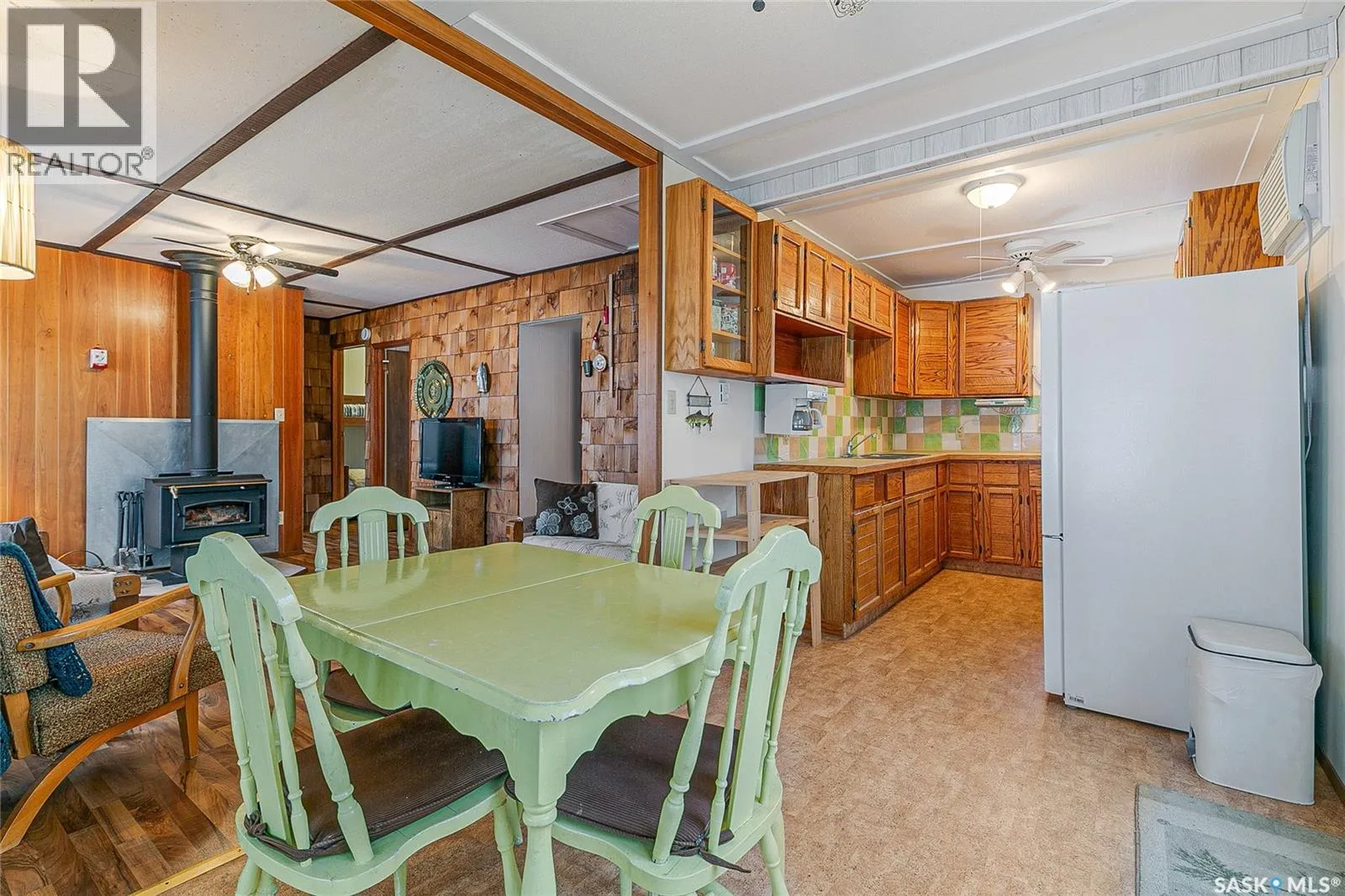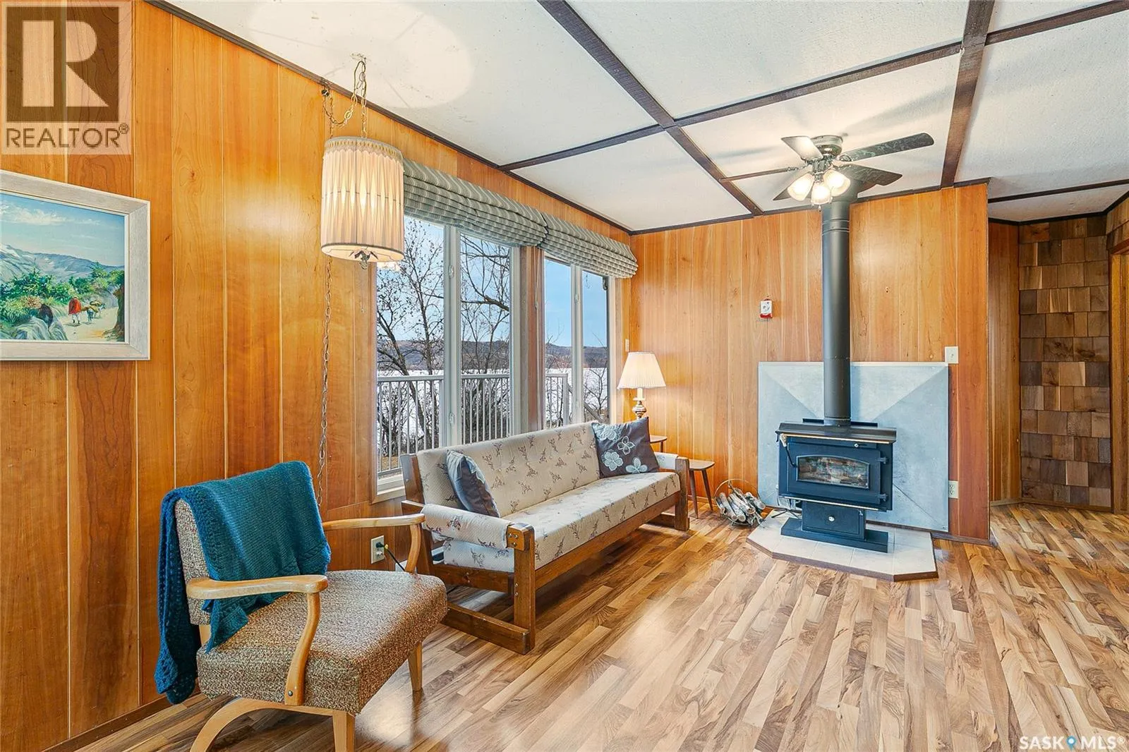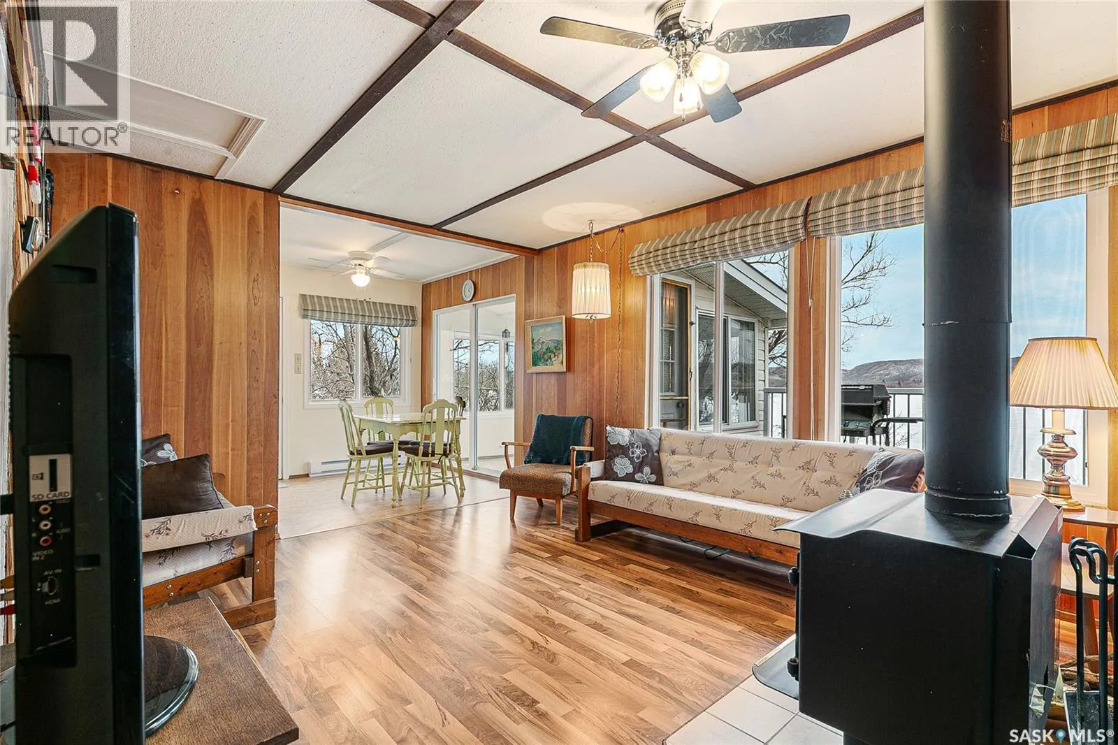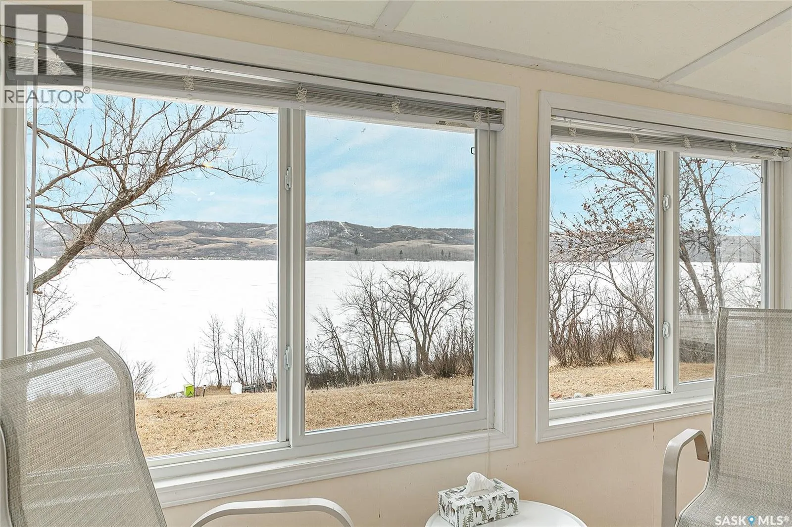 Waterfront property at Buffalo Pound's Valley View resort! Welcome to this charming four-season waterfront cabin at Buffalo Pound Lake in the peaceful community of Valley View Resort. Located just 45 minutes from Regina, with less than 14 KM of gravel and the remainder on comfortable asphalt, this property offers the perfect balance of accessibility and quiet lakeside living. Valley View is well known for its privacy, tranquillity, and convenient boat launch. This well-maintained 704 sq. ft. cabin features 3 bedrooms and 1 bathroom, offering a functional and inviting layout. The bathroom features a functional design with separate rooms for the shower and toilet. The kitchen features warm wooden cabinetry, tile backsplash, and impeccably clean appliances, while the living room, primary bedroom, and sunroom offer stunning views of the lake. Natural light and scenic surroundings make this home feel like a true retreat in every season. Step outside to a large front deck, perfect for relaxing and enjoying the waterfront setting. The generous 65' x 160' lot also includes two large sheds, providing plenty of storage for lake life essentials. Built for year-round comfort, the cabin features a durable metal roof, vinyl siding, and newer PVC windows throughout. A wood stove adds both charm and efficiency, keeping the space cozy during the winter months while helping reduce heating costs. An added bonus is that the property comes with most furnishings, minus the kitchen table & chairs, and some personal items. Just move in and start enjoying! 32' plastic dock with 2'x4' wood legs, track, and dolly are at the property and are included in the sale. This is a fantastic opportunity to own a quiet waterfront escape with everything you need to enjoy lake living year-round. Call today! (id:27476)