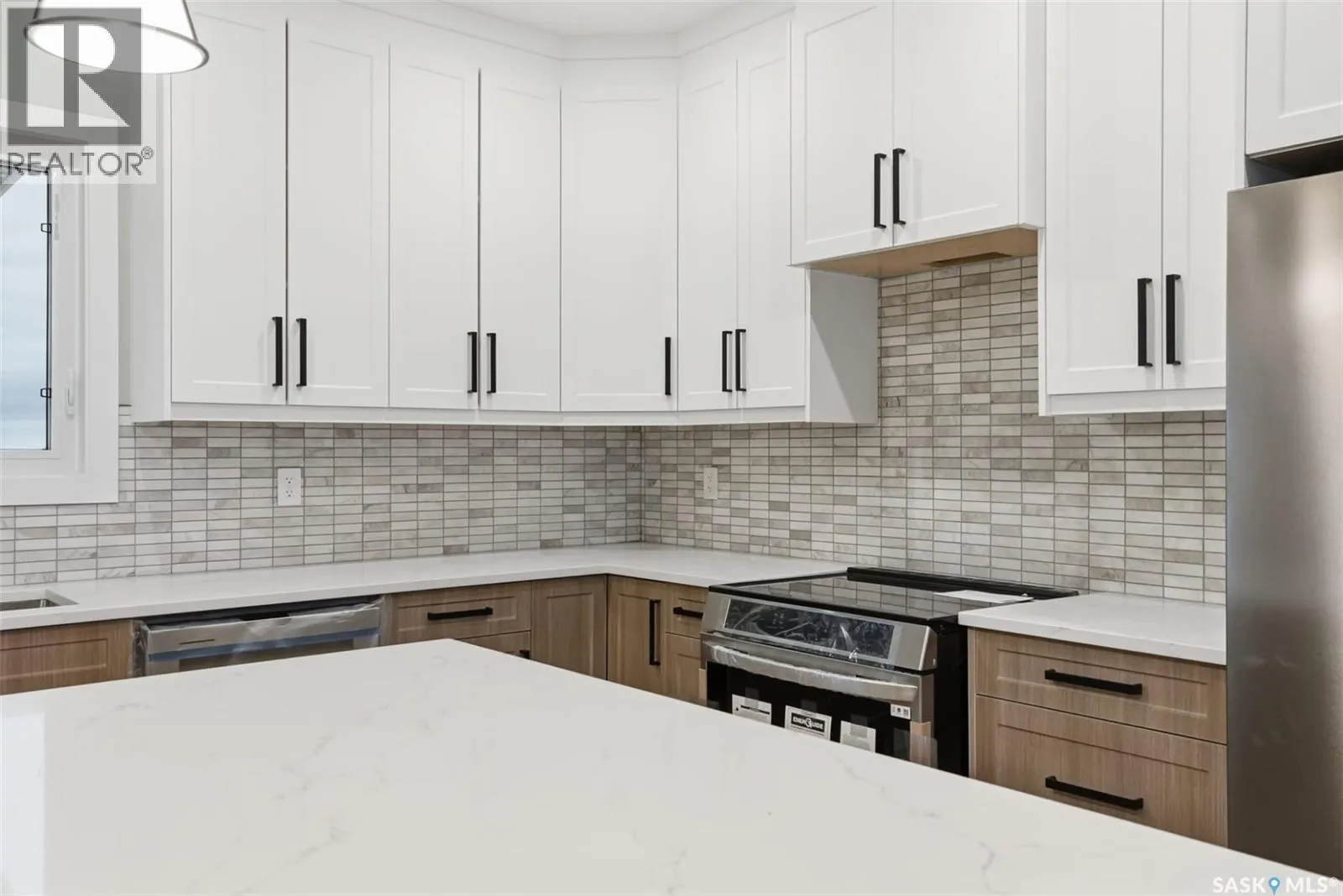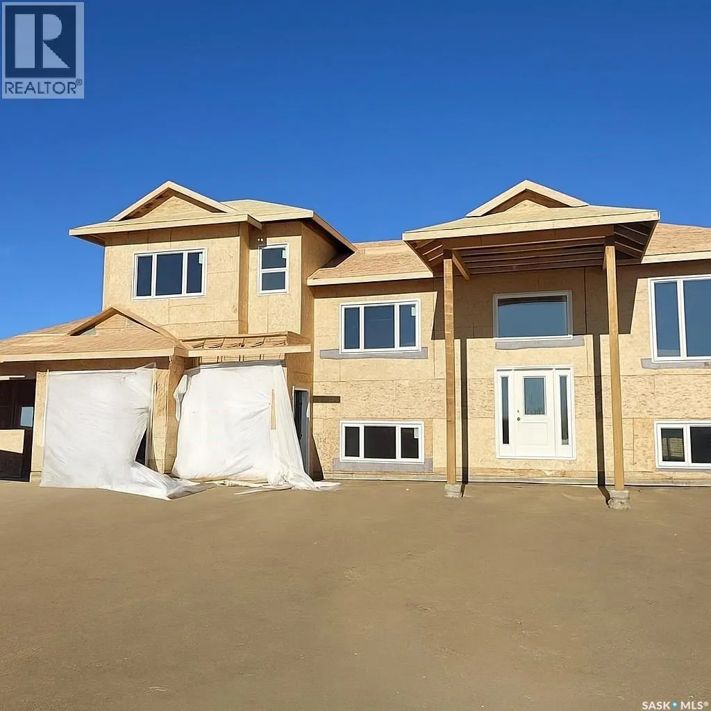 Acreage located in Cardinal Estates Walk-OUT Modified Bi-level home located in Cardinal Estates which is about 14 minutes from Saskatoon city limits. This home offers about 1700 sq ft living space. The main floor offers open concept floor plan, dining area, living area with fireplace, modern light fixtures, White Vinyl windows with triple pane. The modular kitchen offers kitchen backsplash & quartz countertops. On the main floor you will find 2 good sized bedrooms & a 4pc bathroom. Also located on the main floor is the rough in for laundry. Head your way to level 2nd where you will find the master bedroom that offers a 5pc en-suite. The basement is undeveloped & is waiting for you to add your imagination. The home comes with a Covered deck. The property has a triple car attached garage. Looking to book a private tour? Call your favourite REALTOR® TODAY for more info & to schedule a viewing. (id:27476)