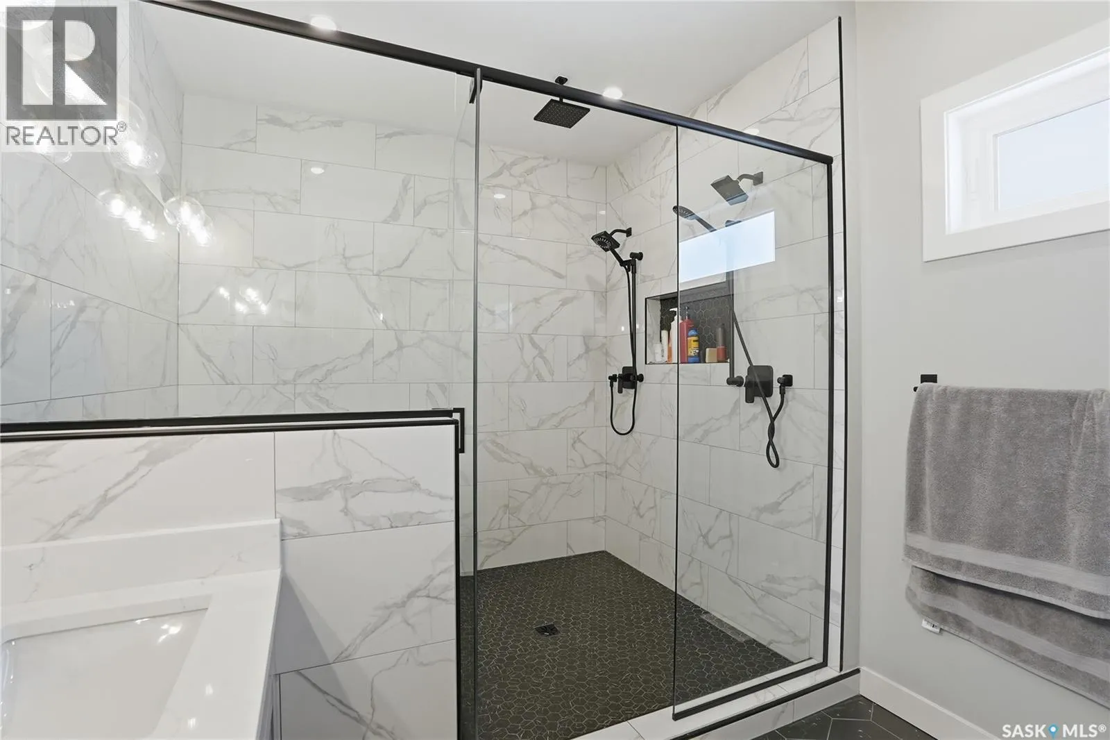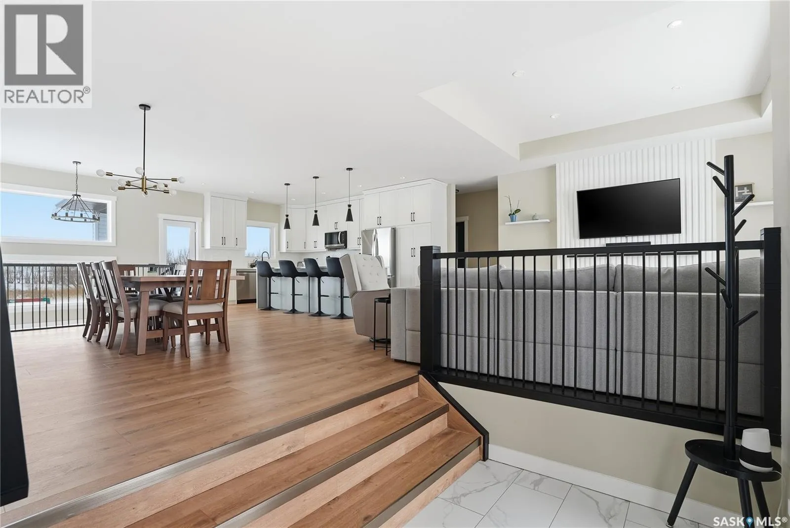 Welcome to this brand new home located in the WATERPARK ESTATES, located few minutes away from Saskatoon. This home offers about 1790 sq ft living space. The main floor offers open concept floor plan, dining area, living area with electric fireplace, modern light fixtures, White Vinyl windows with triple glass, low E and Argon gas. The modular kitchen offers kitchen backsplash, quartz countertops, kitchen pantry & a huge island. On the main floor you will find 2 good sized bedrooms & a 4pc bathroom. Head your way to the master bedroom that offers a 5pc en-suite bath. The basement is undeveloped & is waiting for you to add your imagination. The home comes with a 15â X 12â Covered deck. The property has a triple car attached garage with one 18âX8â and one 9âX8â Metal flush white garage doors. Garage is 24' (26.8') x 38'. Looking to book a private tour? Call your favourite REALTOR® TODAY for more info & to schedule a viewing. (id:27476)