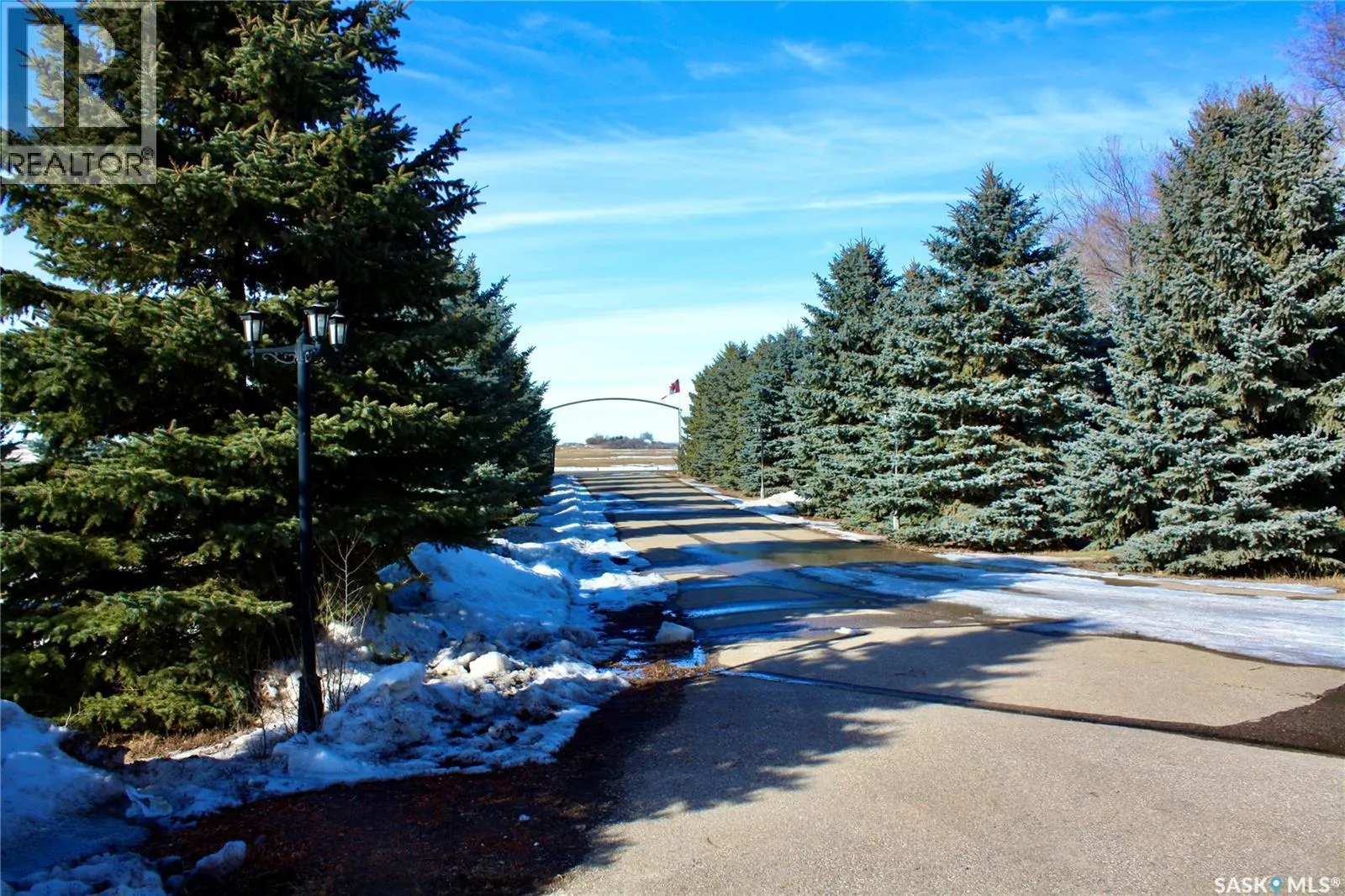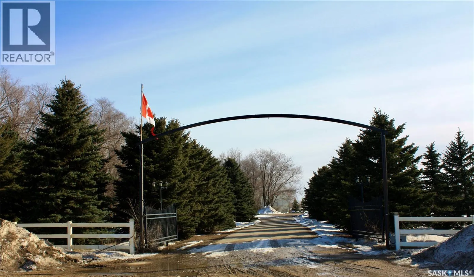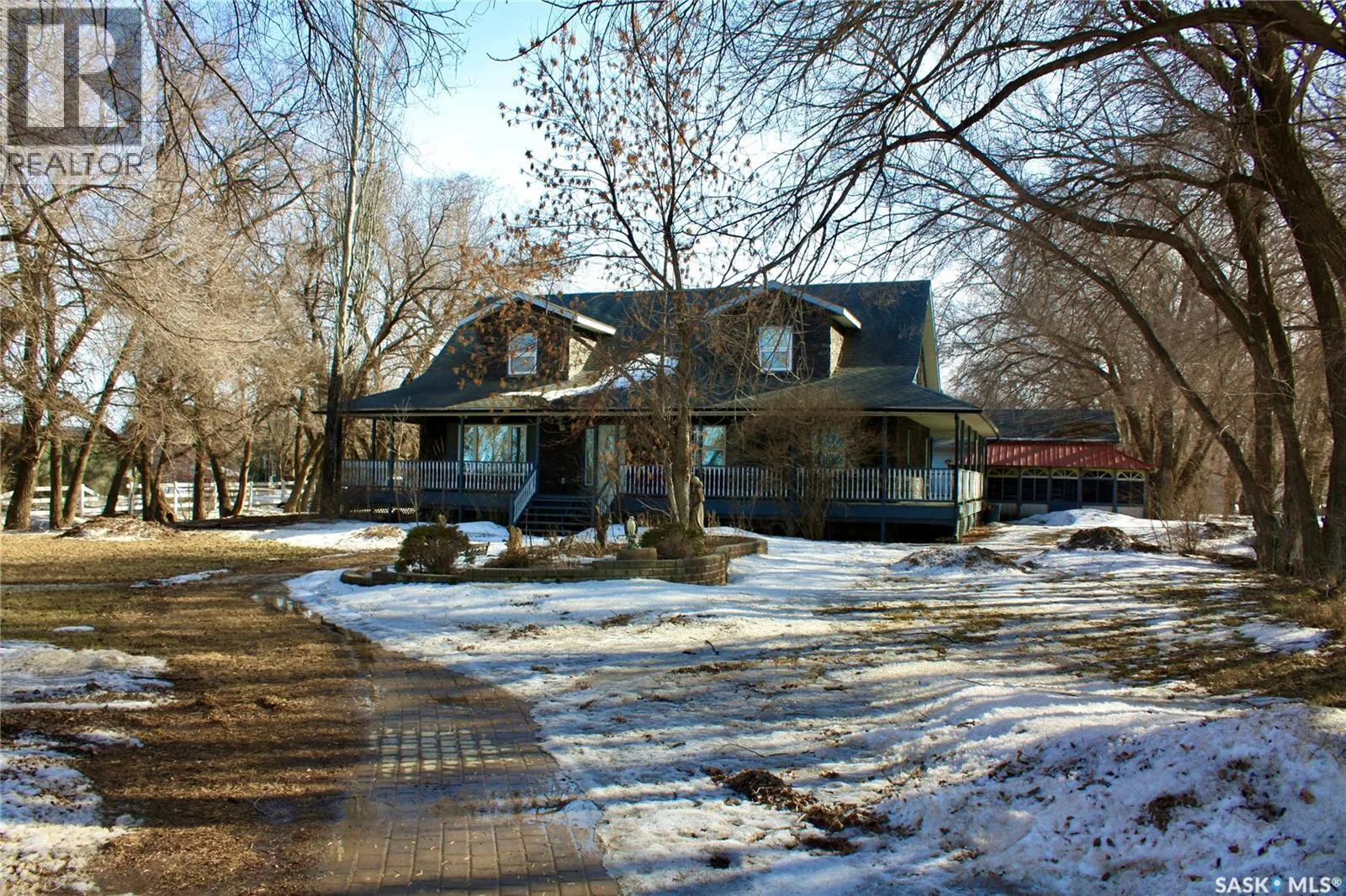 Address works on google maps, not apple maps. Donât miss this exceptional acreage offering the perfect balance of privacy and convenience, located just a short drive from Saskatoon with minimal gravel and paved driveway right to your door. This impressive one-and-a-half storey home offers over 2,700 sq. ft. of thoughtfully designed living space, complemented by a full wraparound covered deckâideal for relaxing while enjoying the serene, park-like setting or pop in the extra large enclosed hot tub and soak your cares away. Inside, the home features a bright, south-facing kitchen overlooking the yard and deck, complete with granite countertops, stainless steel appliances, and a functional two-tier island. The second floor hosts a truly expansive primary retreat with a lounging area, walk-in closets, custom built in storage, and a luxurious ensuite with jet tub, along with a second bedroom. The main floor offers two more bedrooms, including one with its own ensuite and large walk-in closet. The fully developed basement includes a spacious family room with gas fireplace, a large den, and a dedicated craft room with built-in cabinetry and a roughed-in sink. The utility room has the drip system water storage and lots of extra storage space and a separate basement entrance. The property is exceptionally well-equipped with a 30â x 32â heated detached garage, a massive 40â x 60â shop/garage for additional vehicles or workspace, plus two large sheds perfect for recreational storage. Outdoor features are equally impressive, including a well-built dog run and a 20â x 30â greenhouse with propane heat and concrete floor. The beautifully landscaped yard showcases hundreds of mature evergreen trees, a gazebo, tranquil waterfall feature, fenced garden area, and a full sprinkler system supplied by two wells. The south side of the house is all paved, great for parking, hockey basketball, biking and skateboarding. Don't hesitate to view this property if you enjoy hosting your family get togethers. It is a must see. (id:27476)