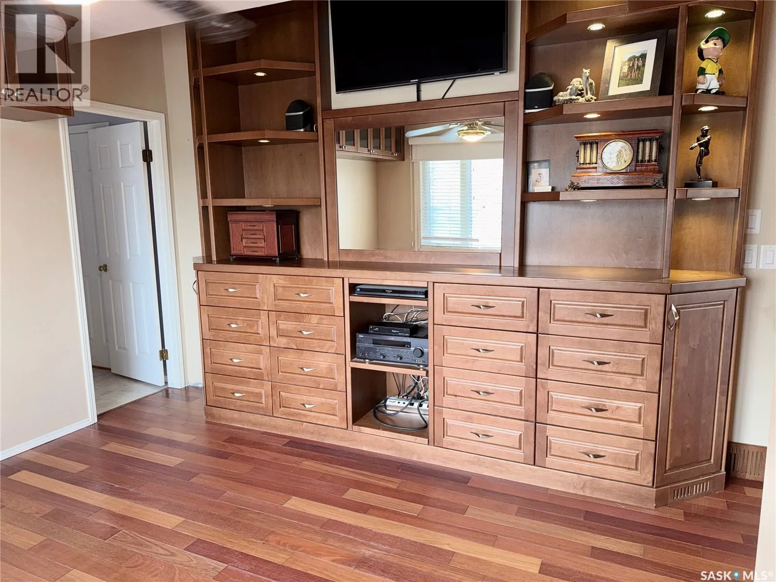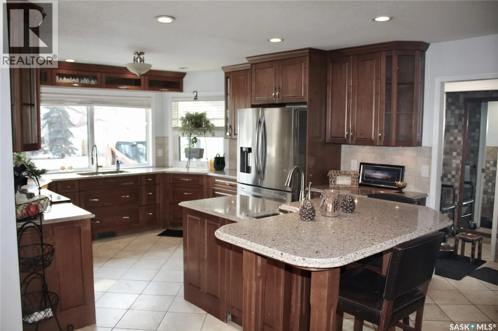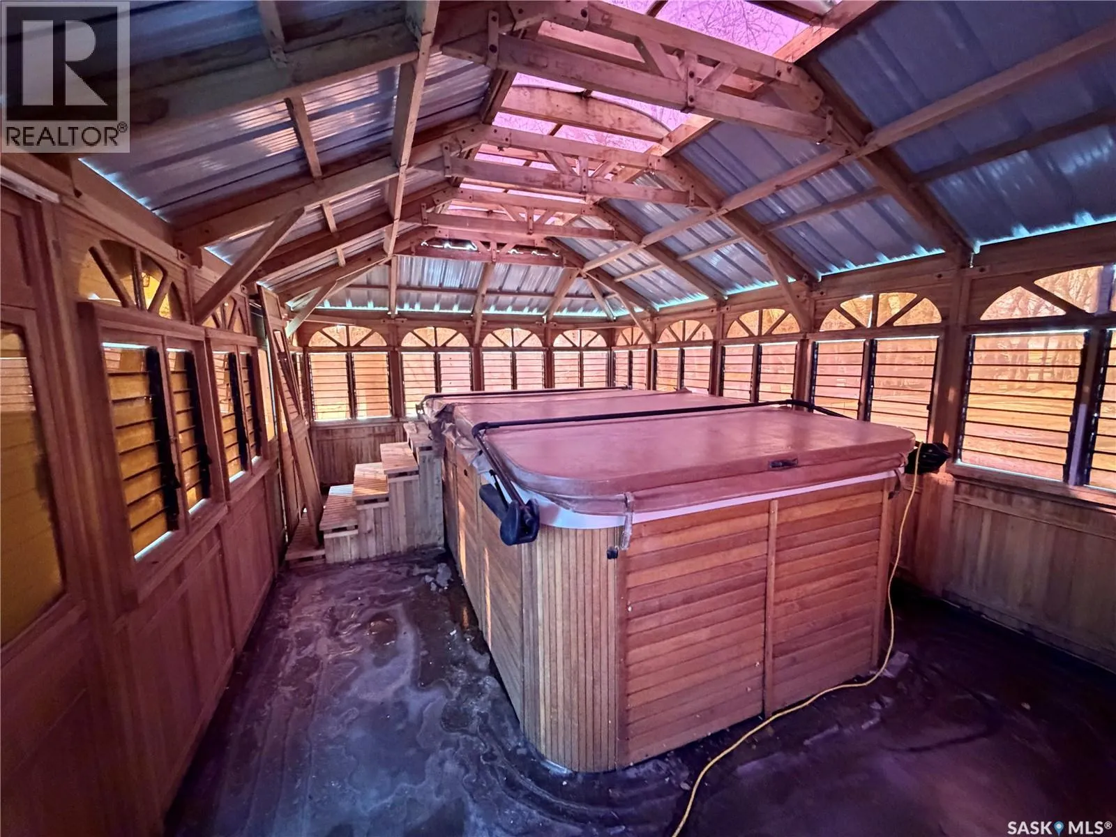 Address works on google maps, not apple maps. Donât miss this exceptional acreage offering the perfect balance of privacy and convenience, located just a short drive from Saskatoon with minimal gravel and paved driveway right to your door. This impressive one-and-a-half storey home offers over 2,700 sq. ft. of thoughtfully designed living space, complemented by a full wraparound covered deckâideal for relaxing while enjoying the serene, park-like setting or pop in the extra large enclosed hot tub and soak your cares away. Inside, the home features a bright, south-facing kitchen overlooking the yard and deck, complete with granite countertops, stainless steel appliances, and a functional two-tier island. The second floor hosts a truly expansive primary retreat with a lounging area, walk-in closets, custom built in storage, and a luxurious ensuite with jet tub, along with a second bedroom. The main floor offers two more bedrooms, including one with its own ensuite and large walk-in closet. The fully developed basement includes a spacious family room with gas fireplace, a large den, and a dedicated craft room with built-in cabinetry and a roughed-in sink. The utility room has the drip system water storage and lots of extra storage space and a separate basement entrance. The property is exceptionally well-equipped with a 30â x 32â heated detached garage, a massive 40â x 60â shop/garage for additional vehicles or workspace, plus two large sheds perfect for recreational storage. Outdoor features are equally impressive, including a well-built dog run and a 20â x 30â greenhouse with propane heat and concrete floor. The beautifully landscaped yard showcases hundreds of mature evergreen trees, a gazebo, tranquil waterfall feature, fenced garden area, and a full sprinkler system supplied by two wells. The south side of the house is all paved, great for parking, hockey basketball, biking and skateboarding. Don't hesitate to view this property if you enjoy hosting your family get togethers. It is a must see. (id:27476)