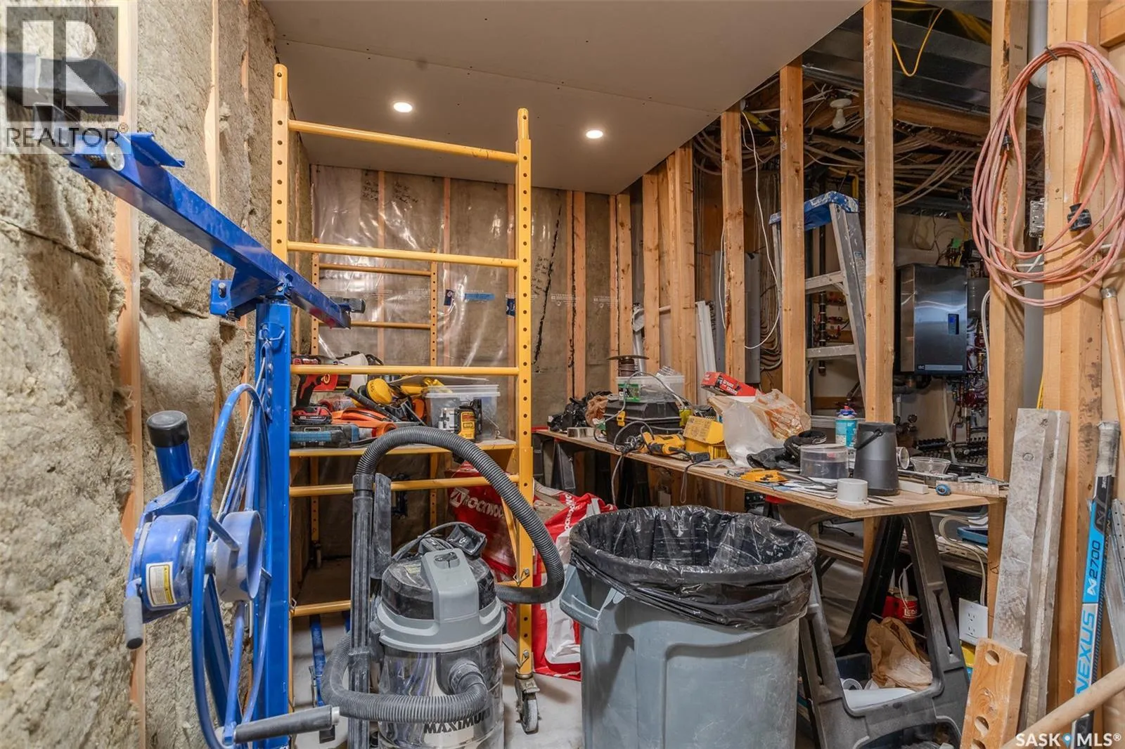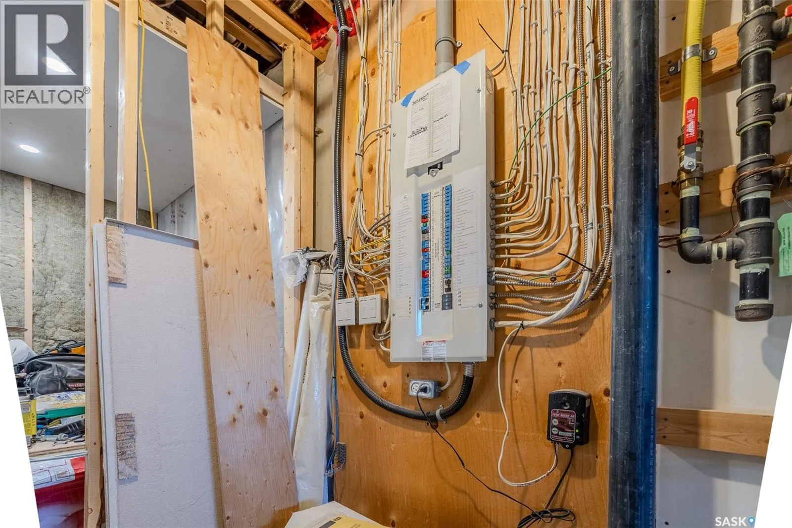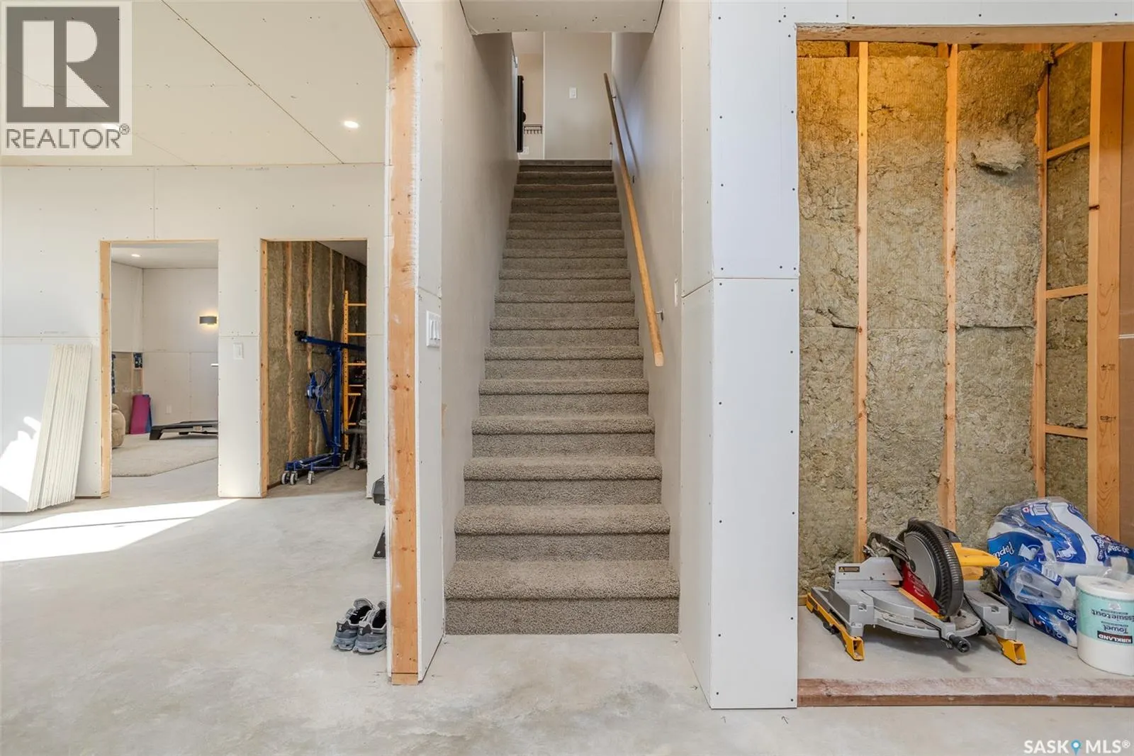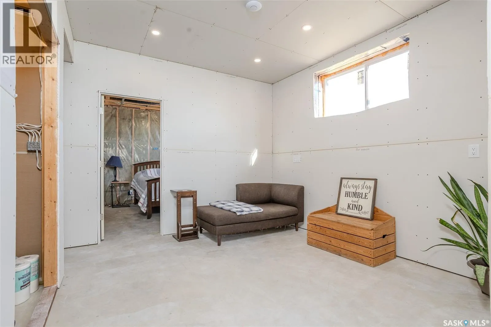 Welcome to this raised bungalow on 5 acres just 10 minutes south of Saskatoon, offering space, privacy, and an easy drive to the city. The main floor features vaulted ceilings and an open concept layout with hardwood flooring in the living room, tile through the kitchen and dining, and a gas fireplace. The kitchen includes granite countertops, under cabinet lighting, soft close cabinetry, a large island with double undermount sink and central vac kick plate, built in dishwasher, microwave hood fan, corner pantry, and a coffee area with a window overlooking the yard. Patio doors off the dining area lead to a partially covered deck with two natural gas BBQ hook ups. Completing the main level are two secondary bedrooms (bedroom closets have lights), a 4 piece bathroom, and a primary bedroom with windows on two walls, a 5 piece ensuite, and walk in closet. In floor heat runs through the living room, kitchen, dining, and bathrooms. Laundry is conveniently located off the garage entry. The att. garage offers 12' ceilings, double overhead doors, in floor heat, epoxy flooring, built in shelving, and a separate 60 amp panel/30amp RV plug. The basement is framed and drywalled for two bedrooms and a full bathroom, with pot lighting, 9 foot ceilings, and large windows. Safe and sound insulation has been added, and the home is wired for Control4. Outside, there is a 36 x 40 steel shop with concrete floor, 16 x 12 overhead door and 100 amp panel. The yard includes over 100 trees on a drip line system, adding future privacy and room to grow. The property is serviced with fiber optic internet, with access in both the garage and shop, and city water with a new pressure system installed in 2024. School bus service is available to South Corman Park for K-8 and Clavet for 9-12. This property has space for kids to run, quiet mornings, and room to build the lifestyle you want. Two large animals allowed, ideal for horse enthusiasts. Call your Realtor today to book your private showing! (id:27476)