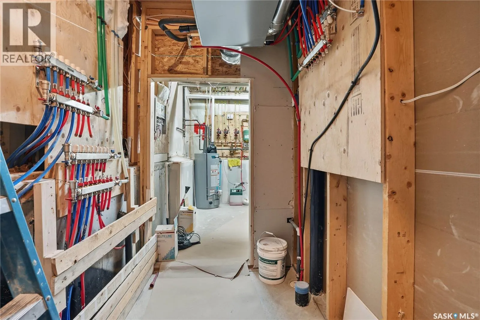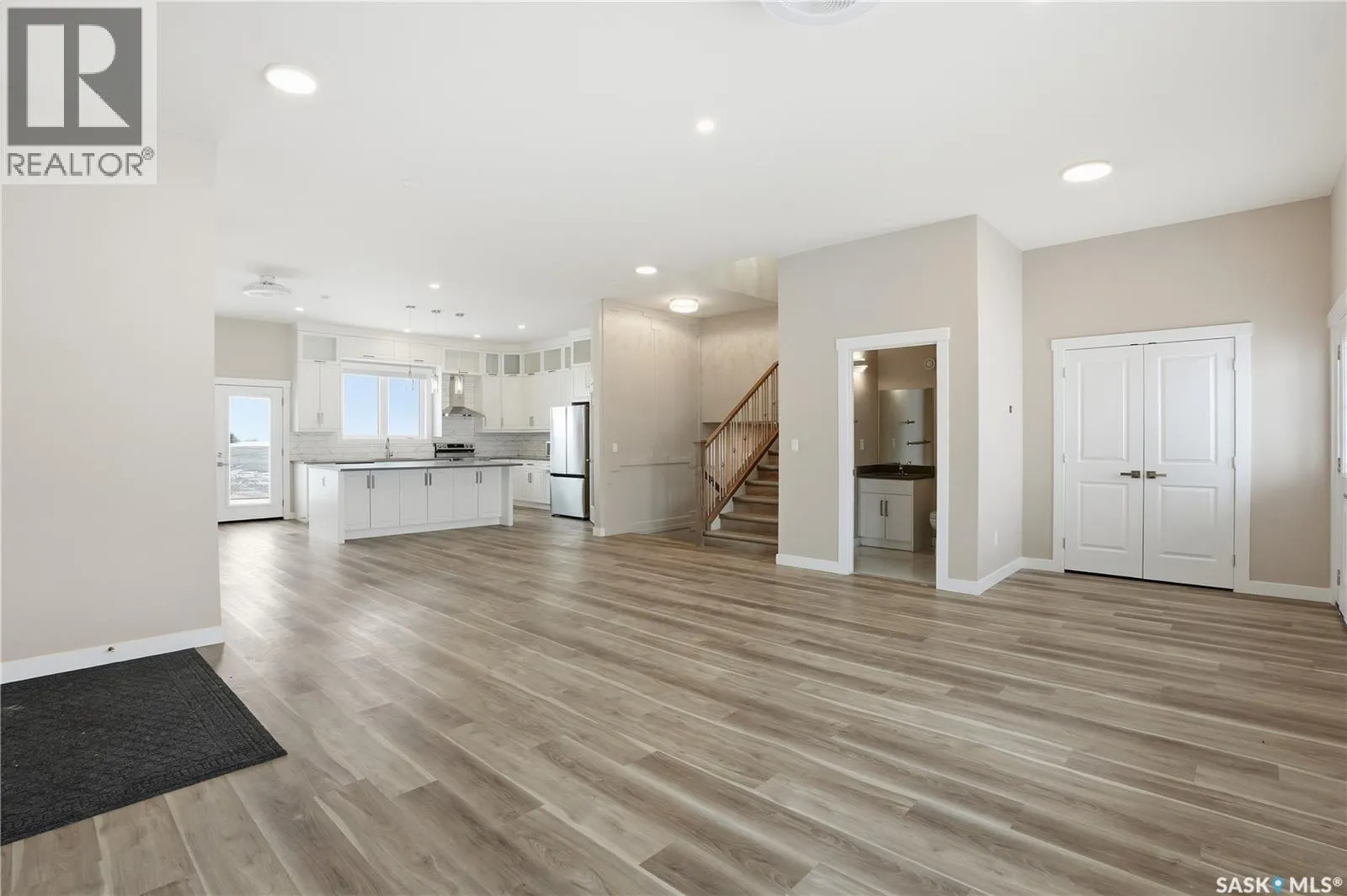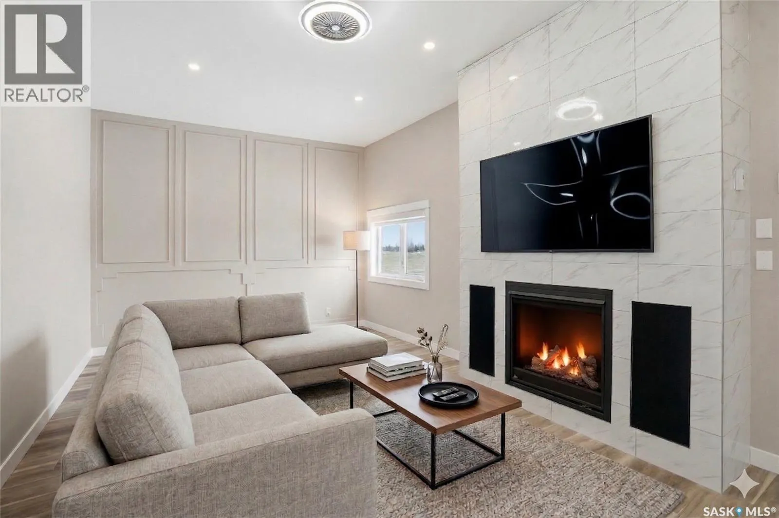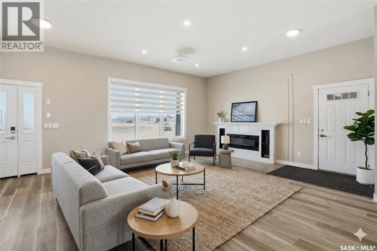 Welcome to Waterpark Estates â An Extraordinary Family Home Just Minutes from Saskatoon From the moment you arrive, this exceptional property sets itself apart. Nestled in the sought-after community of Waterpark Estates, this one-of-a-kind home delivers space, comfort, and versatility across four fully finished levels. The main floor invites you in with a generous living room anchored by an electric fireplace, flowing into a well-appointed kitchen featuring quartz countertops, a stylish backsplash, stainless steel appliances, a pantry, and abundant cabinetry. A large family room with its own fireplace adds a second gathering space, perfect for everyday living or entertaining. A convenient 2-piece bath completes this level. Upstairs, you'll find four bedrooms including a unique private suite with an attached den â ideal as a home office, nursery, or reading room. The primary bedroom is a true retreat, boasting a luxurious ensuite, walk-in closet, and a partially heated bonus room that doubles beautifully as a sunroom. Two additional bedrooms share a well-sized common bathroom, and upper-floor laundry rough-in adds future convenience. The fully developed basement expands your living options with two more bedrooms, a full bathroom, a recreation room, a bonus room, and â a standout feature â its own separate entrance, offering excellent suite potential. Year-round comfort is ensured with in-floor radiant heating via a boiler system and central air conditioning. The oversized triple attached garage is both insulated and heated, a true Saskatchewan necessity. Homes like this don't come along often. Contact your favourite REALTOR® today to book your private showing. (id:27476)