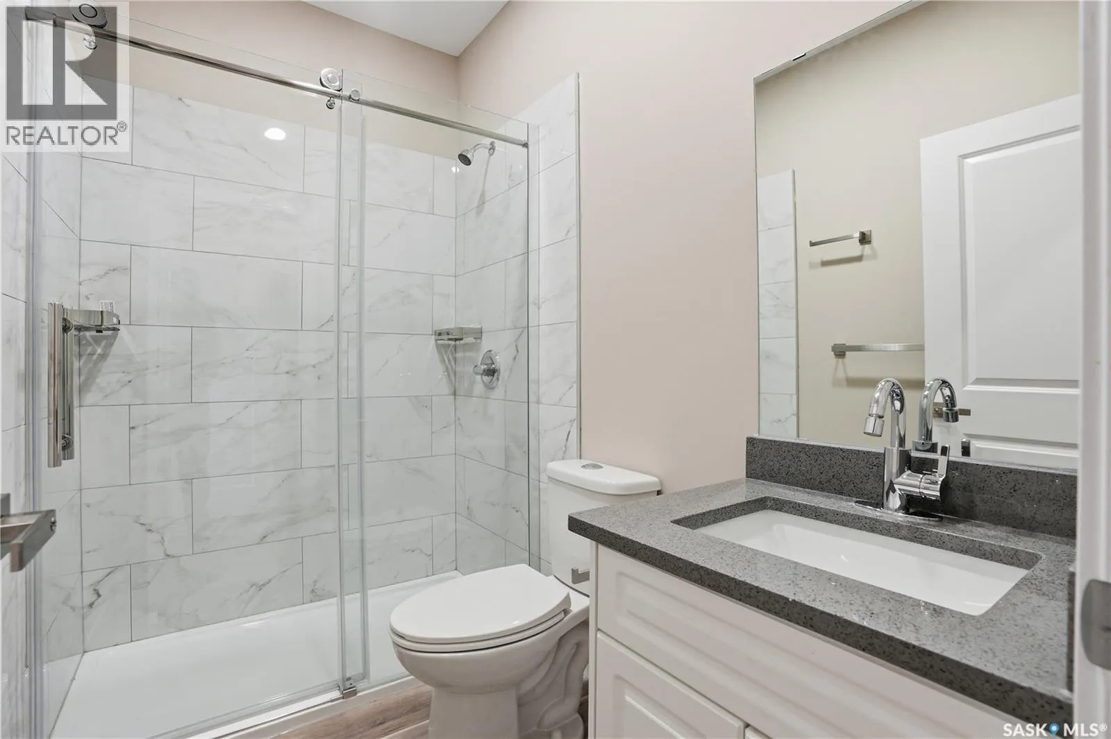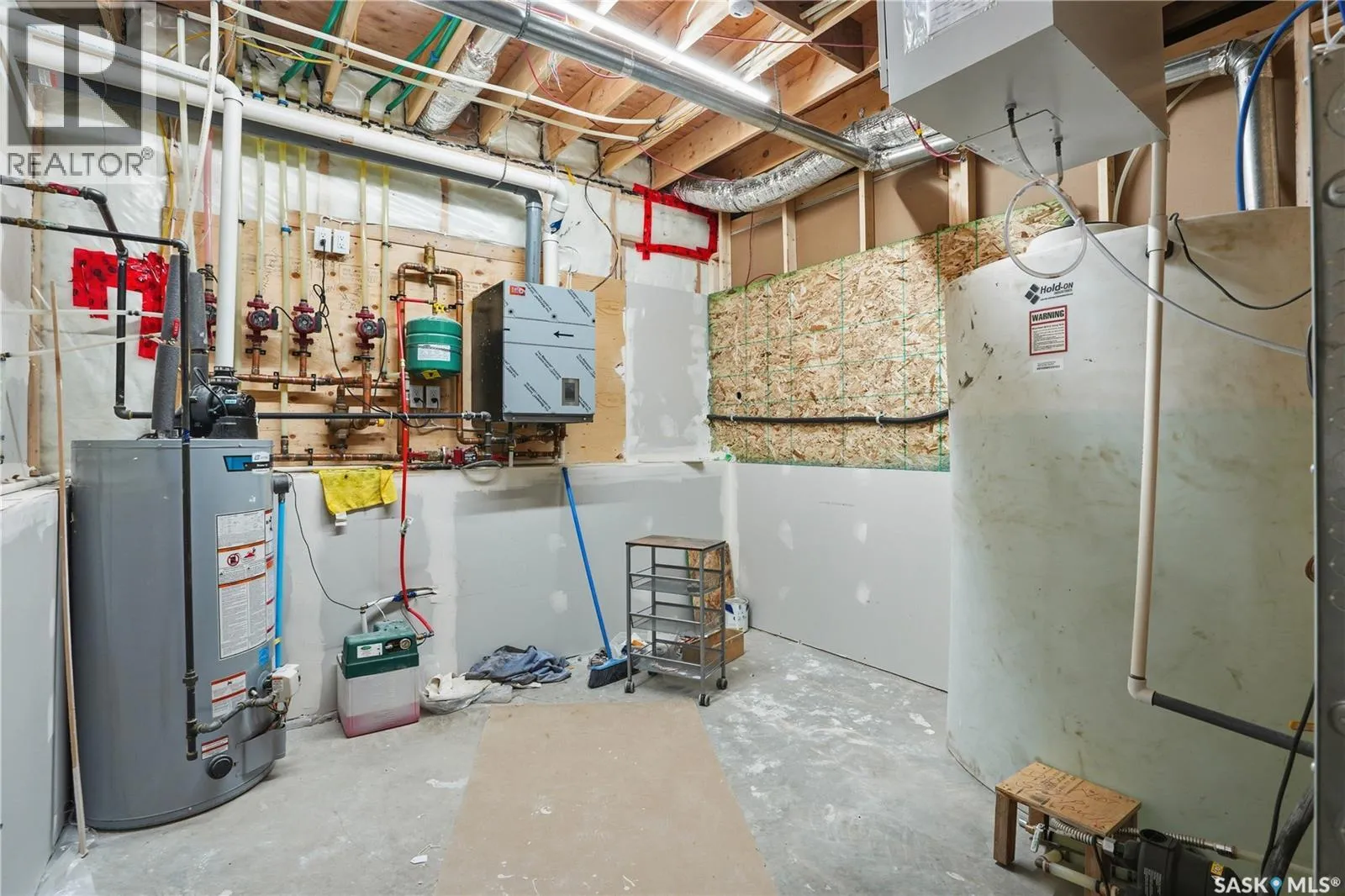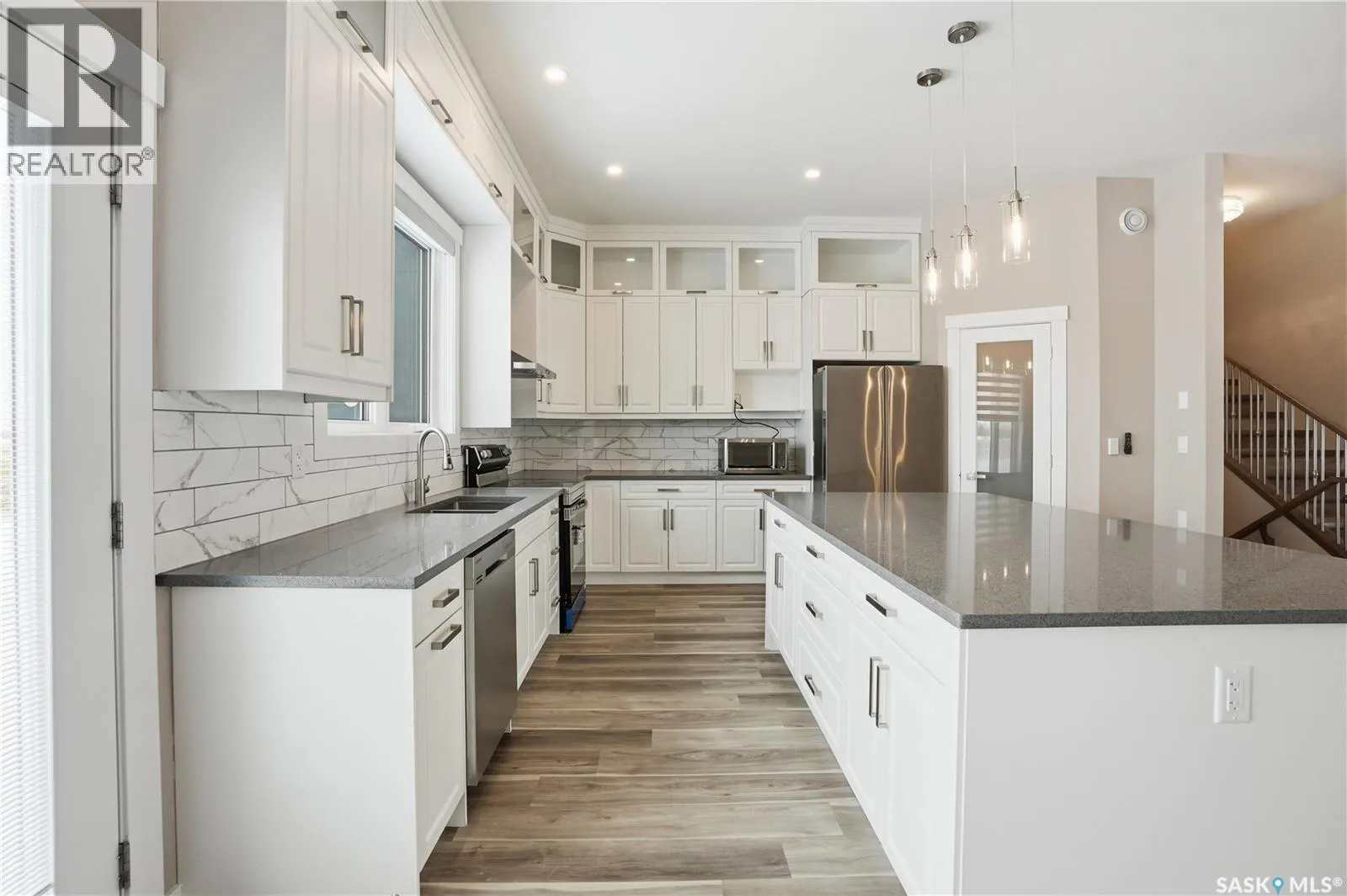 Welcome to Waterpark Estates â An Extraordinary Family Home Just Minutes from Saskatoon From the moment you arrive, this exceptional property sets itself apart. Nestled in the sought-after community of Waterpark Estates, this one-of-a-kind home delivers space, comfort, and versatility across four fully finished levels. The main floor invites you in with a generous living room anchored by an electric fireplace, flowing into a well-appointed kitchen featuring quartz countertops, a stylish backsplash, stainless steel appliances, a pantry, and abundant cabinetry. A large family room with its own fireplace adds a second gathering space, perfect for everyday living or entertaining. A convenient 2-piece bath completes this level. Upstairs, you'll find four bedrooms including a unique private suite with an attached den â ideal as a home office, nursery, or reading room. The primary bedroom is a true retreat, boasting a luxurious ensuite, walk-in closet, and a partially heated bonus room that doubles beautifully as a sunroom. Two additional bedrooms share a well-sized common bathroom, and upper-floor laundry rough-in adds future convenience. The fully developed basement expands your living options with two more bedrooms, a full bathroom, a recreation room, a bonus room, and â a standout feature â its own separate entrance, offering excellent suite potential. Year-round comfort is ensured with in-floor radiant heating via a boiler system and central air conditioning. The oversized triple attached garage is both insulated and heated, a true Saskatchewan necessity. Homes like this don't come along often. Contact your favourite REALTOR® today to book your private showing. (id:27476)