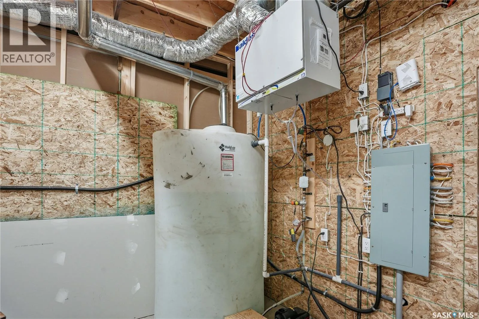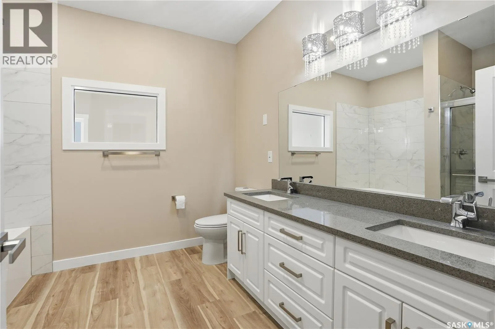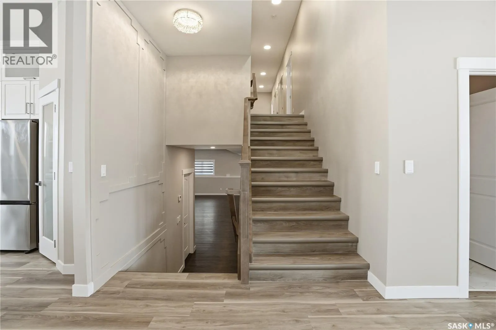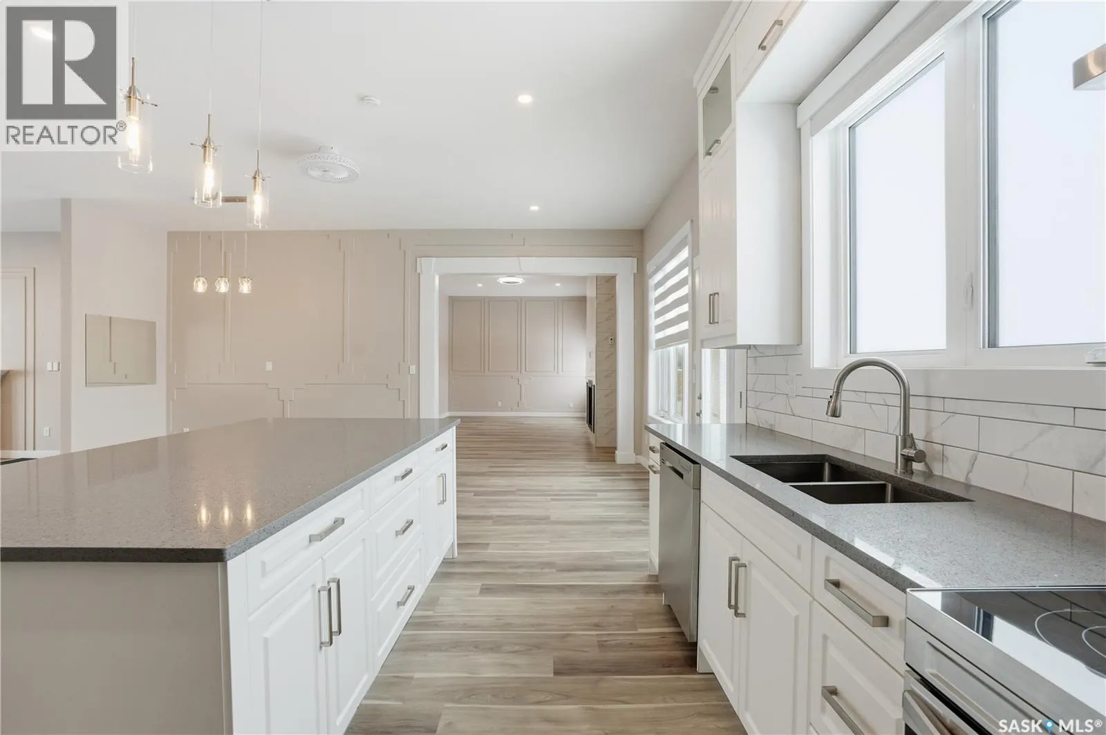 Welcome to Waterpark Estates â An Extraordinary Family Home Just Minutes from Saskatoon From the moment you arrive, this exceptional property sets itself apart. Nestled in the sought-after community of Waterpark Estates, this one-of-a-kind home delivers space, comfort, and versatility across four fully finished levels. The main floor invites you in with a generous living room anchored by an electric fireplace, flowing into a well-appointed kitchen featuring quartz countertops, a stylish backsplash, stainless steel appliances, a pantry, and abundant cabinetry. A large family room with its own fireplace adds a second gathering space, perfect for everyday living or entertaining. A convenient 2-piece bath completes this level. Upstairs, you'll find four bedrooms including a unique private suite with an attached den â ideal as a home office, nursery, or reading room. The primary bedroom is a true retreat, boasting a luxurious ensuite, walk-in closet, and a partially heated bonus room that doubles beautifully as a sunroom. Two additional bedrooms share a well-sized common bathroom, and upper-floor laundry rough-in adds future convenience. The fully developed basement expands your living options with two more bedrooms, a full bathroom, a recreation room, a bonus room, and â a standout feature â its own separate entrance, offering excellent suite potential. Year-round comfort is ensured with in-floor radiant heating via a boiler system and central air conditioning. The oversized triple attached garage is both insulated and heated, a true Saskatchewan necessity. Homes like this don't come along often. Contact your favourite REALTOR® today to book your private showing. (id:27476)