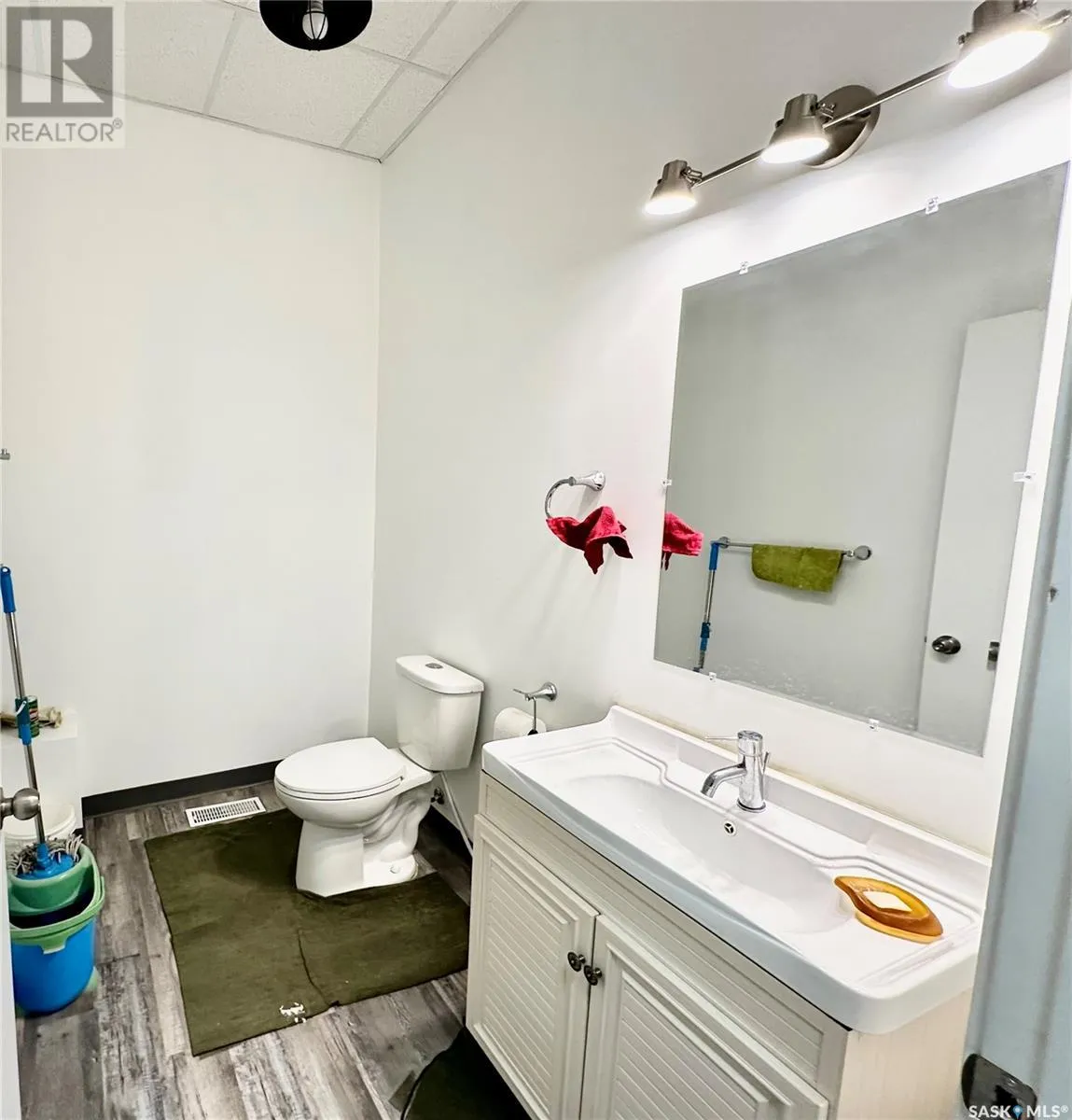 Welcome to this fully renovated commercial gem located in the heart of Dundurn, just a short 20-minute drive south of Saskatoon. With over 2100 sq ft on the main floor, the building encompasses a 1200 sq ft store front reception area featuring a wet bar, two private offices, a 400 sq ft boardroom/living quarter, and a 750 sq ft warehouse/workshop with an overhead door. The large concrete slab in the back is versatile for parking or shipping containers. Professionally renovated, the basement adds an extra 1200 sq ft, offering a self-contained living space with two bedrooms, kitchen, laundry, family room, and a bathroom. High-end aluminum core board built-in cabinets enhance the interior. The entire property has undergone a comprehensive renovation, including newer flooring, bathrooms, shingles, mechanical systems, water heater, and furnace, with the seller investing over $200k in upgrades over the past few years. This expansive space presents numerous possibilities, making it suitable for retail, office, medical, warehouse, or small business ventures. Don't miss the opportunity to explore the potential of this meticulously renovated property, offering both space and versatility for various business endeavors. (id:27476)
