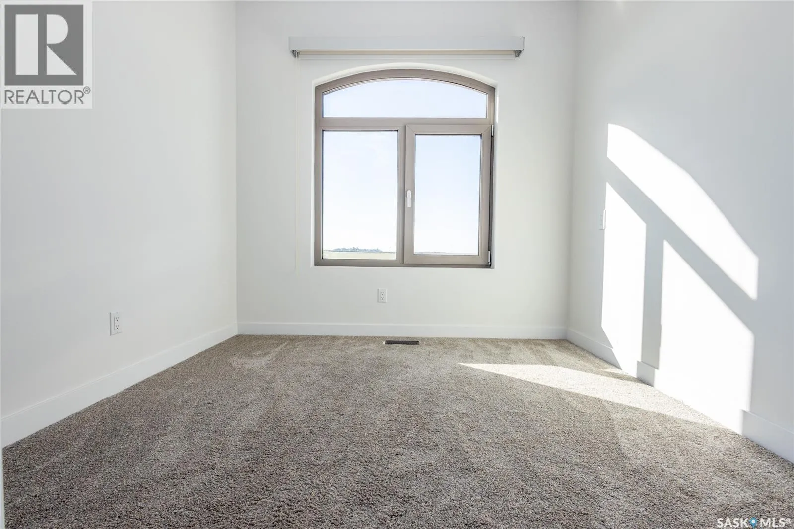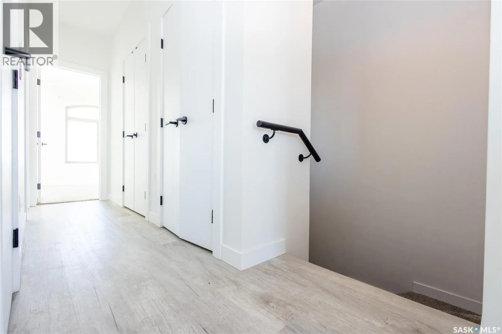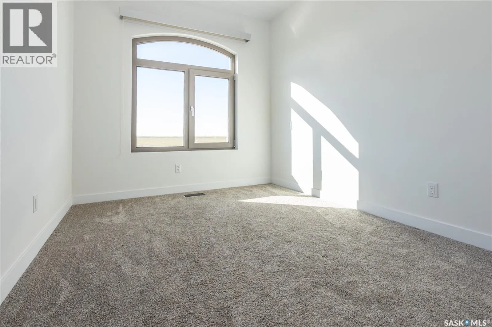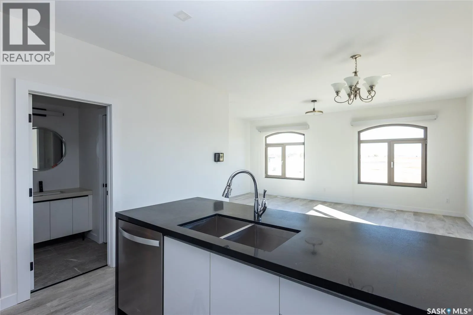 Rare found commercial and residential combined for sale. No Condo Fees. End Unit including side landscrape yard for personal use. First floor has commercial space: can be office or make a coffee shop. 2nd floor offers living area: large living room with around huge windows, beautiful kitchen has L-shape island and quartz counter tops. Master bedroom with walk-in closet and 3pc bathroom ensuite. One more good size bedroom. Very bright and great country view around. 9 feet ceiling and central A/C. Located just minutes away from Blackstrap Lake and about 20 minutes away from Saskatoon. (id:27476)