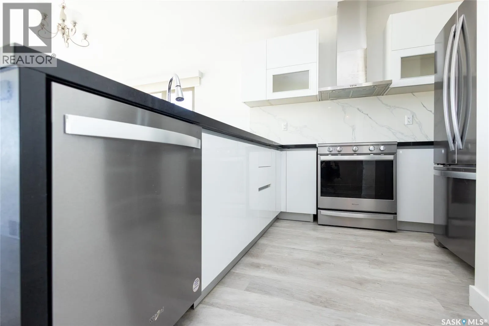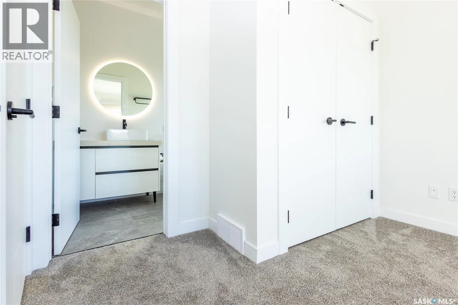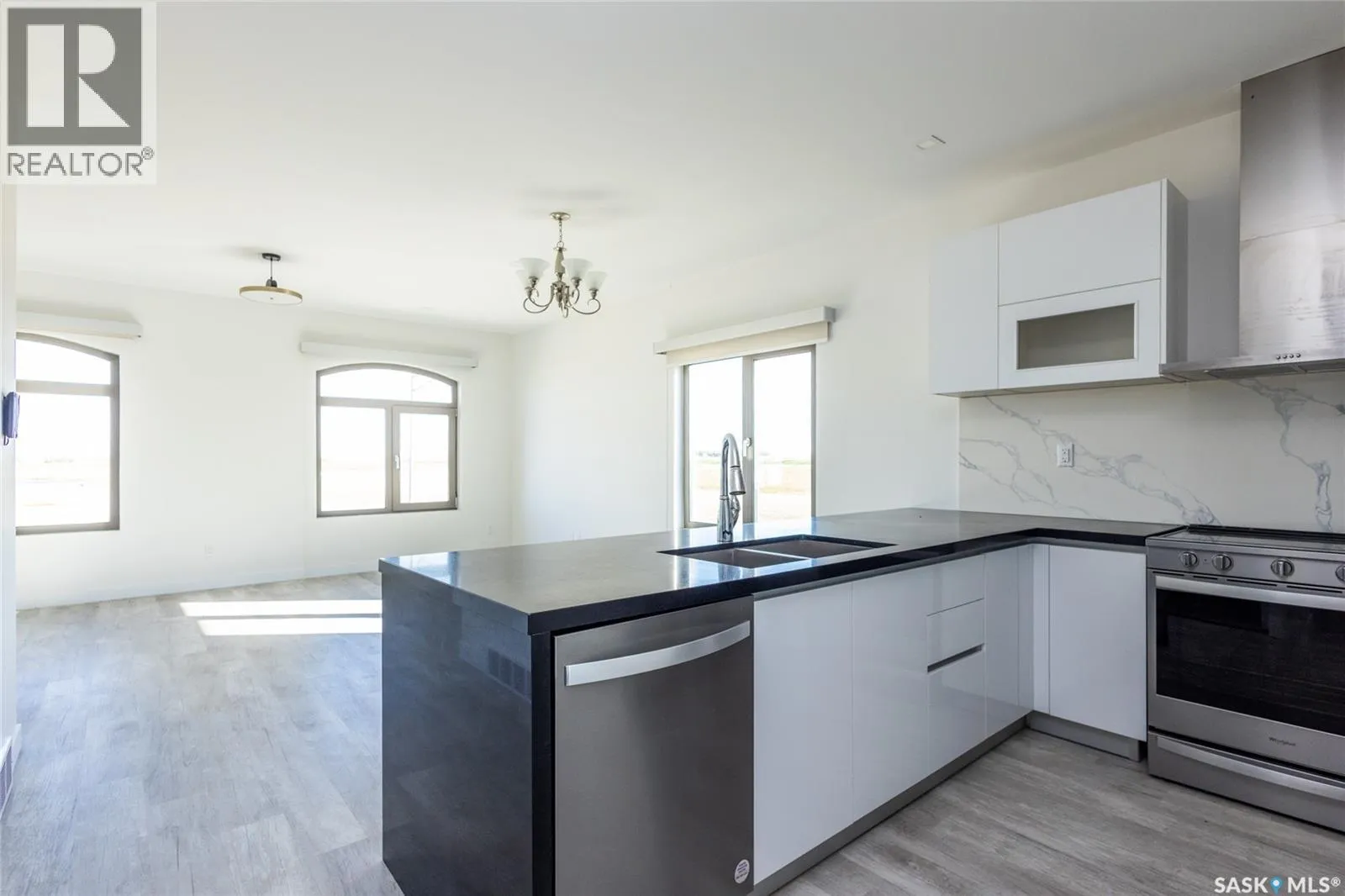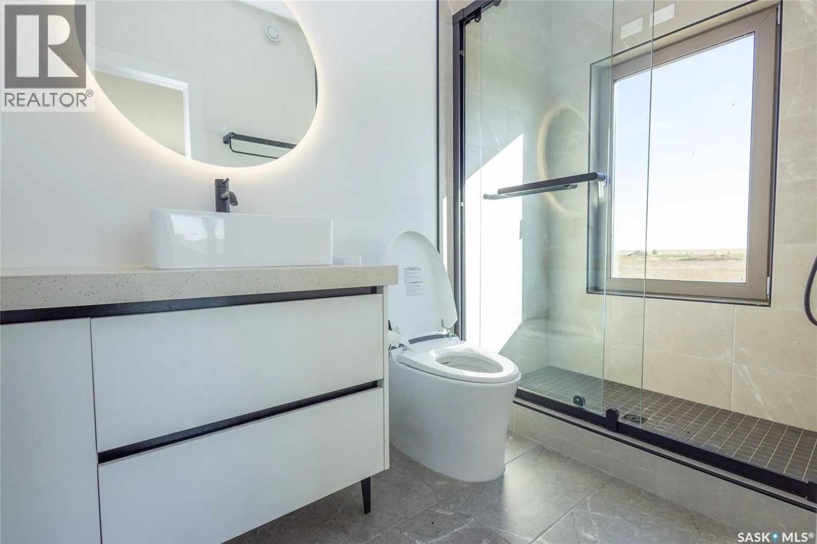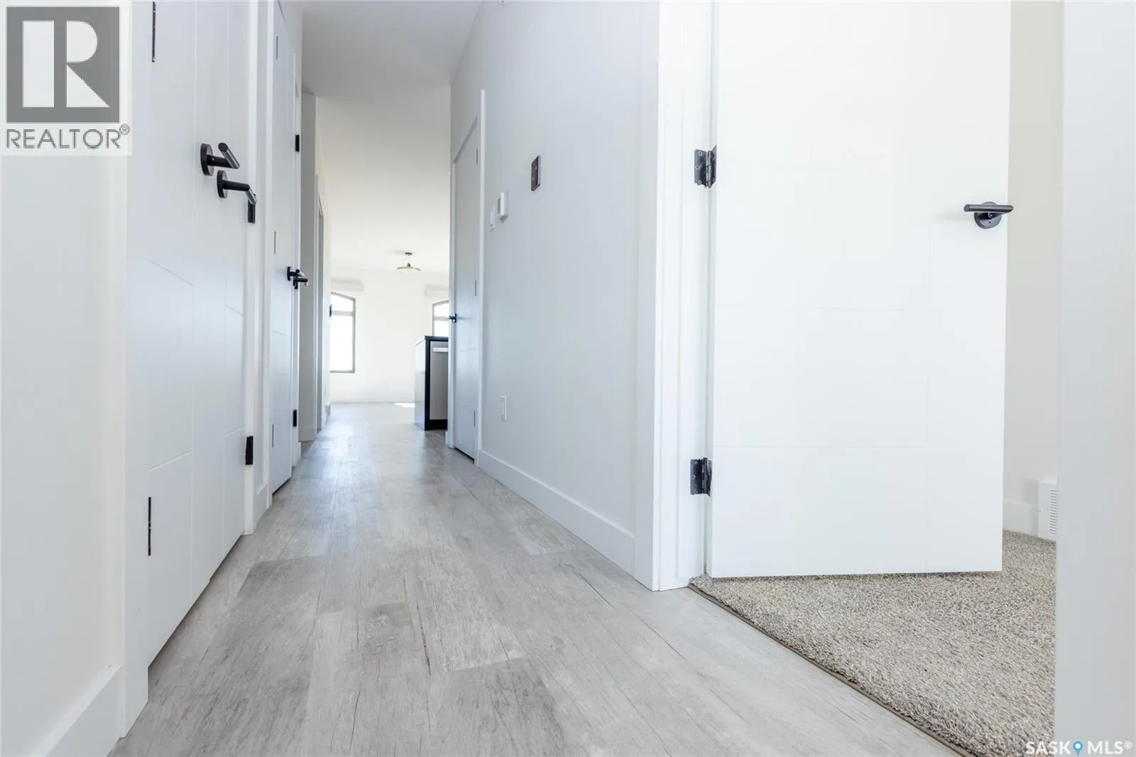 Rare found commercial and residential combined for sale. No Condo Fees. End Unit including side landscrape yard for personal use. First floor has commercial space: can be office or make a coffee shop. 2nd floor offers living area: large living room with around huge windows, beautiful kitchen has L-shape island and quartz counter tops. Master bedroom with walk-in closet and 3pc bathroom ensuite. One more good size bedroom. Very bright and great country view around. 9 feet ceiling and central A/C. Located just minutes away from Blackstrap Lake and about 20 minutes away from Saskatoon. (id:27476)