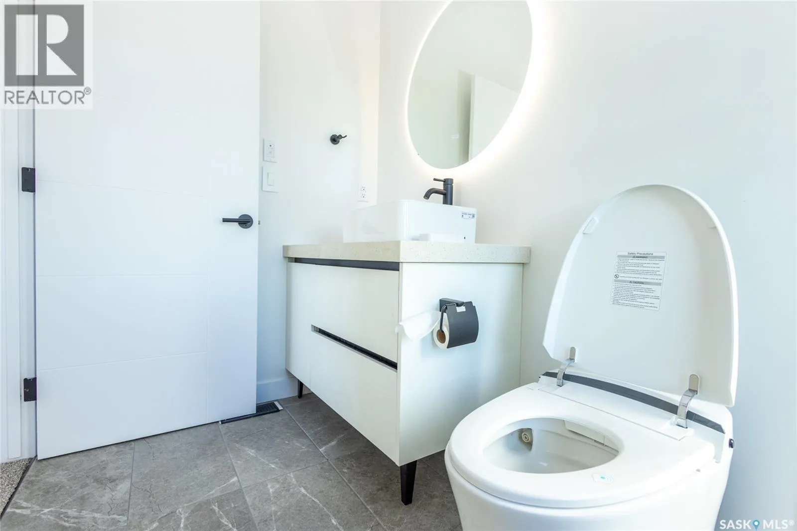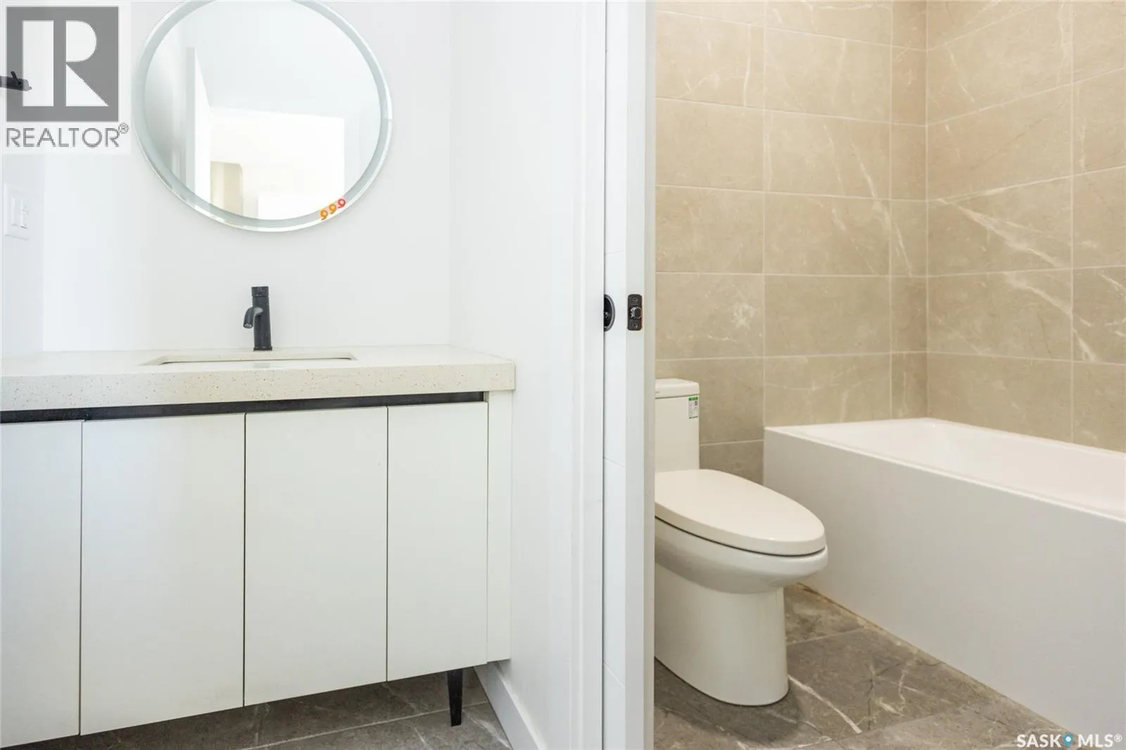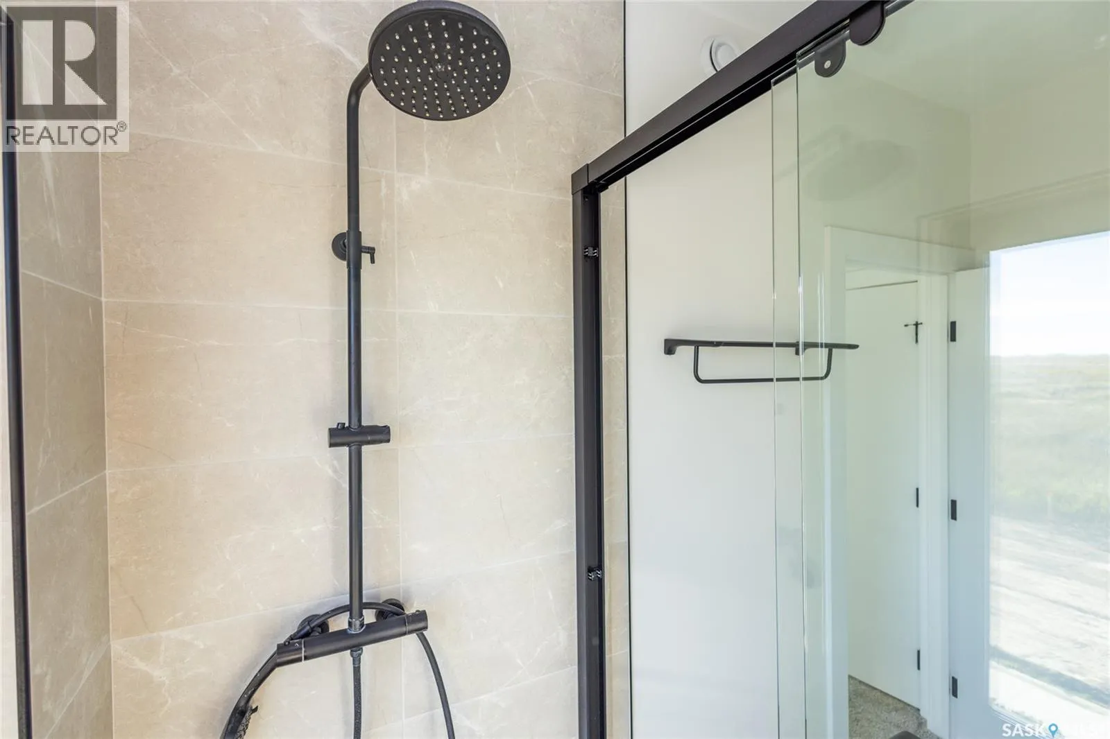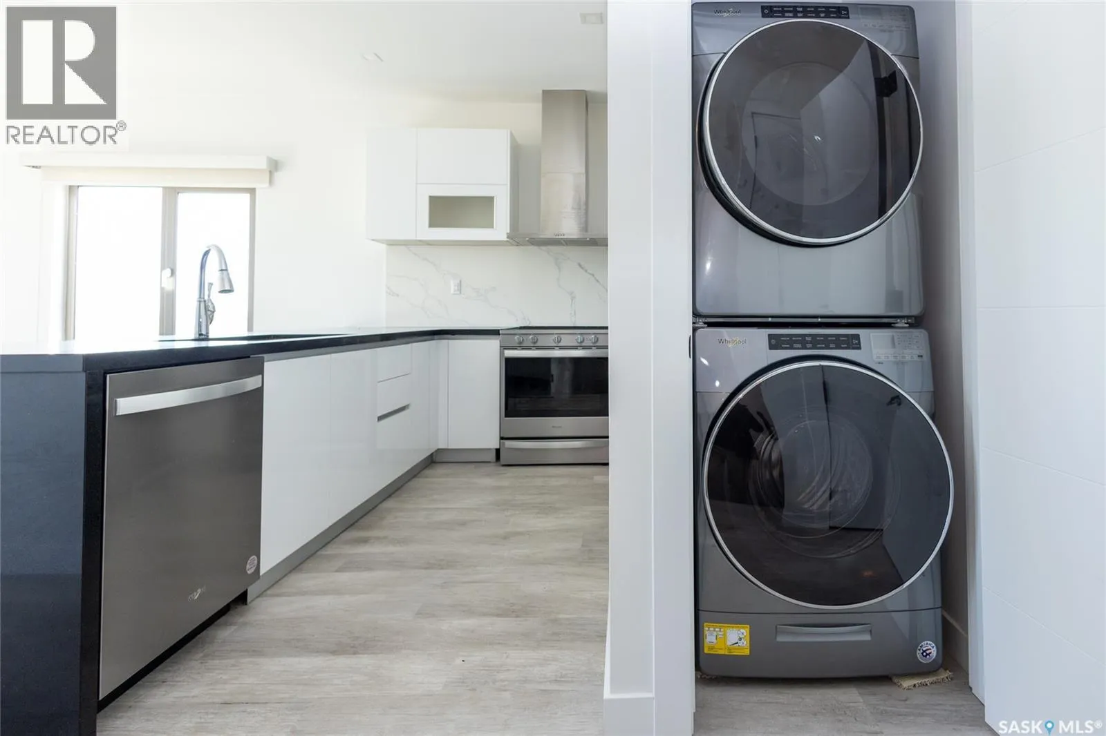 Rare found commercial and residential combined for sale. No Condo Fees. End Unit including side landscrape yard for personal use. First floor has commercial space: can be office or make a coffee shop. 2nd floor offers living area: large living room with around huge windows, beautiful kitchen has L-shape island and quartz counter tops. Master bedroom with walk-in closet and 3pc bathroom ensuite. One more good size bedroom. Very bright and great country view around. 9 feet ceiling and central A/C. Located just minutes away from Blackstrap Lake and about 20 minutes away from Saskatoon. (id:27476)