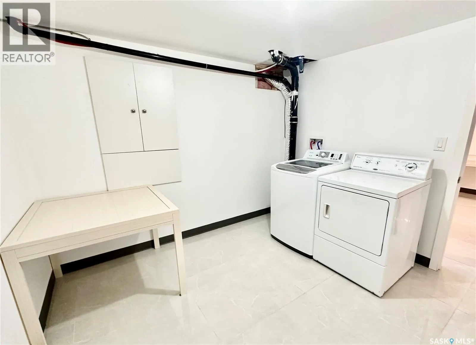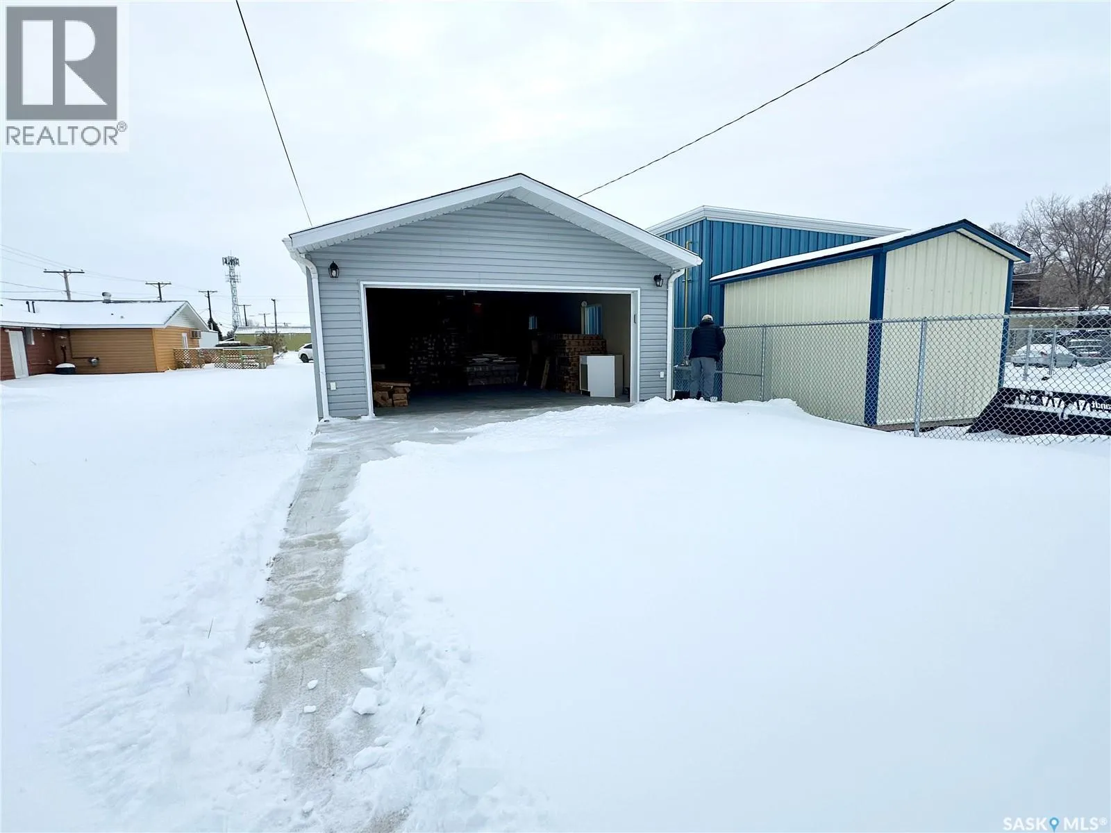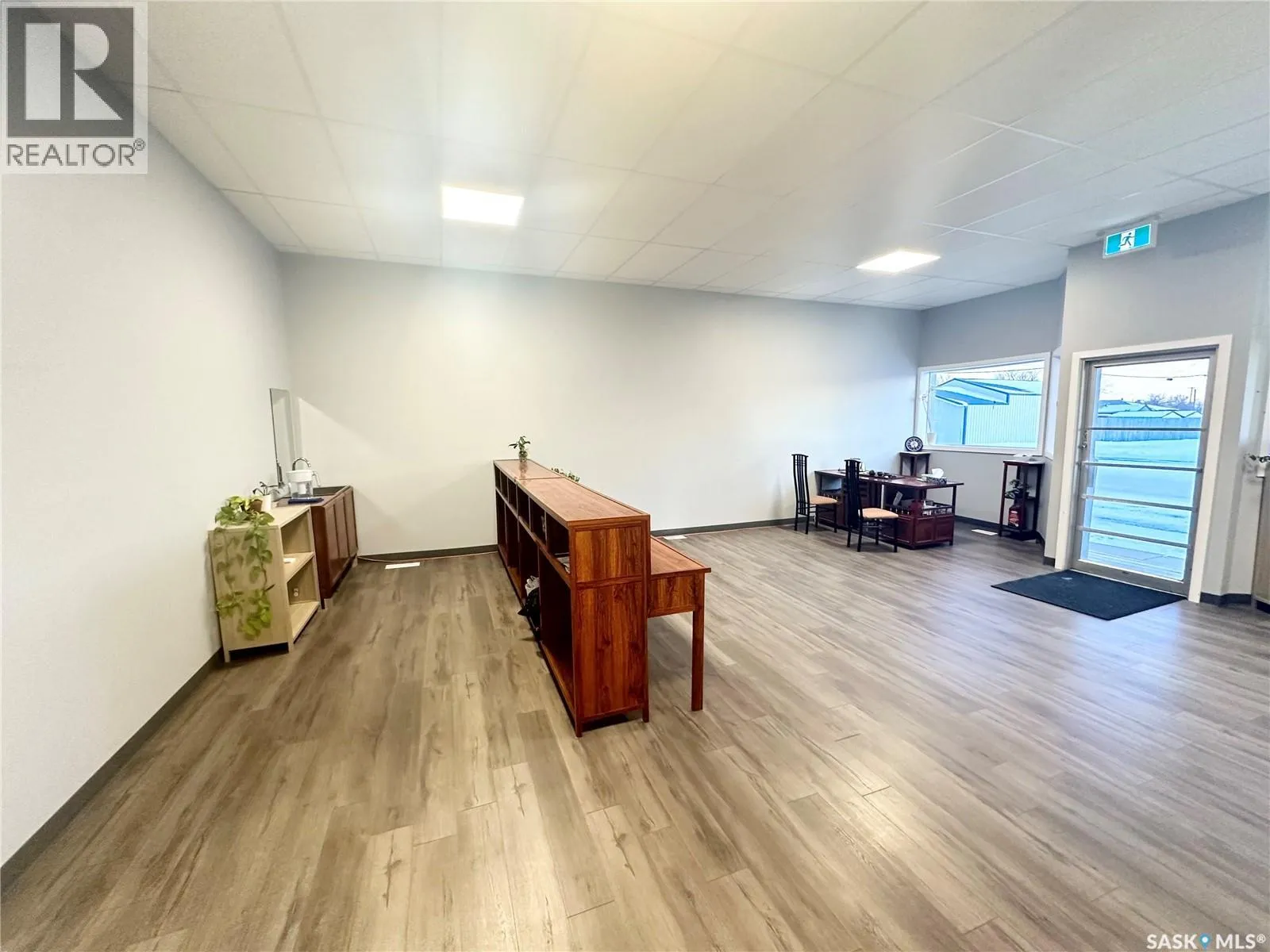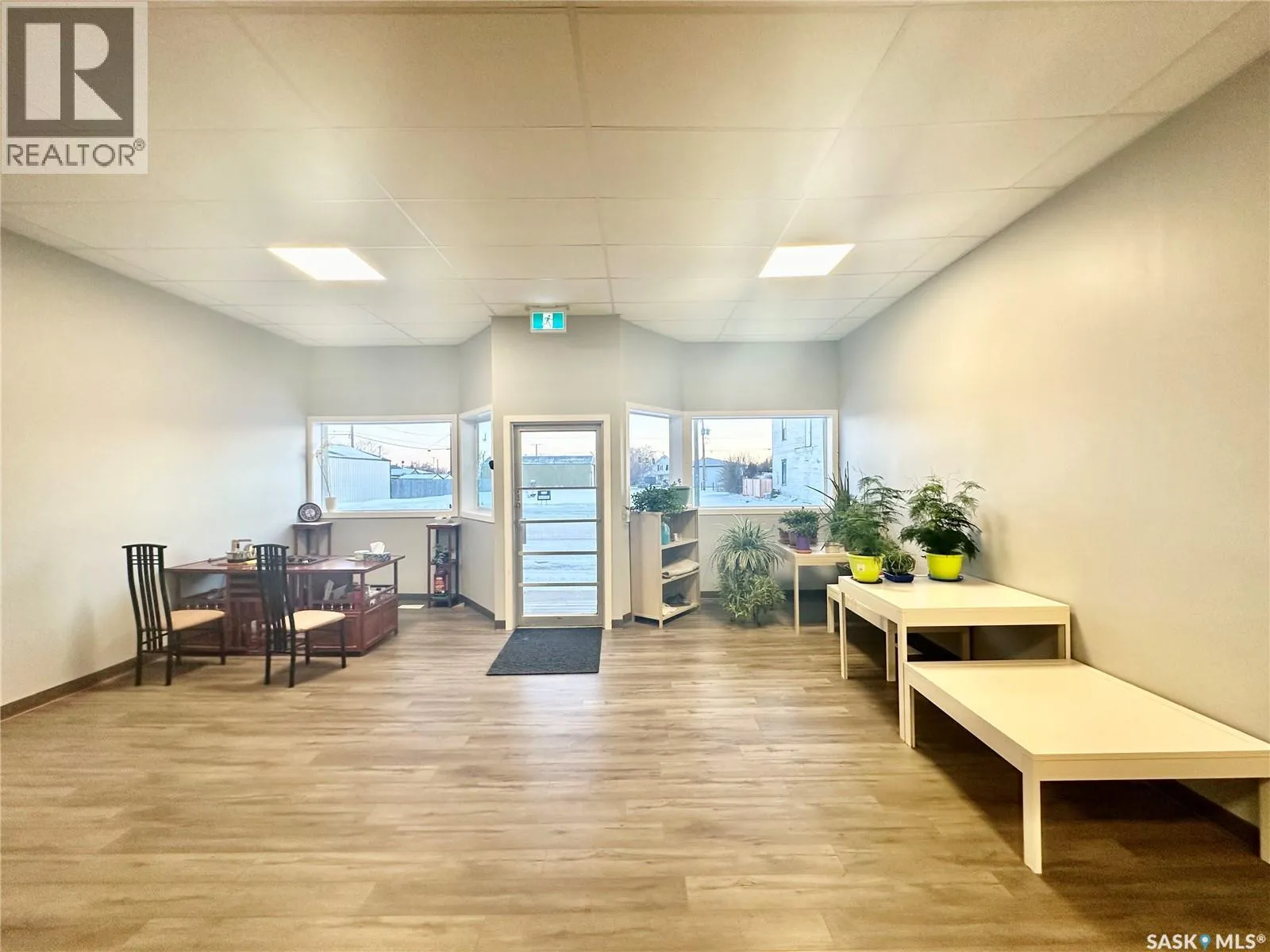 Welcome to this fully renovated commercial gem located in the heart of Dundurn, just a short 20-minute drive south of Saskatoon. With over 2100 sq ft on the main floor, the building encompasses a 1200 sq ft store front reception area featuring a wet bar, two private offices, a 400 sq ft boardroom/living quarter, and a 750 sq ft warehouse/workshop with an overhead door. The large concrete slab in the back is versatile for parking or shipping containers. Professionally renovated, the basement adds an extra 1200 sq ft, offering a self-contained living space with two bedrooms, kitchen, laundry, family room, and a bathroom. High-end aluminum core board built-in cabinets enhance the interior. The entire property has undergone a comprehensive renovation, including newer flooring, bathrooms, shingles, mechanical systems, water heater, and furnace, with the seller investing over $200k in upgrades over the past few years. This expansive space presents numerous possibilities, making it suitable for retail, office, medical, warehouse, or small business ventures. Don't miss the opportunity to explore the potential of this meticulously renovated property, offering both space and versatility for various business endeavors. (id:27476)