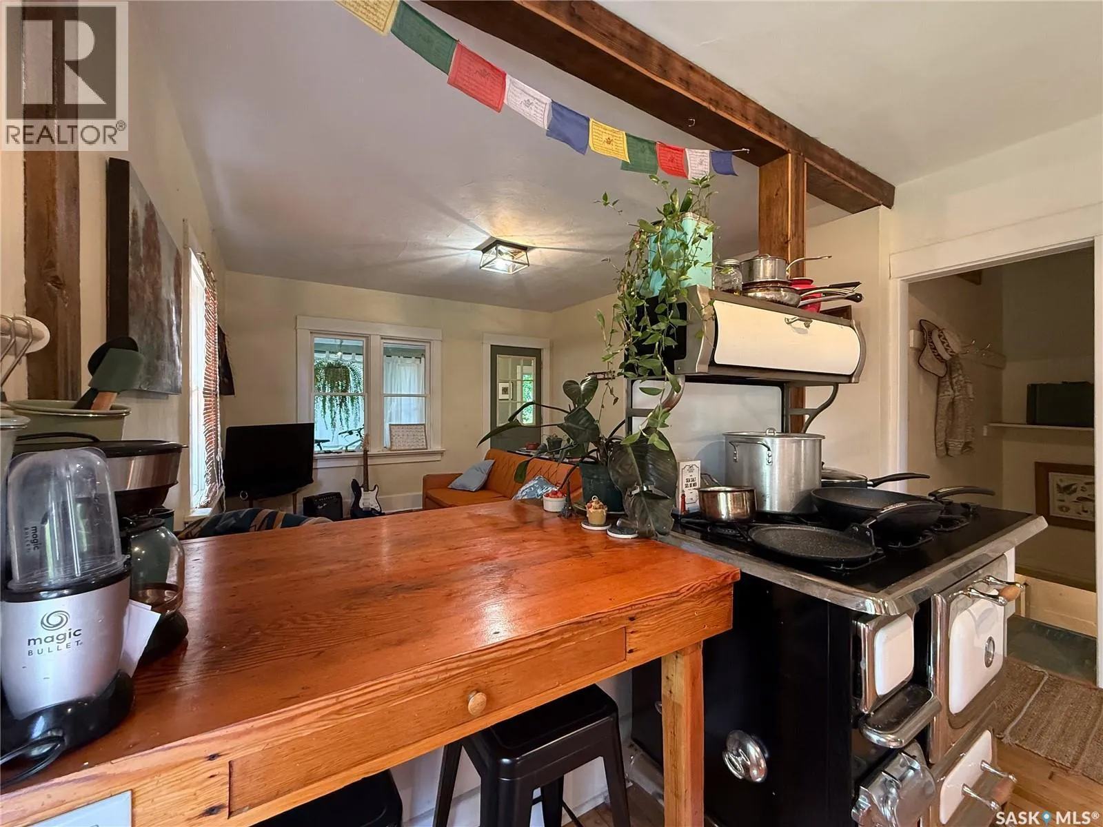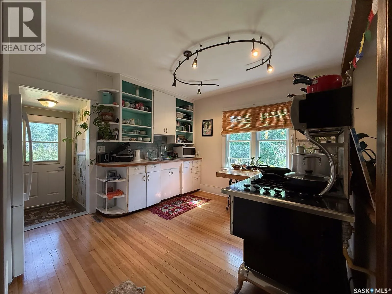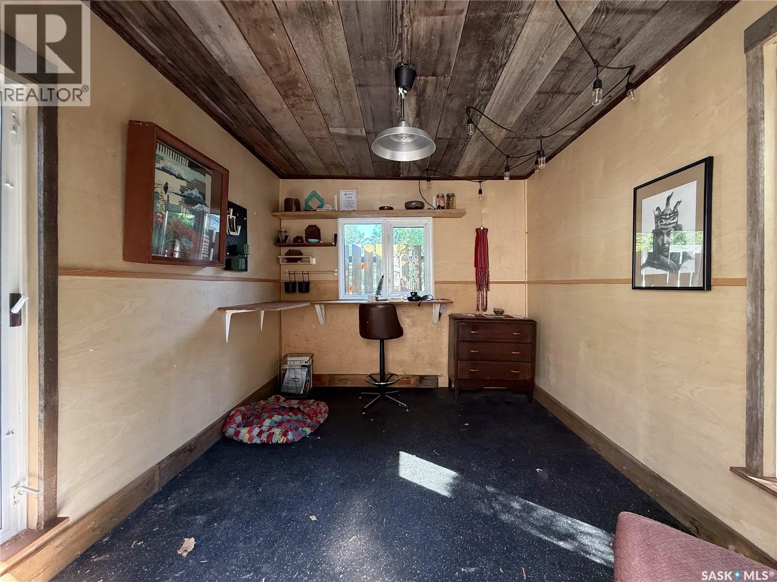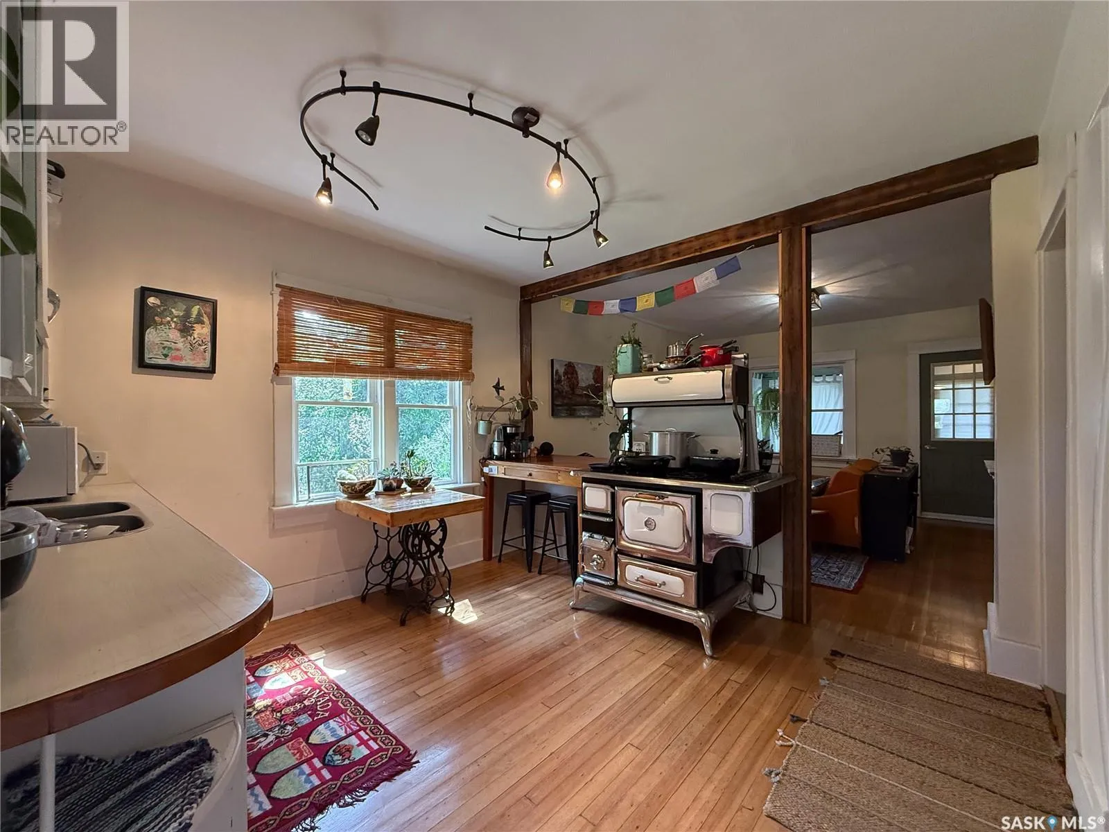 Welcome to 137 Fir Avenue N in Eastend â a charming 689 sq. ft. bungalow that offers character, privacy, and a one-of-a-kind outdoor setting. Originally built in 1928 with a thoughtful addition in 1950, this cozy home offers 1 bedroom, a 3-piece ensuite-style bathroom with dual access, and a partially developed basement with a den that can serve as an extra sleeping area or creative space. Step through the front gate and youâll feel like youâve entered your own secret garden. This property is a nature loverâs paradise â surrounded by lush greenery, mature perennials, raspberry bushes, mint, rhubarb, and more. The jungle-like curb appeal continues into the backyard, making it the perfect setting for peaceful mornings, inspired afternoons, and relaxing evenings. Enter the home through a spacious enclosed sunroom thatâs ideal for your morning coffee or a good book. Inside, the open concept living and kitchen area features original hardwood floors and is full of warmth and charm. The kitchen is home to a show-stopping, antique-style stove that sets the tone for the rest of the space. The bedroom offers a large closet and connects to the bathroom, which also has access from the kitchen â keeping the layout functional without sacrificing character. Downstairs, the basement includes a den, laundry area, utility space, and additional room for storage or workshop potential. Thereâs also a rustic backyard shed that would make an ideal artist studio, workshop, or gardening hub. Located in the scenic community of Eastend â nestled in the Frenchman River Valley and famous for the T.rex Discovery Centre â youâll enjoy local cafes, friendly neighbours, walking trails, and a welcoming, small-town vibe. Whether you're looking to downsize, escape the city, or simply embrace a slower pace surrounded by beauty, 137 Fir Avenue N is a rare find at an affordable price. (id:27476)