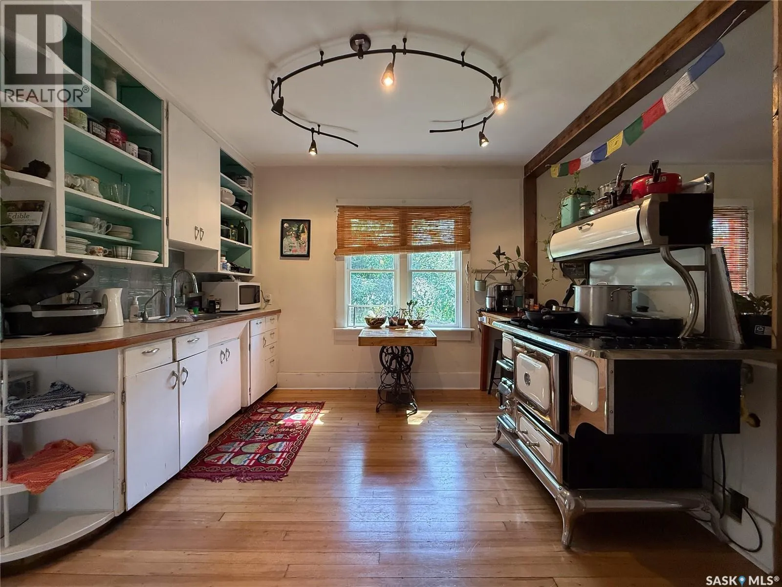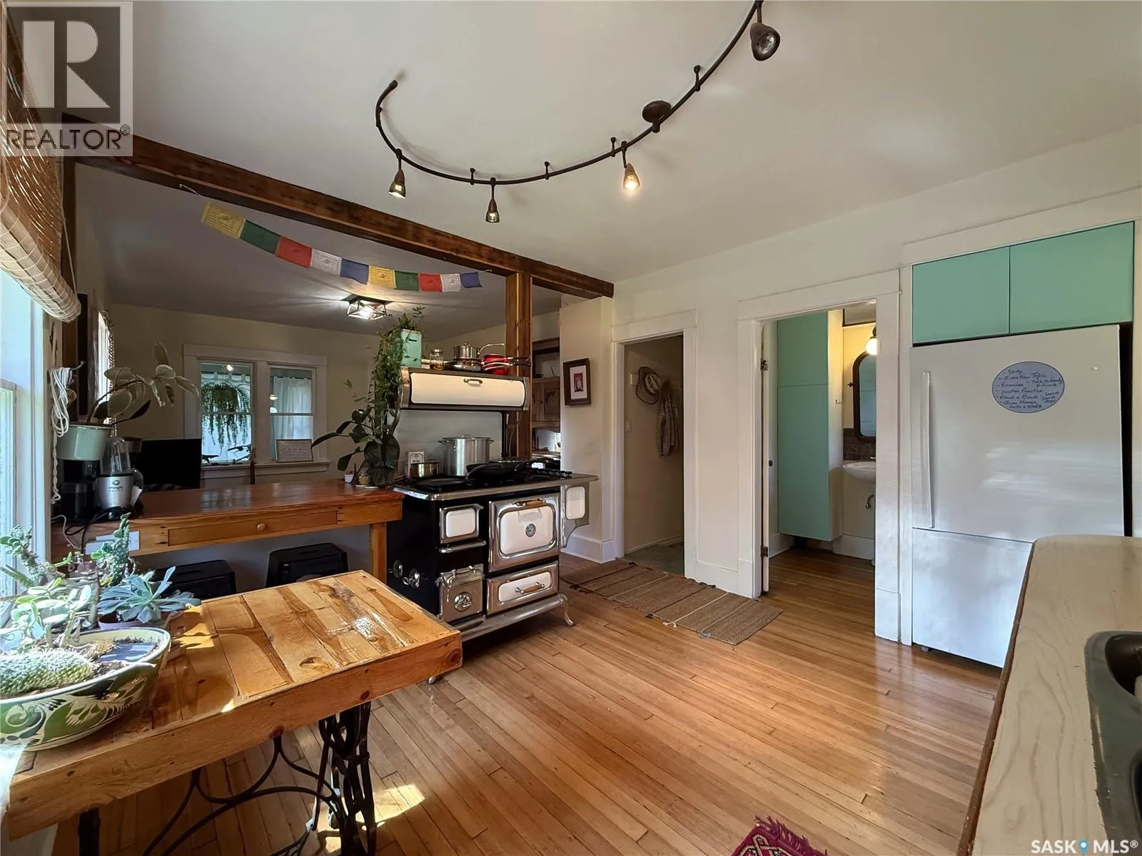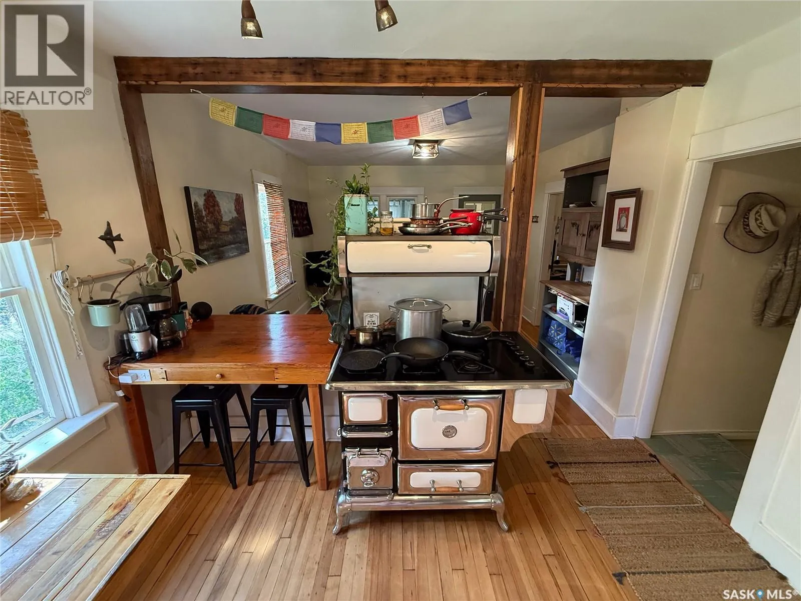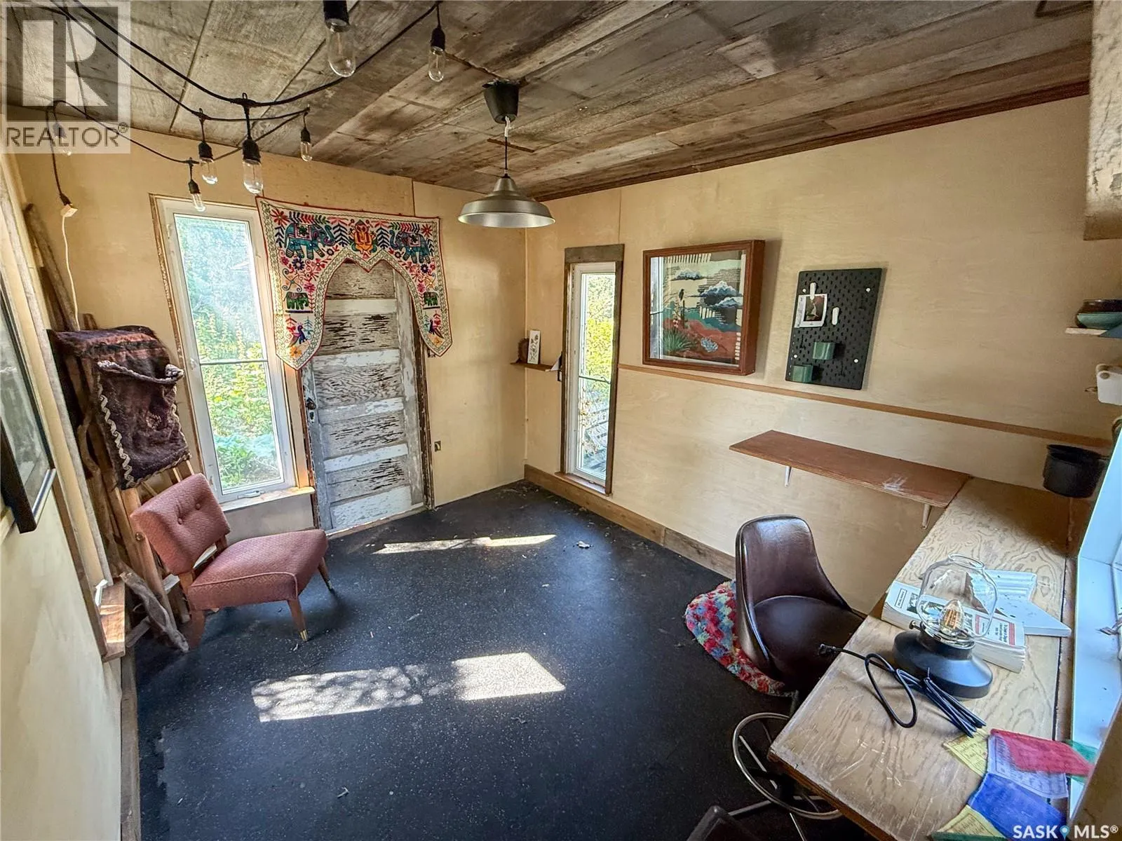 Welcome to 137 Fir Avenue N in Eastend â a charming 689 sq. ft. bungalow that offers character, privacy, and a one-of-a-kind outdoor setting. Originally built in 1928 with a thoughtful addition in 1950, this cozy home offers 1 bedroom, a 3-piece ensuite-style bathroom with dual access, and a partially developed basement with a den that can serve as an extra sleeping area or creative space. Step through the front gate and youâll feel like youâve entered your own secret garden. This property is a nature loverâs paradise â surrounded by lush greenery, mature perennials, raspberry bushes, mint, rhubarb, and more. The jungle-like curb appeal continues into the backyard, making it the perfect setting for peaceful mornings, inspired afternoons, and relaxing evenings. Enter the home through a spacious enclosed sunroom thatâs ideal for your morning coffee or a good book. Inside, the open concept living and kitchen area features original hardwood floors and is full of warmth and charm. The kitchen is home to a show-stopping, antique-style stove that sets the tone for the rest of the space. The bedroom offers a large closet and connects to the bathroom, which also has access from the kitchen â keeping the layout functional without sacrificing character. Downstairs, the basement includes a den, laundry area, utility space, and additional room for storage or workshop potential. Thereâs also a rustic backyard shed that would make an ideal artist studio, workshop, or gardening hub. Located in the scenic community of Eastend â nestled in the Frenchman River Valley and famous for the T.rex Discovery Centre â youâll enjoy local cafes, friendly neighbours, walking trails, and a welcoming, small-town vibe. Whether you're looking to downsize, escape the city, or simply embrace a slower pace surrounded by beauty, 137 Fir Avenue N is a rare find at an affordable price. (id:27476)