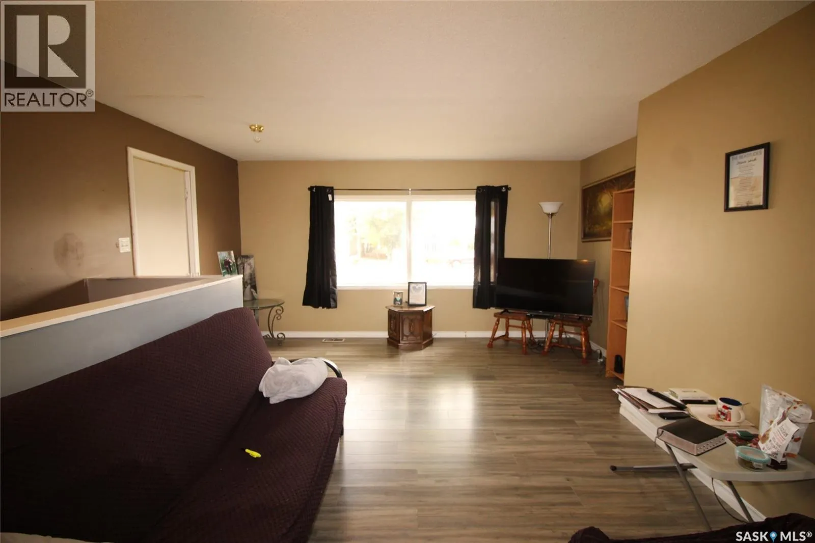 Right on the way into Eastend, SK this beauty is the best bang for your buck! This raised bungalow was set up on a large 50'x120' lot. A three bedroom bungalow, with an un-traditional layout, this home is ready for your family. Through the front door you enter into a large living room with great natural light. The kitchen is a dine-in style with a large bank of cabinets and sunny views. Each of the three bedrooms have loads of closet space and the main floor bath has a deep soaker tub with a ceramic tile surround. The lower level is framed up with bedroom and 2pc bath. The Seller has worked hard to update all the windows to newer PVC style, added an updated electrical pane, pex plumbing, and an EE furnace. Lots of the heavy lifting has been done with drywall hung so the finishing will be quick and easy. The owner has just updated the shingles in July of 2024. Get the space and updates you are looking for at the price you want! (id:27476)