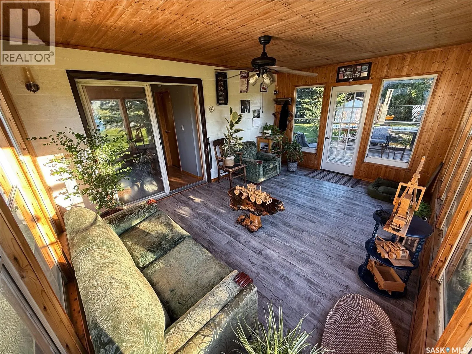 Welcome to 223 Riverside Boulevard â a rare gem tucked into one of Eastendâs most picturesque settings. With wide-open green space across the street and the gently flowing creek just beyond, this home offers uninterrupted views of the Riverside Golf Course and even a peek of the T.rex Discovery Centre off in the distance. Itâs the kind of property where morning coffee comes with deer sightings and evening sunsets glow golden over the valley. With 1,203 sqft of living space and sitting on a massive 17,325 sqft lot, this property offers both beauty and functionality in a truly unbeatable location. Entering from the back, youâre greeted by a practical mudroom that leads straight ahead to the main floor laundry area or left into the heart of the home. The oak kitchen features a large eat-up island, perfect for casual meals or entertaining, while the adjacent dining area/living room are bright and welcoming thanks to the large bay window that frames those stunning front-facing views. Off this space, youâll find the 1st main floor bedroom, a 4-piece bathroom and access to the partially developed basement.. The primary bedroom is tucked away off the secondary living room and features its own 3-piece ensuite. From the living room you have direct access to the show-stopping sunroom â finished in rich wood accents and flooded with natural light. Whether you're unwinding with a book or hosting friends, this space offers space for enjoyment and leads out to the deck and backyard oasis. A small feature pond, established landscaping and ample entertaining space make the outdoors just as inviting as the inside. The lot offers multiple parking options, including a gravel front drive, asphalt rear pad, parking beside the shed and a 32x26 double detached garage with lane access â partially insulated and ready for projects or storage. Whether you're looking to settle in the valley full-time or dreaming of a peaceful getaway, this prime Eastend location gives you the best of it all. (id:27476)