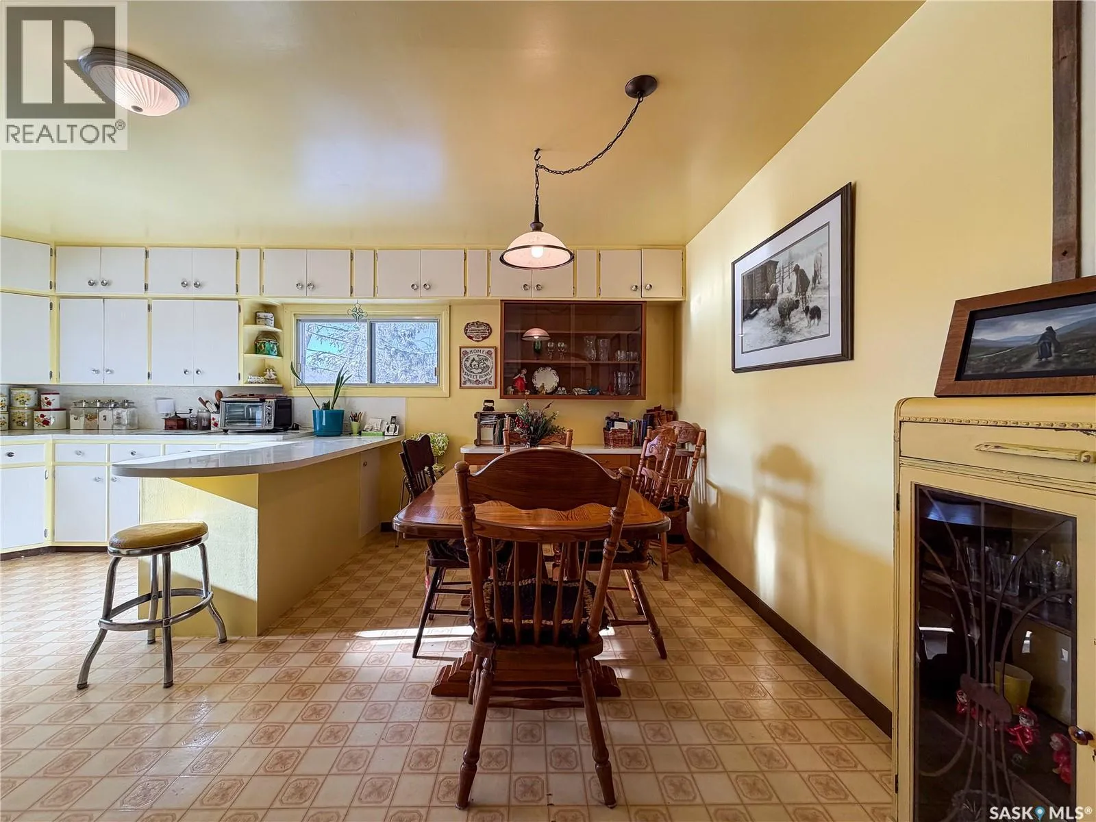 Welcome to 610 Railway Street in Eastend â a charming 4-bedroom, 2-bathroom bungalow with stunning backyard views and a lifestyle rooted in peace, space, and small-town charm. Set on a generous 15,000 sq. ft. lot with no back neighbours, this 1,070 sq. ft. home offers direct access to walking trails and scenic views of the old railway line â a rare combination that gives you both privacy and natural beauty right out your back door. With a single detached garage and two separate drivewaysâone on each side of the homeâyouâll have more than enough space for parking, guests, or extra vehicles. Step inside to a sun-soaked main floor living room with plenty of natural light, setting the tone for a warm and welcoming layout. To the right, youâll find the kitchen and dining area, complete with a built-in china cabinet and stainless steel appliances, including a gas stove (2017) and fridge (2021). The cabinetry offers abundant storage, and the dining space is ideal for everyday meals or hosting loved ones. The main floor also includes two well-sized bedrooms and a 4-piece bathroom, making for a practical and cozy layout. Downstairs, the fully developed basement adds two additional bedrooms, a renovated 3-piece bathroom (2022), and a spacious family room with a newly installed gas fireplace (2024) â perfect for keeping warm and comfortable even during power outage. Youâll also find a high-efficiency furnace (2017), newer water heater (approx. 2020), cold storage, large storage room, and laundry area with washer & dryer (2018) â ticking all the boxes for practical daily living. The backyard is a dream for gardeners, pet lovers, and families alike. With a newer veranda(2023), raised garden beds (2023), a storage shed, and firepit, this outdoor space offers tons of room to relax, play, or grow your own food. Gated access from both sides of the property and a gate at the back make the yard as functional as it is beautiful. Updated metal roof on home & garage in 2023. (id:27476)
