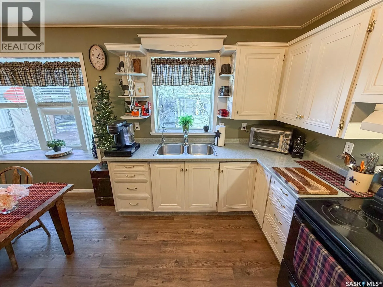 Welcome to 118 Cedar Avenue N in Eastend, SK â a charming & well-updated character home that blends timeless appeal w/modern efficiency. Originally built in 1926 w/thoughtful additions in 1996, this home offers comfortable living, smart upgrades & excellent functionality both inside & out. Step inside to a bright & inviting main floor where bay windows in the living room fill the space w/natural light. The home features 2 spacious bedrooms, 1 of which could easily double as a home office thanks to its beautiful bay window feature. The 4-pce bathroom/laundry combo on main floor adds convenience, while the kitchen/dining area also benefit from bay windows. Downstairs, the basement offers additional versatility w/ a den that could function as a secondary kitchen space, already equipped w/a sink & oven hookups. Youâll also find a 4-pce bathroom, utility room & a cold storage area, along w/an insulated crawl space for added efficiency & storage. This home has seen extensive updates including a new furnace(2024), on-demand hot water heater(2024), updated stack, mostly updated water lines & a 100-amp panel. Roof was replaced & reinforced in 2012, featuring durable metal shingles designed to look like cedar shakes, backed by a 50-year warranty on both the home & garage. The property also includes a 19x22 fully insulated single detached garage(unheated) w/a 60-amp panel & 220V plug, along w/a convenient lean-to & gravel drive & 2 sheds & a landscaped area featuring a firepit and patio with log swing, pear tree and mature bushes. A standout feature is the installed generator system, capable of powering key components of the home including the furnace, sump pump, water heater, fridge, deep freeze & main living areaâoffering peace of mind during outages. This home can be considered an eco energy retrofit home, meaning it has been upgraded over time w/energy-efficient systems & improvements reducing energy consumption, increase reliability & enhance long-term cost savings. (id:27476)