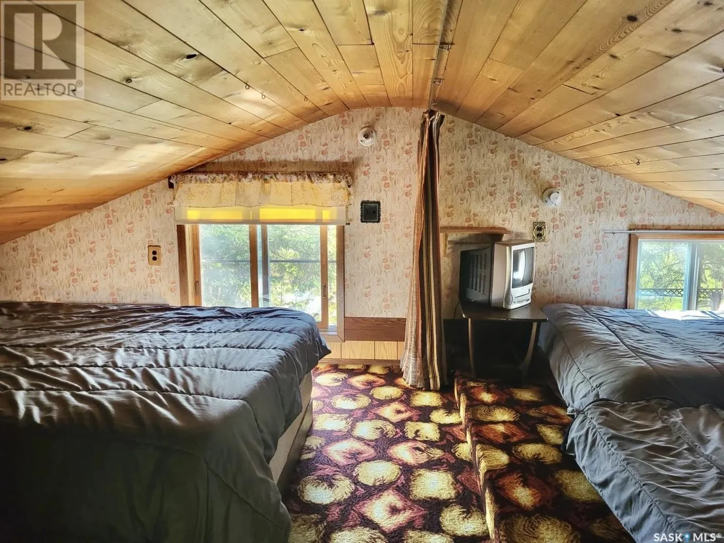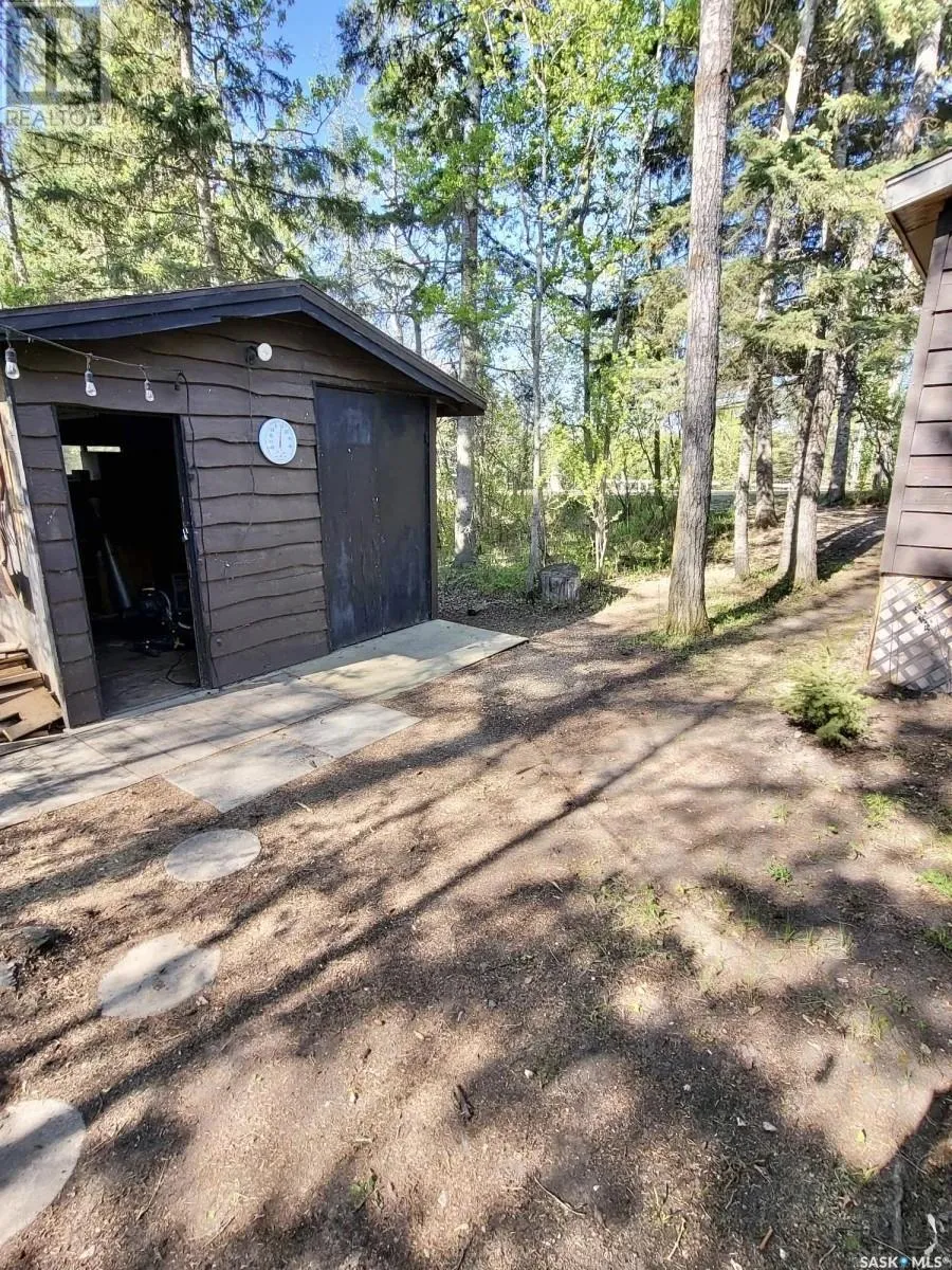 Your Lakeside Sanctuary Awaits â This vintage cabin blends private, classic charm with a surprisingly spacious layout, featuring a large kitchen, open concept living and dining area, and a massive loft that sleeps up to six. With private beach access, stunning westward views, and a prime location just steps from the lake, this is your chance to own the ultimate recreational retreat only an hour and a half from Saskatoon. Cabin Features: Thoughtful Layout (1091 sq. main floor and loft) Two Main-Floor Bedrooms â Plenty of room for family or guests One large bathroom with separated shower and toilet area Open-Concept Livingroom and Kitchen â The sun-filled living area flows into a large kitchen and dining nook. Kitchen includes fridge, microwave and stove Versatile Loft â The huge loft offers flexible space for extra beds, or a cozy loungeâ ideal for family and guests Bright Sunroom â Features large south and west-facing windows adding additional lounging space Convenient Storage/Mudroom â thoughtfully located near the side entrance, perfect for organizing coats, shoes and outdoor gear Indoor-Outdoor Flow â Sliding glass doors open to a spacious private rear deck Outdoor Paradise Massive, Private Lot â Over 5000 sq. ft. of natural space surrounded by mature trees with room to explore. Nature reserve located on the north and east sides, and only one neighbour located on the south side Private beach â Built-in staircase leads directly to the water, just steps from the cabin featuring an area for a private dock Large Wrap-Around Deck â Ample space for outdoor dining, lounging and BBQing Two Separate Campfire Areas â A deck-side gathering spot, and a secluded forest nook Large shed â 12 x 12 Wood stove and electric baseboard heat 2Ã6/R20 insulated walls and R40 vaulted ceiling 30-Year architectural shingles, installed in 2023 100-Amp electrical panel 1,000-gallon septic + 1,200-gallon water tank (id:27476)