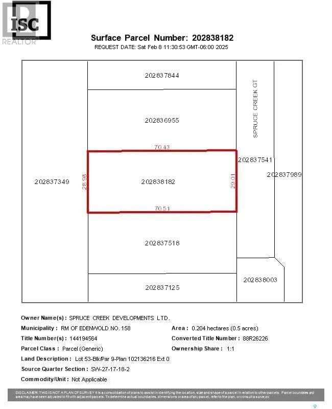 Spruce Creek is one of the most beautiful luxury developments, just outside the city. With lots ranging from 0.38 to 0.64 acres, there's plenty of space to develop whatever you and your builder can dream up. Just 7 mins to the East side of Regina, you get all the benefits of living away from the hustle, but with a short commute to all that the city has to offer. Spruce Creek has concrete (yes, concrete) roads and a community lake, creating a very unique and beautiful development. Lots can be purchased personally or by your builder. Some building requirements exist. There are still several lots remaining in this phase, check listings for additional options. Future phases include additional lots to the East including an additional lake. All prices are GST applicable. (id:27476)