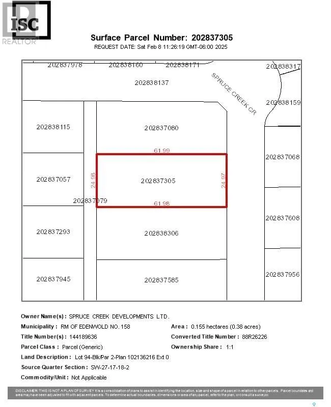 Spruce Creek is one of the most beautiful luxury developments, just outside the city. With lots ranging from 0.38 to 0.64 acres, there's plenty of space to develop whatever you and your builder can dream up. Just 7 mins to the East side of Regina, you get all the benefits of living away from the hustle, but with a short commute to all that the city has to offer. Spruce Creek has concrete (yes, concrete) roads and a community lake, creating a very unique and beautiful development. Lots can be purchased personally or by your builder. Some building requirements exist. There are still several lots remaining in this phase, check listings for additional options. Future phases include additional lots to the East including an additional lake. All prices are GST applicable. (id:27476)