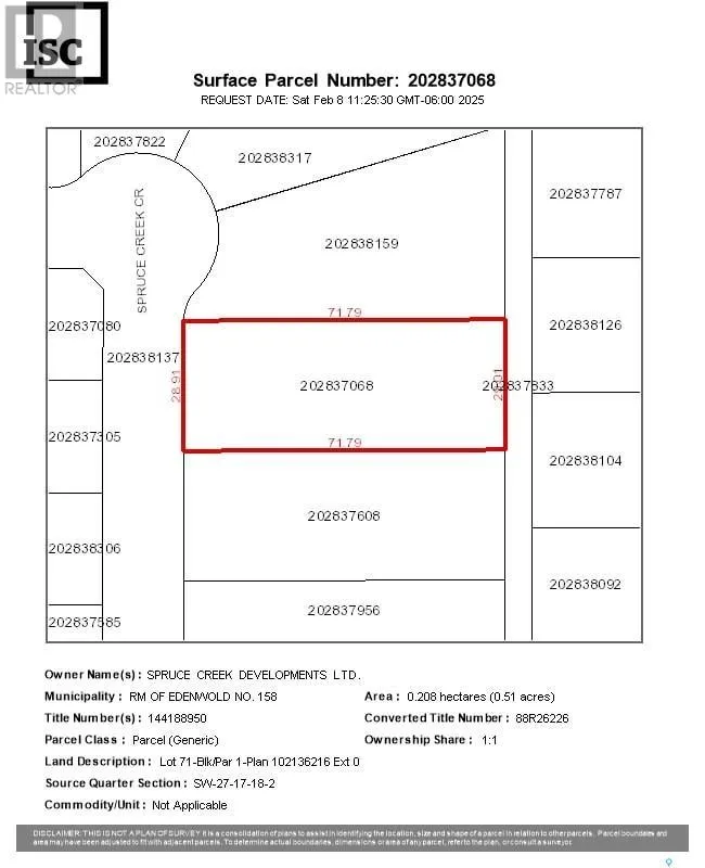 Spruce Creek is one of the most beautiful luxury developments, just outside the city. With lots ranging from 0.38 to 0.64 acres, there's plenty of space to develop whatever you and your builder can dream up. Just 7 mins to the East side of Regina, you get all the benefits of living away from the hustle, but with a short commute to all that the city has to offer. Spruce Creek has concrete (yes, concrete) roads and a community lake, creating a very unique and beautiful development. Lots can be purchased personally or by your builder. Some building requirements exist. There are still several lots remaining in this phase, check listings for additional options. Future phases include additional lots to the East including an additional lake. All prices are GST applicable. (id:27476)