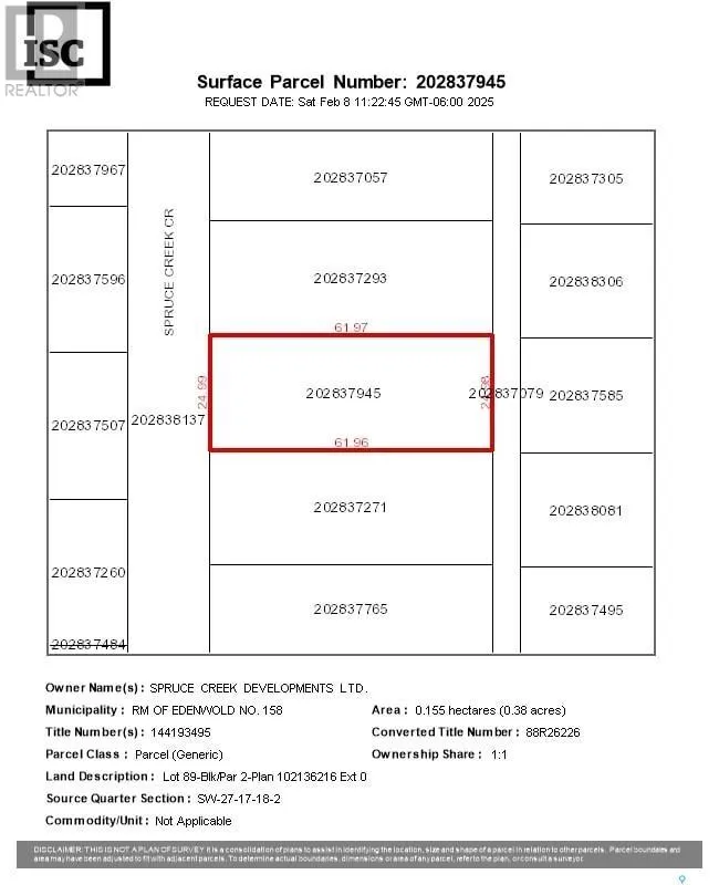 Spruce Creek is one of the most beautiful luxury developments, just outside the city. With lots ranging from 0.38 to 0.64 acres, there's plenty of space to develop whatever you and your builder can dream up. Just 7 mins to the East side of Regina, you get all the benefits of living away from the hustle, but with a short commute to all that the city has to offer. Spruce Creek has concrete (yes, concrete) roads and a community lake, creating a very unique and beautiful development. Lots can be purchased personally or by your builder. Some building requirements exist. There are still several lots remaining in this phase, check listings for additional options. Future phases include additional lots to the East including an additional lake. All prices are GST applicable. (id:27476)