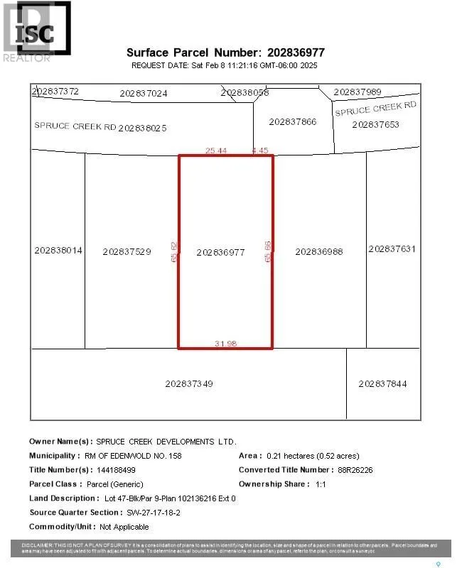 Spruce Creek is one of the most beautiful luxury developments, just outside the city. With lots ranging from 0.38 to 0.64 acres, there's plenty of space to develop whatever you and your builder can dream up. Just 7 mins to the East side of Regina, you get all the benefits of living away from the hustle, but with a short commute to all that the city has to offer. Spruce Creek has concrete (yes, concrete) roads and a community lake, creating a very unique and beautiful development. Lots can be purchased personally or by your builder. Some building requirements exist. There are still several lots remaining in this phase, check listings for additional options. Future phases include additional lots to the East including an additional lake. All prices are GST applicable. (id:27476)