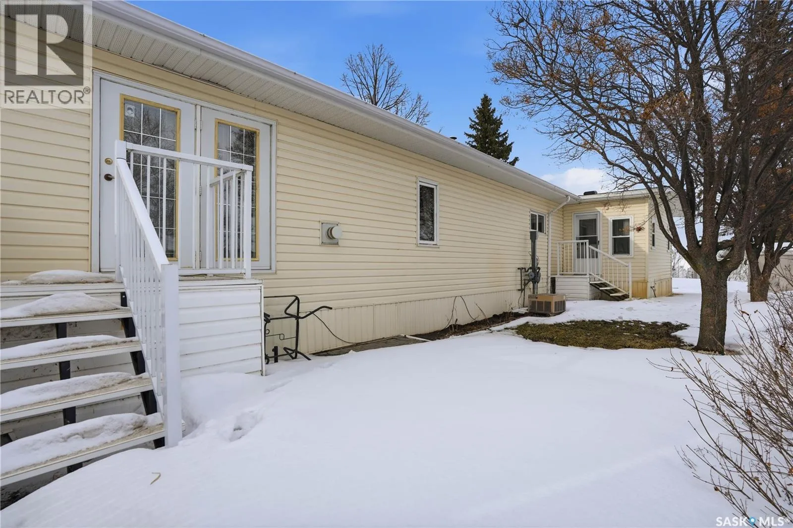 Welcome to a home filled with care, pride, and wonderful memories. Lovingly owned and enjoyed for decades, this original owner property in the community of Coppersands offers a warm and inviting place to call home. Situated on a spacious, fully fenced lot, the outdoor space is truly special. Fully landscaped yard has been beautifully maintained with underground sprinklers, a maintenance free PVC deck and two garden sheds for storage. Front yard offers an abundance of perennials returning year after year. Garden doors from the kitchen lead to an interlocking brick patio areaâperfect for relaxing or enjoying time outdoors. A PVC front entry deck welcomes you at the front door, while an asphalt double driveway provides convenient off-street parking for two and easy access to the home. Inside, the home has been thoughtfully expanded with three additions over the years, creating comfortable and functional living spaces. The bright family room addition provides welcoming front entry access, while the second added a storage room plus expanded the bathroom to include a relaxing jetted tub and second vanity alongside the original tub and shower. The third, a large den along the back of the home and features built-in cabinetry and direct access to the PVC landing leading to the side yard and patio. The kitchen offers beautiful oak cabinetry, including a built-in china cabinet and plenty of cupboard space. The living room provides a cozy atmosphere with a corner gas fireplace complete with mantle, while the spacious primary bedroom offers a comfortable retreat at the end of the day. Updates over the years include peaked roof, vinyl windows, drywall interior finishing, updated kitchen cupboards and counters, newer flooring, central vacuum, and shingles. Pad rental is $675/month and includes water, garbage pickup, and street snow removal. Come experience the warmth and pride of ownership this home offersâyou may just find it feels like home the moment you arrive. (id:27476)