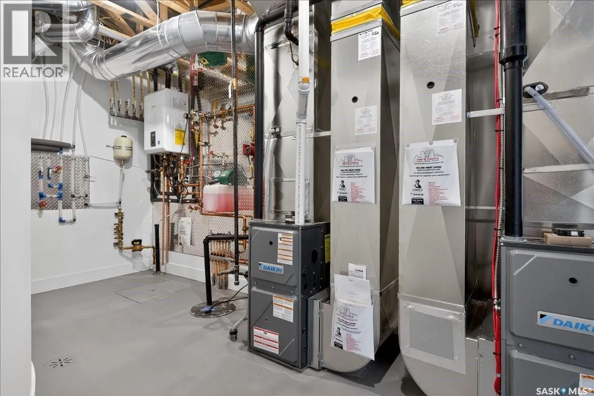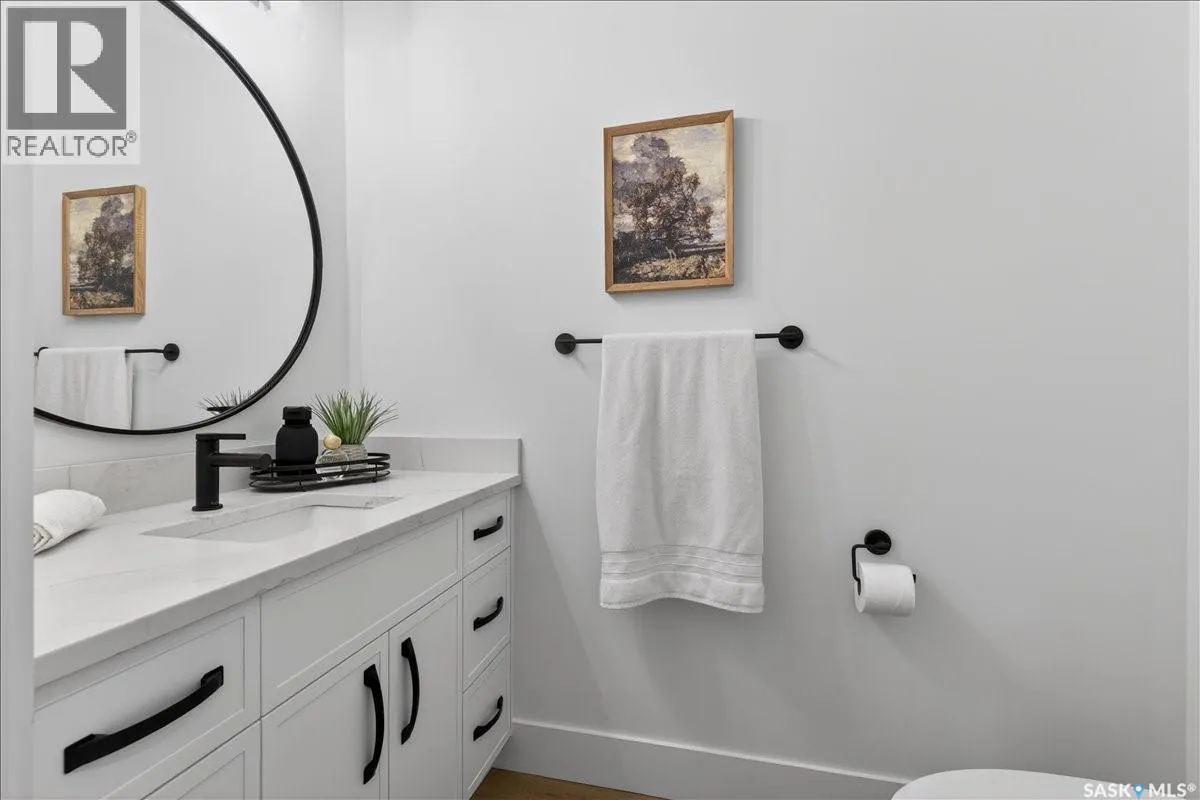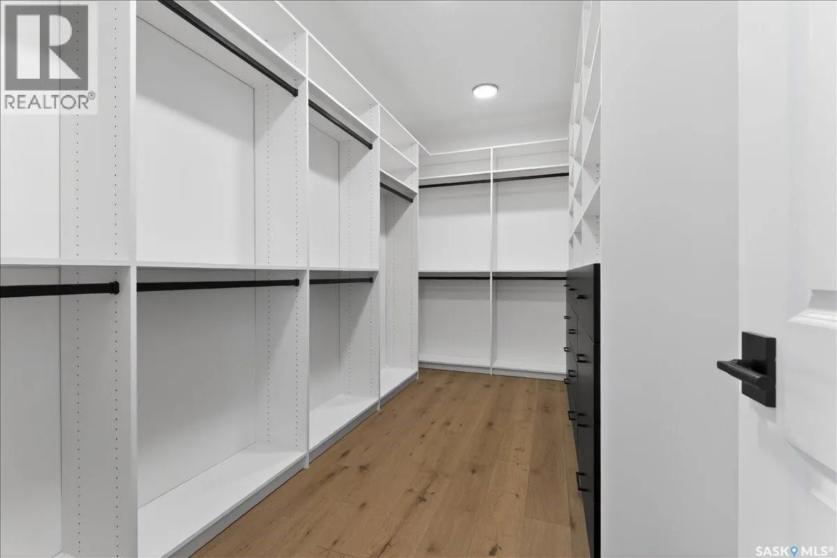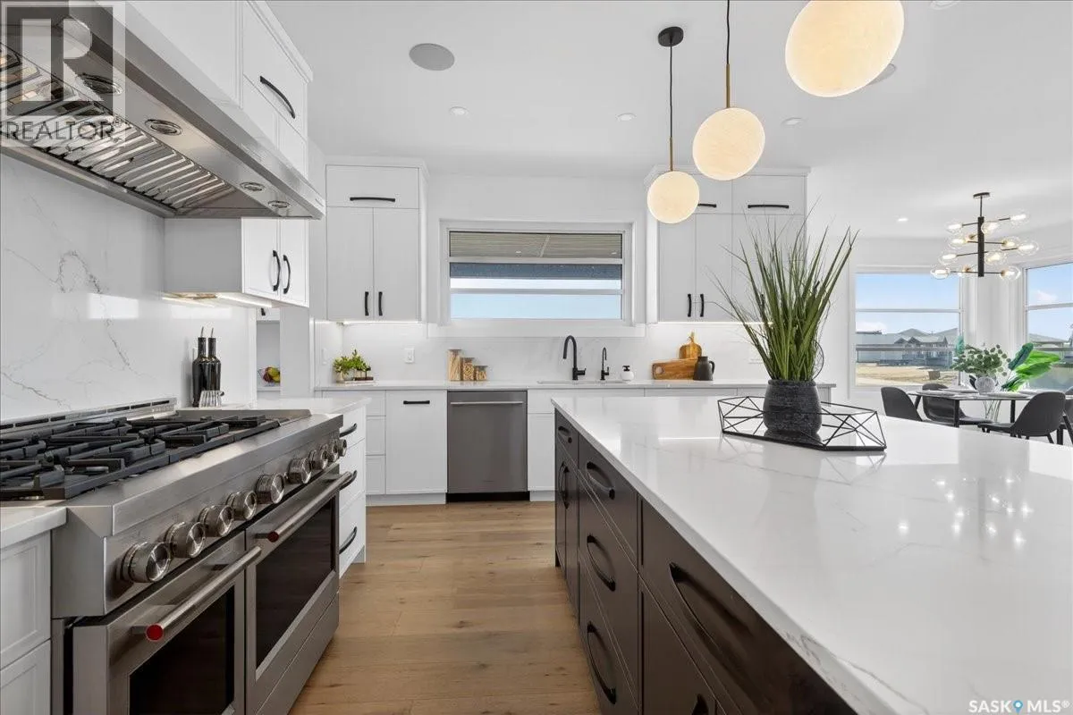 Spruce Creek Estates Experience true luxury living in this one-of-a-kind custom-built estate offering 5,140 sq ft of finished space, set against serene country views just 3 minutes from Pilot Butte and 10 minutes from Regina. Showcasing striking architecture with curved walls and high-end custom details, this home is a true showstopper. The grand custom three-story spiral staircase is the focal highlight, introducing the quality craftsmanship throughout. Featuring 6 bedrooms and 6 bathrooms, the home is finished with 8â interior doors, designer lighting, extensive custom cabinetry, quartz countertops with slab backsplashes, and oak hardwood flooring. The main floor impresses with 20â ceilings in the great room, a floor-to-ceiling surround gas fireplace, large windows (window treatments to be installed), a den, and dining area with access to a covered deck. The extensive chefâs kitchen includes an 8â quartz island, ceiling-height cabinetry, double fridge/freezer, 48â gas range, and built in coffee station, plus a back secondary spice kitchen. A pantry, mudroom, and access to the massive heated 4-car garage with 13â ceilings, in-floor heat, built in cabinetry and sink. Upstairs features a curved mezzanine, flex space, and 4 bedrooms, each with its own ensuite and walk-in closet. The primary suite offers a sitting area and spa-inspired ensuite with freestanding tub, custom shower, and a fully built-out walk-in closet. The fully developed walkout basement includes in-floor heating, 2 bedrooms, a rec room with gas fireplace, and an entertaining bar with island and wine storage, plus access to a covered concrete patio. This spacious lot offer options for a pool or a backyard oasis of your design. Additional features include dual HE furnaces & A/C units, zoned heating, built-in speakers, RO system, water softener, 200 amp panel, alarm system. Progressive New Home Warranty. A remarkable home blending luxury, design, and lifestyle and lower property taxes! (id:27476)