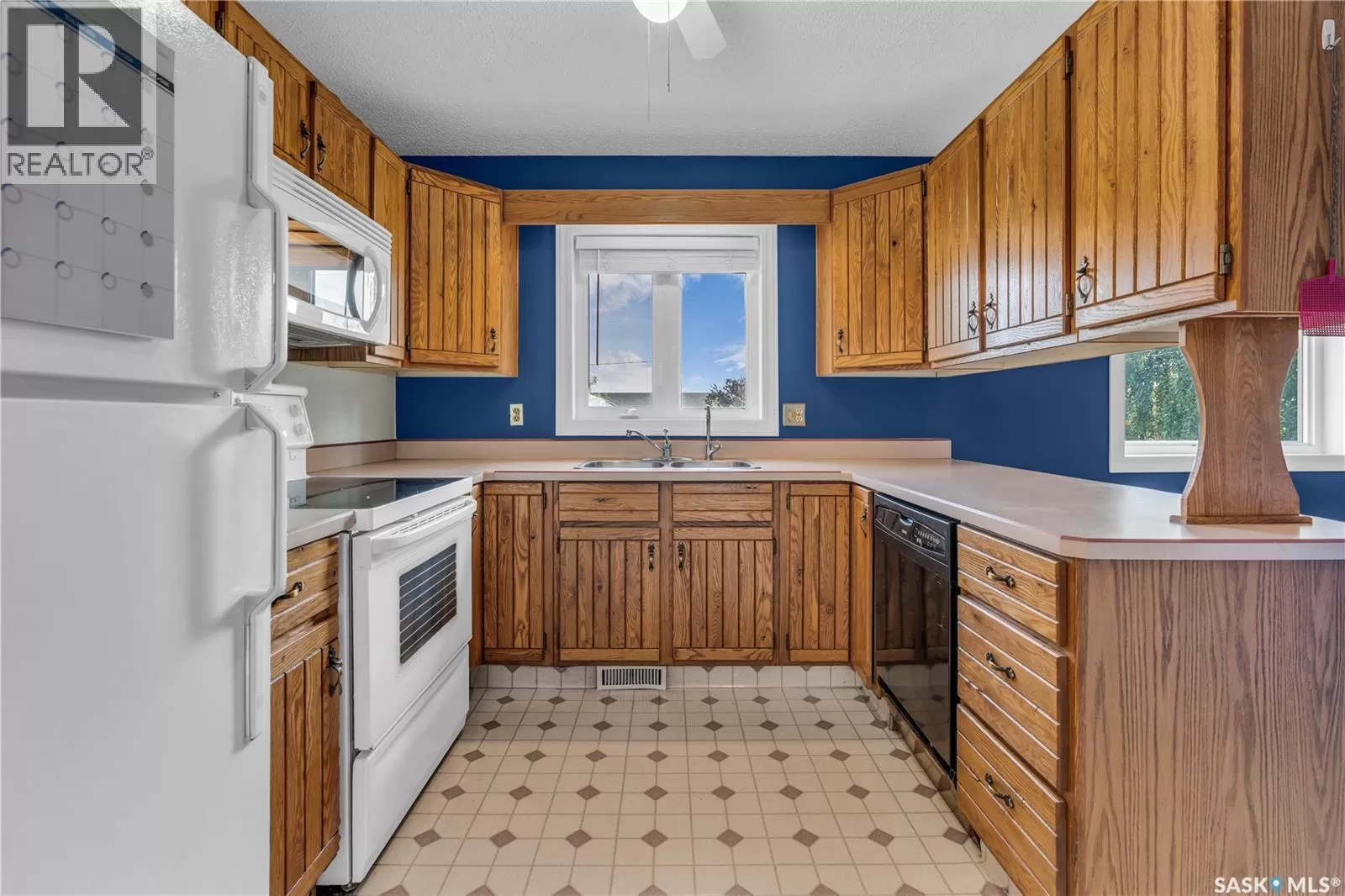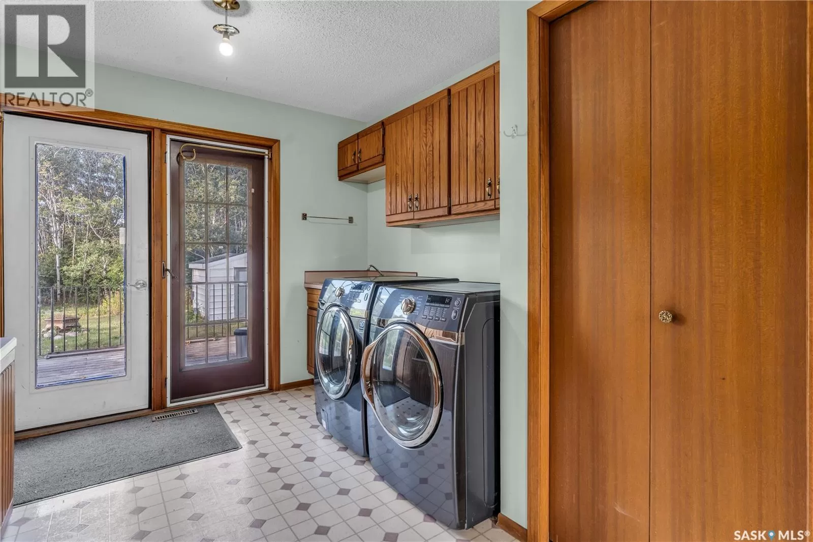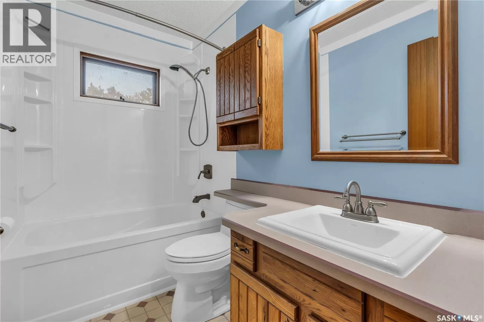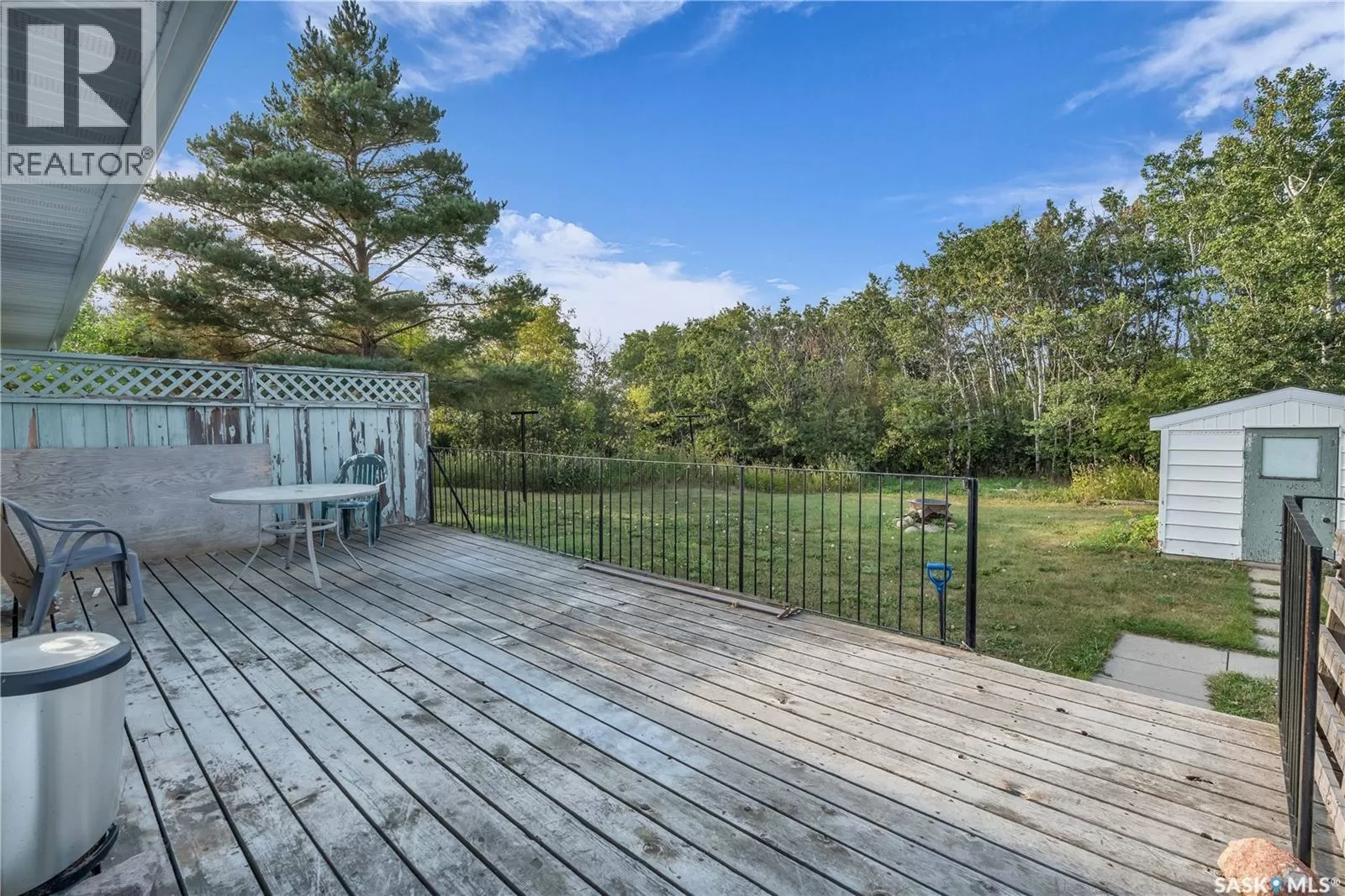 Charming Bungalow on Expansive Lot in the Village of Edenwold Discover peaceful country living with the convenience of nearby amenities in this well-kept 1,040 sq ft bungalow, nestled on seven 25â lots in the quiet Village of Edenwold. With 3 bedrooms, 2 bathrooms, and room to grow, this home offers space, comfort, and a true sense of privacy. Step onto the large exterior deck and enter into a spacious mudroom/laundry areaâperfect for busy families or outdoor enthusiasts. Just off this entry, youâll find a functional kitchen with solid wood cabinetry, full appliance package, and a dedicated dining room ideal for family meals or entertaining. The bright and spacious living room features a large south-facing picture window, flooding the space with natural light. Down the hall are two bedrooms and a beautifully updated 4-piece bathroom. Downstairs, the finished lower level offers even more versatility, with a rec room that could easily serve as a 4th bedroom, complete with an oversized walk-in closet/playroom combo. Youâll also find the third bedroom, a 3-piece bathroom, and ample storage space to keep everything organized. Outside is where this property truly shinesâset on a massive lot surrounded by mature trees that act as a natural privacy fence, creating your own private oasis. A 24' x 30' garage provides plenty of space for vehicles, tools, or hobbies. Wildlife sightings are common here, adding to the serene charm of this unique property. Additional features include fiberglass shingles on both the house and garage, some upgraded vinyl windows, and a reliable town water supply. This is a rare opportunity to own a home with both character and room to grow in a welcoming rural community. Come experience all that Edenwold has to offer! (id:27476)