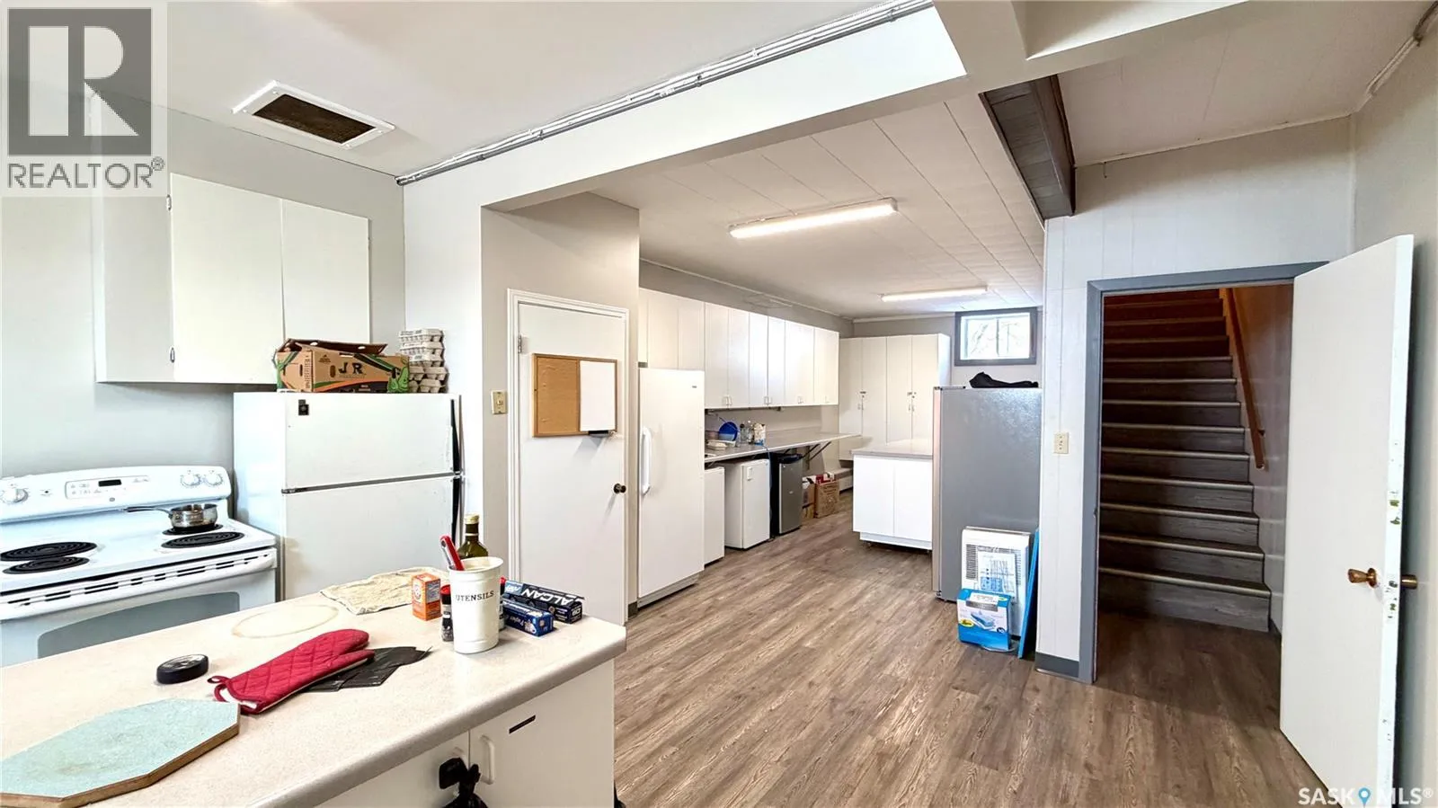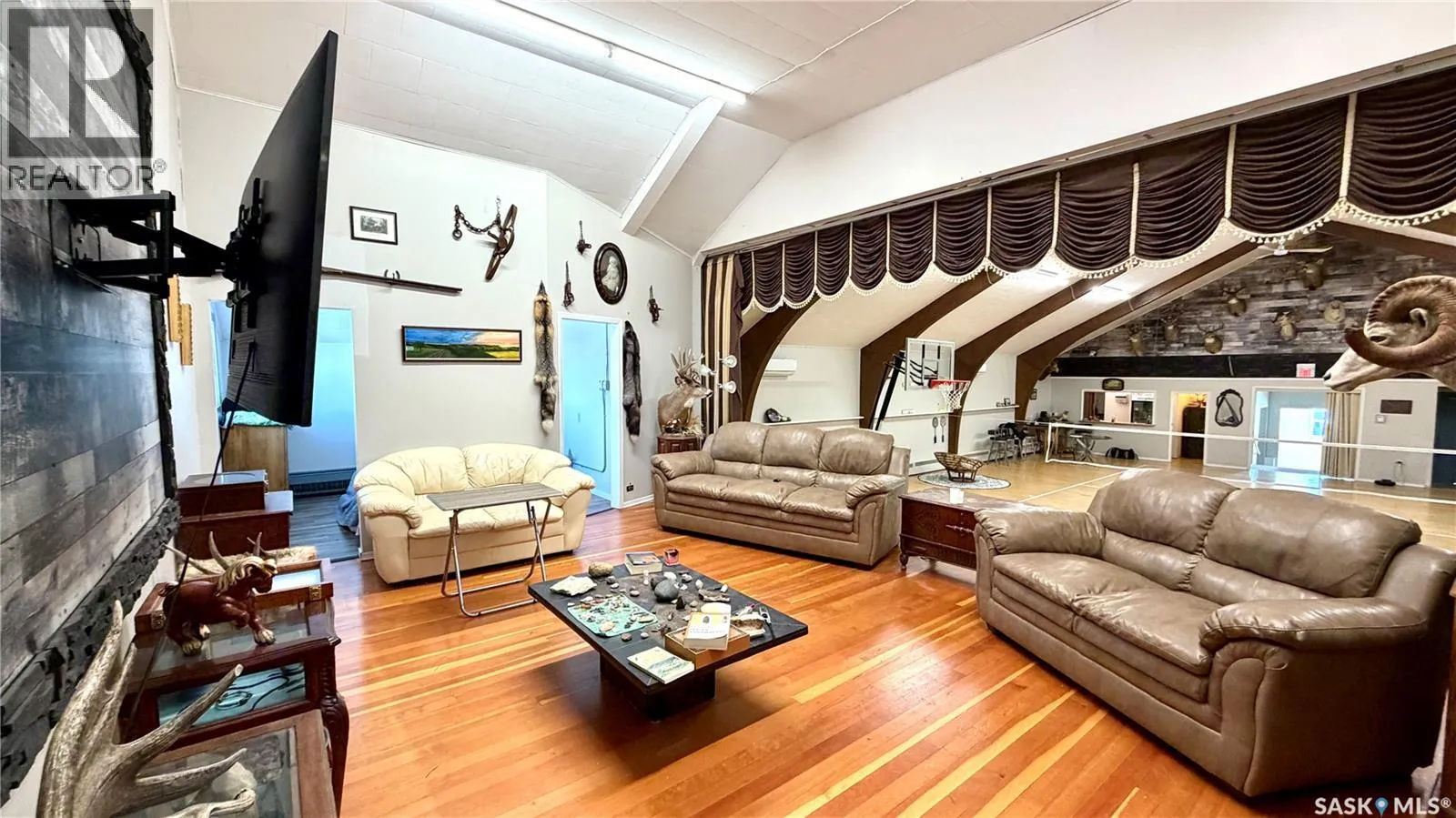 143 ABERDEEN ST, ELBOW, SASKATCHEWAN HIGH-POTENTIAL INCOME PROPERTY in the resort community of Elbow, just minutes from LAKE DIEFENBAKER. Situated on two titled lots totaling approximately 0.27 acres, this recently retrofitted 3,376 sq ft commercial-zoned building offers MULTIPLE REVENUE POSSIBILITIES including short-term rentals, staff housing, retreat accommodations, or a mixed residential/commercial operation. The renovated lower level is ideally configured for rental use, featuring FIVE SPACIOUS BEDROOMS, a shared TV/lounge area, dining space, and a large working kitchen with updated appliances , a layout well suited for GROUP BOOKINGS, worker housing, or extended-stay guests. Two bathrooms serve this level, including a 3-piece with shower and a separate 2-piece. Each bedroom includes fresh air returns, electrical has been fully updated, and the boiler system is well maintained and regularly serviced for dependable operation. The main floor offers a LARGE GYM OR MULTI-PURPOSE SPACE that could generate additional income as event space, studio, or common area for guests. A raised stage has been set up as a living area with couches and large television, with an additional bedroom off the stage, plus a third 3-piece bathroom. A working elevator provides FULL WHEELCHAIR ACCESSIBILITY, expanding potential clientele and use options. Air conditioning, onsite parking, and included equipment and improvements allow for immediate use with minimal startup costs. This property is WELL POSITIONED FOR AIRBNB or SHORT-TERM RENTAL operation, BOUTIQUE LODGING, HUNTING AND FISHING GROUPS, SEASONAL TOURISM, WORKFORCE HOUSING, or a live/work investment strategy. Elbowâs STRONG TOURISM BASE, including boating, fishing, golf, and fall hunting , creates year-round and seasonal demand for accommodation. Seller will consider vendor financing for a two-year term and may also consider a suitable trade, offering additional flexibility for investors. (id:27476)