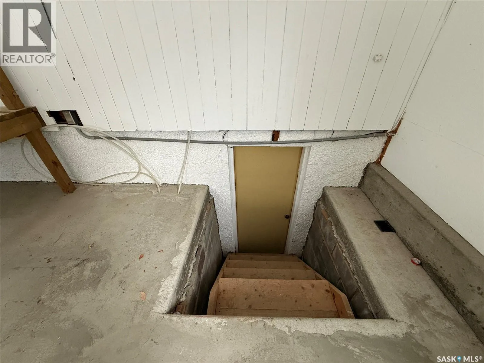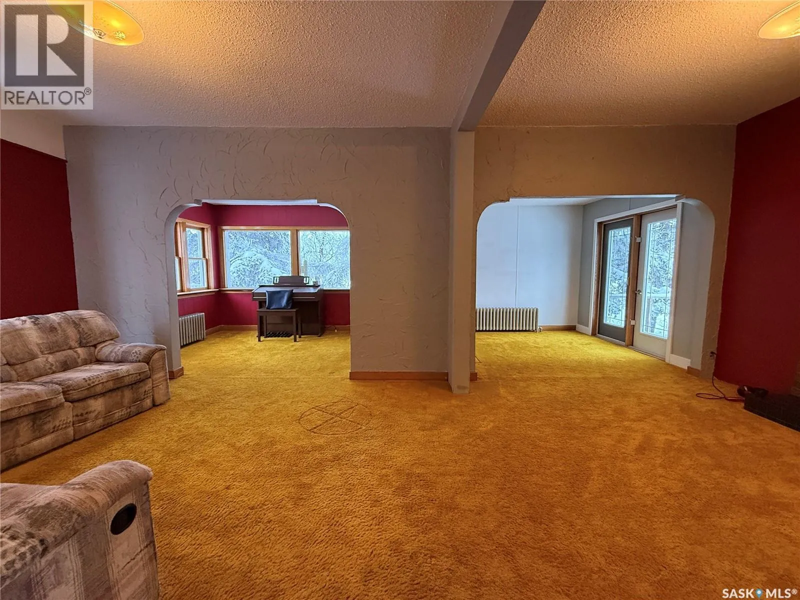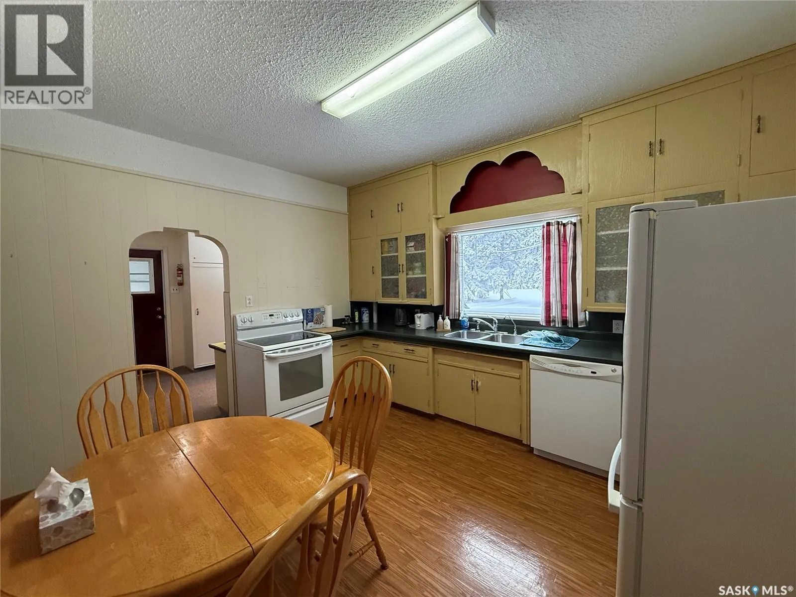 Beautiful character home situated on an expansive 100 x 260 ft lot in the charming Village of Englefeld, approximately 25 minutes from the BHP Mine and the City of Humboldt. Originally built in 1925, this home was thoughtfully relocated from a farm site and placed on a full basement constructed in 1976, with an attached garage added in 2009. The home offers a functional and inviting layout, featuring direct access from the attached, insulated garage into a spacious laundry/mudroom. A standout feature is the main-floor primary bedroom, complete with a walk-in closet and convenient access to the main bathroom. The bright kitchen offers an abundance of cabinetry and comes equipped with a fridge, stove, and built-in dishwasher. The large living room is filled with natural light and showcases a cozy wood-burning fireplace. Adjacent to the living room is a versatile great room and an additional dining area with garden doors leading to a deck overlooking the beautifully treed backyard. The second level includes four bedrooms plus a den, offering excellent space for family living or home office needs. The basement features another wood-burning fireplace, a toilet, and is already plumbed for a shower and sink, with the remaining space open for future development. A separate access from the basement to the garage provides excellent potential for a future rental or in-law suite. Outside, youâll appreciate the park-like yard with mature trees, garden space, and plenty of green space. A charming barn-style shed at the rear of the property provides additional storage or could be transformed into a playhouse. Homes offering this level of character, space, and lot size rarely come available at this price point. Immediate possession availableâcall today to book your private showing. (id:27476)