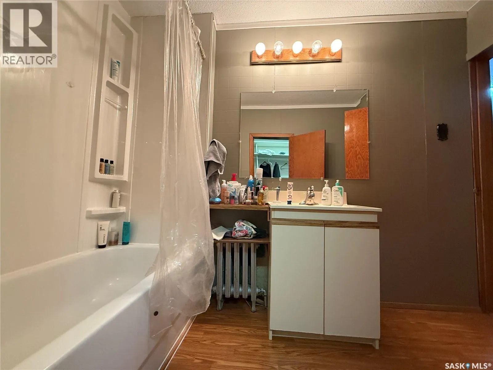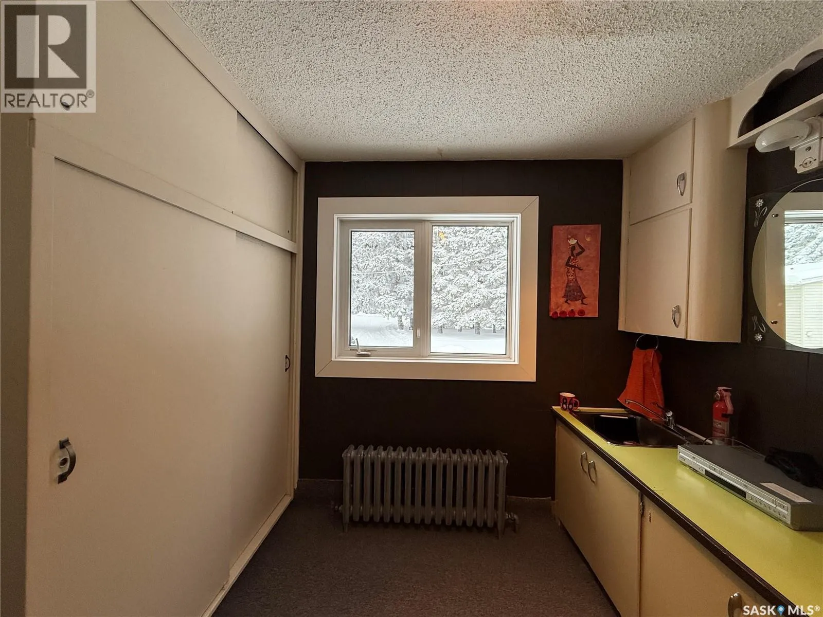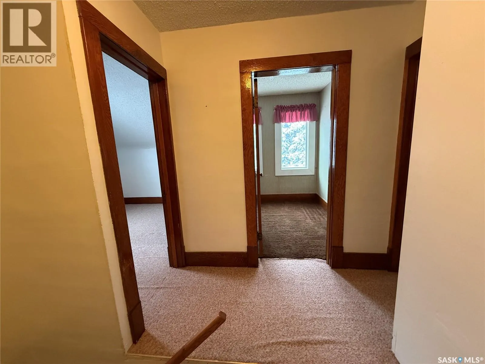 Beautiful character home situated on an expansive 100 x 260 ft lot in the charming Village of Englefeld, approximately 25 minutes from the BHP Mine and the City of Humboldt. Originally built in 1925, this home was thoughtfully relocated from a farm site and placed on a full basement constructed in 1976, with an attached garage added in 2009. The home offers a functional and inviting layout, featuring direct access from the attached, insulated garage into a spacious laundry/mudroom. A standout feature is the main-floor primary bedroom, complete with a walk-in closet and convenient access to the main bathroom. The bright kitchen offers an abundance of cabinetry and comes equipped with a fridge, stove, and built-in dishwasher. The large living room is filled with natural light and showcases a cozy wood-burning fireplace. Adjacent to the living room is a versatile great room and an additional dining area with garden doors leading to a deck overlooking the beautifully treed backyard. The second level includes four bedrooms plus a den, offering excellent space for family living or home office needs. The basement features another wood-burning fireplace, a toilet, and is already plumbed for a shower and sink, with the remaining space open for future development. A separate access from the basement to the garage provides excellent potential for a future rental or in-law suite. Outside, youâll appreciate the park-like yard with mature trees, garden space, and plenty of green space. A charming barn-style shed at the rear of the property provides additional storage or could be transformed into a playhouse. Homes offering this level of character, space, and lot size rarely come available at this price point. Immediate possession availableâcall today to book your private showing. (id:27476)
