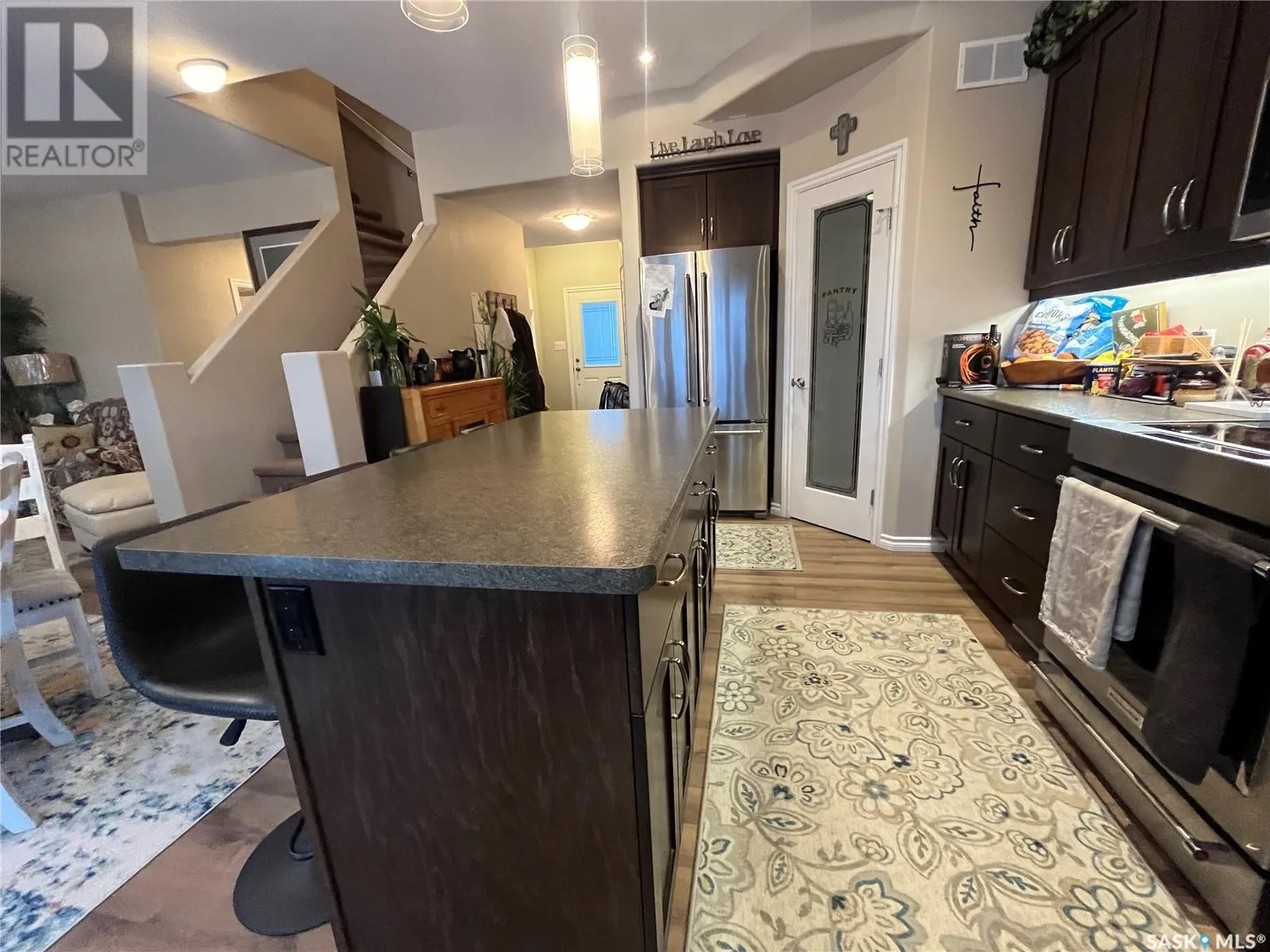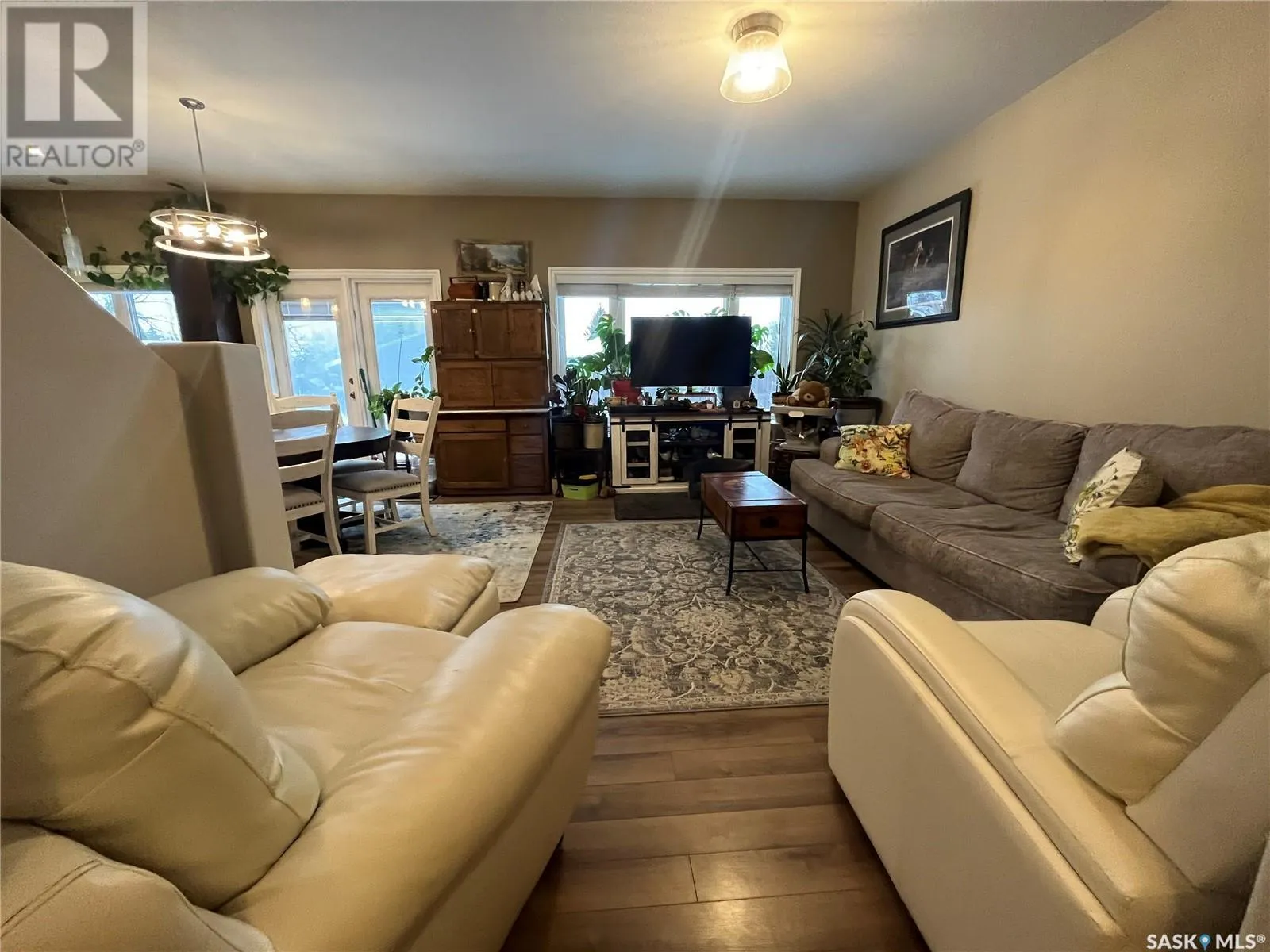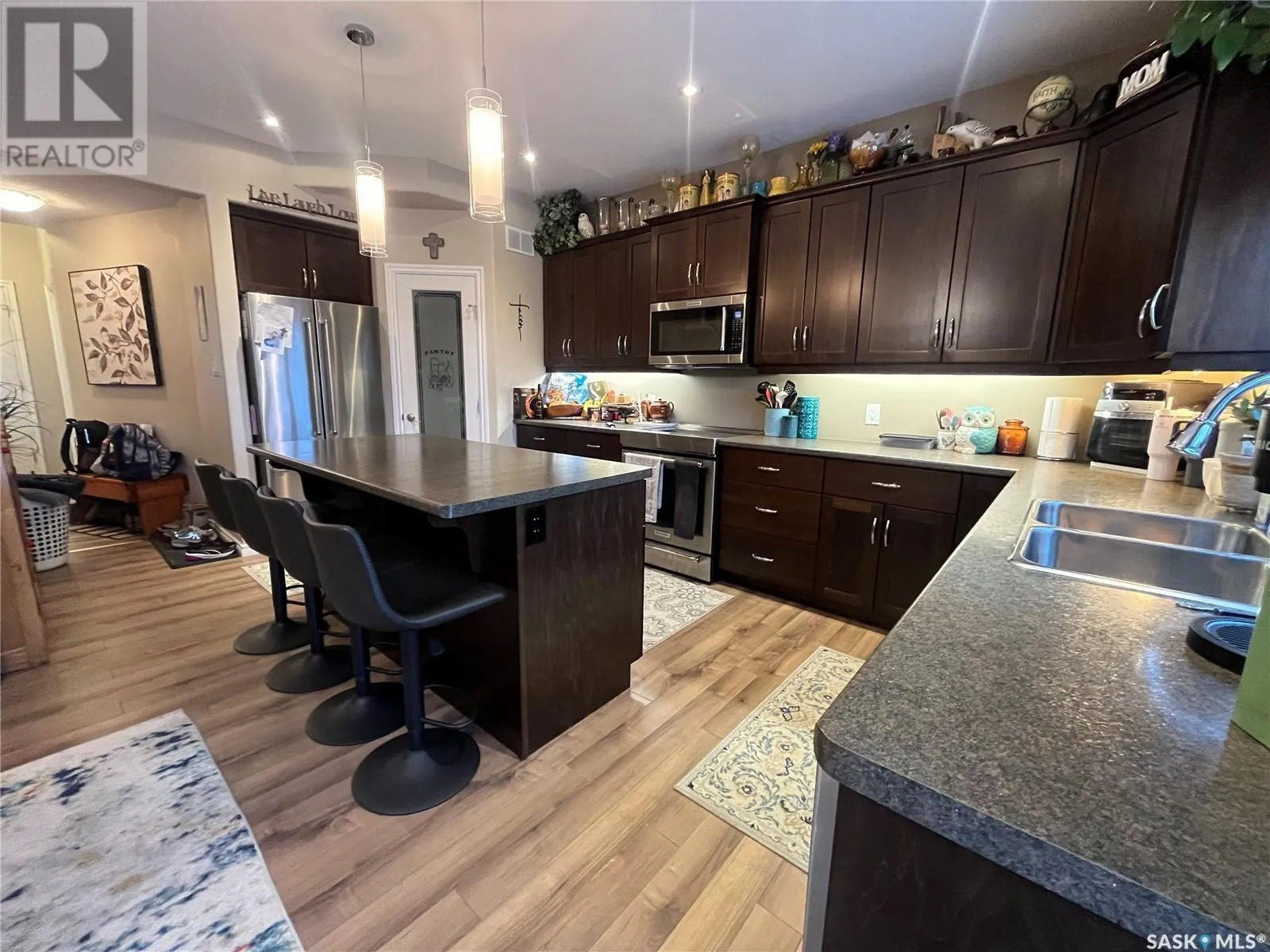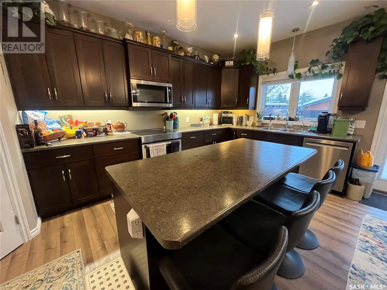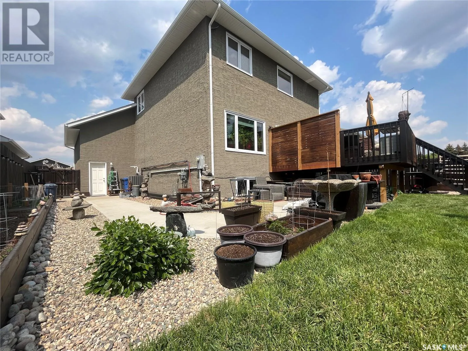 NEW to the Esterhazy housing market is the complete package for any buyer looking for their forever family home. Prime location nestled in the family orientated North West side of town at 195 5TH Avenue is this stunning turn key 2 Storey home offering 1863 square feet of living space with 5 bedrooms and 4 bathrooms plus a fully finished basement . The impressive layout of the main floor offers the perfect blend of modern finishes and functional design. Upon entry through the front foyer that leads to the open concept kitchen/dining/living area there is an adjacent bedroom/office. The dreamy kitchen has a large island which will be a focal point during meal preparation and entertaining, tons of counter and storage space with a pantry, all new Kitchen Aid stainless steel appliances including fridge, induction stove and dishwasher. Enjoy meals and relax in the open dining and living room. Main floor laundry has been updated with a Pet Pro washer and dryer combo . A 2 piece bathroom completes the main floor. The 2nd level of the home offer 3 bedrooms including an incredible master bedroom with a 4 piece ensuite and walk in closet with new shelving and a 4 piece master bathroom. The fully finished basement has a large recreation area with new built in shelving along the west wall, a large bedroom, bathroom and utility area. Gorgeous private back yard haven with a newly constructed 16X16 deck with access off the kitchen including privacy walls, raised garden beds, lush lawn with underground sprinklers. Double attached garage and concrete driveway complete this value packed property . Call today and start off 2025 in your dream home. (id:27476)