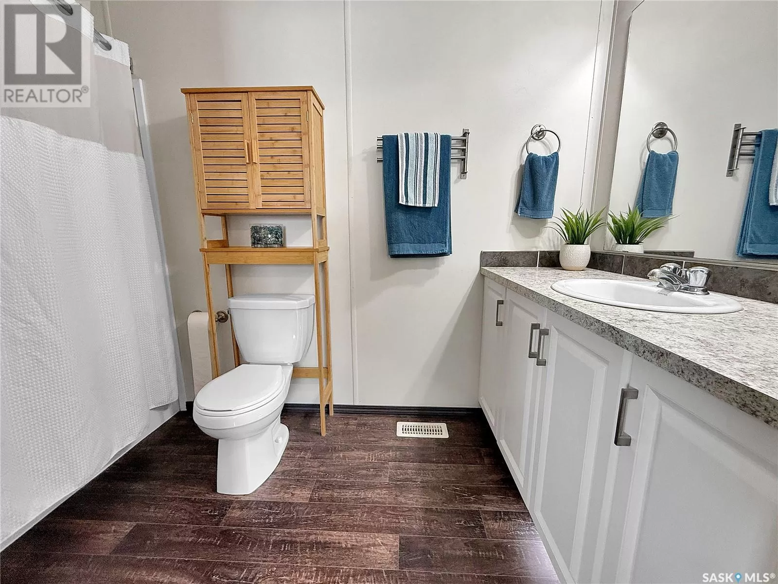 Little Red is in your hood & on the market for new owners! This quality built show stopper has a new beautiful outdoor space, boasting privacy just steps from the daycare, elementary school, slurpy supplier around the corner, car wash and just a hot skip and a jump from Esterhazy's Main Street, dog park & more. Steps inside reveal an open concept vaulted main living/kitchen & dining room confirming 201 Margaret Ct is all business at the front and party at the rear. Tons of natural light, monochromatic on trend tones, plenty of cupboard space & storage for your mismatched Tupperware lids all add to this homes appeal. 3 large bedrooms a full 4 piece bath and ensuite give this home the complete package deal vibe. An added entrance with washer/dryer & utility room access give a good spot to stash all the Costco hauls or a quick glide out to the matching garden shed tucked on the property boundary. Don't delay & book your viewing and call SE SK your place to stay-where potash, wheat & recreation meet! (id:27476)