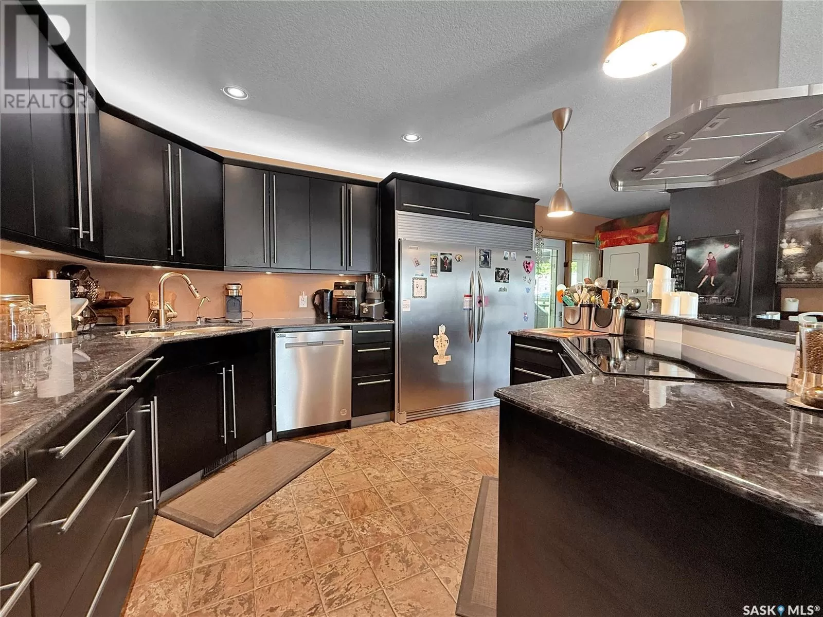 If you're looking for an updated classy home on a XL lot, Stanley st has the spot! This home had a 2008 renovation outside, in, top to bottom: mechanical, electrical and an on pile addition for extra main floor sq ftg! 540 Stanleys updates include but are not limited to pvc decks, stucco, car port, new electrical mast/panel & wirings, triple pane windows, shingles (roof line), custom front door & back French doors as well as a classic sunroom. From entry to exit no penny was spared with diamond tough linoleum though out the mainfloor, pot lights, custom cabinetry with designer pulls, standup side-by-side fridge and freezer as well as main floor laundry. 2 main floor bedrooms, a 4 pc bathroom, back covered deck all parked on a double lot give this home all the space and room to grow with an undeveloped concrete basement (partial basement). If you're after a cozy space that's move in and just ready to live in try your luck at 540 Stanley st. in Esterhazy's SE Sask-where potash, wheat & prairie meet. **House is labeled as 546 (as provided previously by the Town to homeowners). (id:27476)