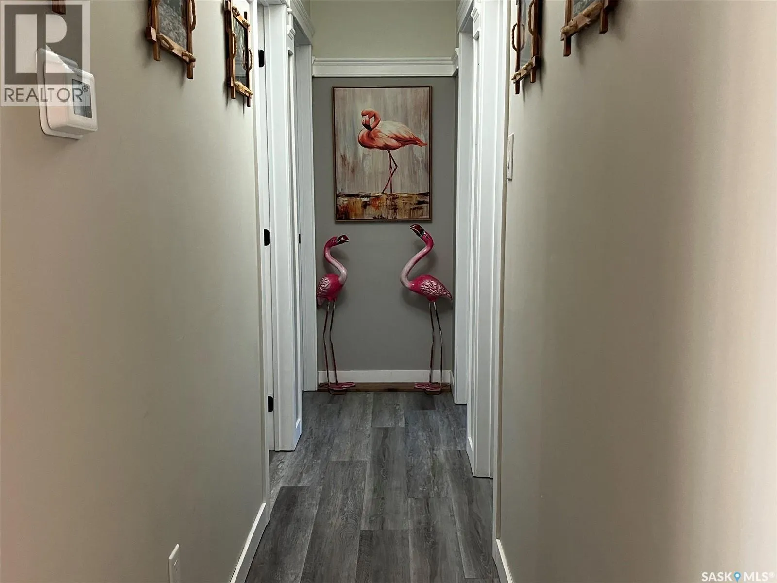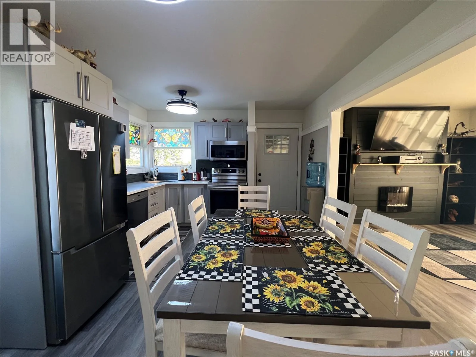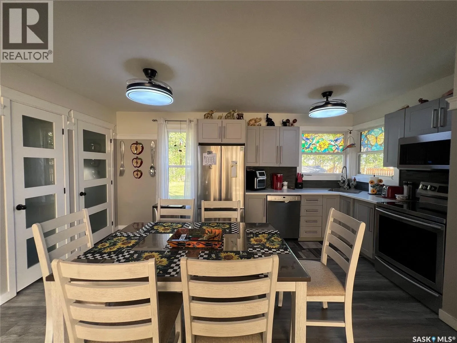 This property just keeps on getting better & it's quite a package! Available on the market is 401 Short Street in Esterhazy. Here you will find a 960 sq ft home which was fully renovated and move-in ready! A full 2 car attached garage is fully gyproced and insulated with a new overhead NG heater and upper storage shelving. An entrance to the home from the garage is a convenience you can't live without! Updated kitchen cabintry with new fridge, WIFI chef stove & BI microwave range hood fan. This open concept floor plan where the kitchen encompasses the dining and living room areas. You will adore the maximized closet and linen space. Recently renovated full 4 pc bathroom with linen closet. 3 bedrooms on the main floor feature 2 smaller bedrooms and a grand primary bedroom with double closet doors and closet organizer. Complete with custom window coverings and all rooms are sound proofed. This home presents itself well and it is crisp and clean for your comfort. All windows are Peter Kohler PVC windows,Samsung front load washer/dryer. In the livingroom you will be more than cozy with an electric fireplace with mantle. Basement has been entirely gone through, sealing the perimiter with liquid rubber and taping to prevent any possible seepage. Sump pumps have been redone and plumbed to the exterior and the basement floor has been resurfaced with dry core/plywood sheeting. Basement is fully insulated with gyproc.New 100 amp electrical panel has been installed and the home is complete with a spare water heater when it comes time to change it out.Pex water lines have been installed.Furnace was recently updated with digital furnace programming. In the backyard, the Lot is completely fenced with 2 entrance gates and a large gate at the back corner.Propertry features a deck/patio area with privacy panels, trees have been trimmed so your list of things to do is minimal Shingles have been recently changed as well. 2 storage shed come with the sale of the property.It's a beauty! (id:27476)