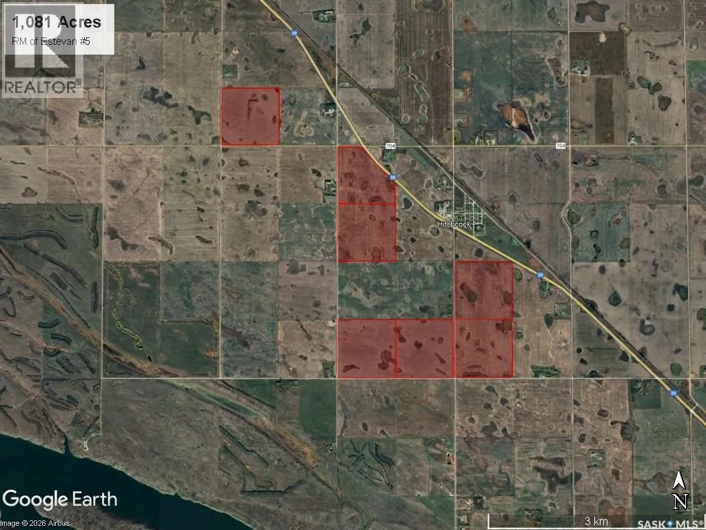 For Sale by Tender â 1,080.89 Acres of High-Quality Farmland in southern Saskatchewan located northwest of the city of Estevan near Hitchcock, SK in the RM of Estevan #5. The land features excellent access, including Highway #39 frontage, with the balance easily accessible just south of the highway. Farmed in three half sections and one single quarter all in close proximity. SAMA reports 1,006 cultivated acres* and a soil final rating weighted average of 51.24*. The soil type is predominantly Weyburn Loam with some Estevan Clay Loam. Sask Crop Insurance classifications include two âHâ quarters, three âJâ quarters, and two âKâ quarters. The successful purchaser to begin farming the land in 2026. OFFER TENDERING PROCESS: Offers to purchase to be submitted/tendered in writing by 12:00PM on Thursday March 5, 2026 All offers to purchase will be presented at the same time to the Sellers for their consideration after 12:00PM on Thursday March 5, 2026. The Seller asks offers to be left open for five days. Offers to purchase will be considered on the entire parcel as well as parts thereof. This parcel could sell for above, at or below the asking price. Highest or any offer not necessarily accepted. ASKING PRICE BREAKDOWN: $4,100,000.00; $3,793.17/Titled Acre; $4,075/SAMA Cultivated Acre*; 2.13 X Assessed Value*. The Seller is in the process of removing a parcel tie from the NW 22-3-9 W2 Ext 1 as only the 127.16 acre parcel south of the highway is included in the sale, closing for this parcel will be after the parcel tie is removed. *SAMA Details are an approximation only as the NW 22-3-9 W2 assessment and cultivated acres have been approximated to remove the parcel north of the highway that is not included. Buyer to do their own due diligence. Property boundary outlines are an approximation. As per the Sellerâs direction, all offers will be presented on 03/05/2026 12:00PM. (id:27476)