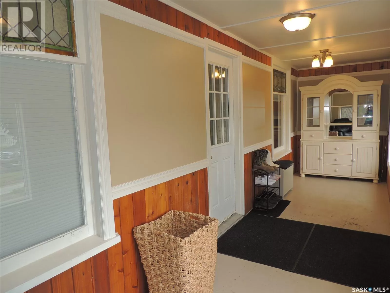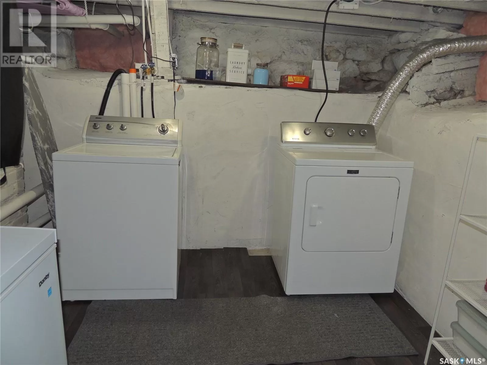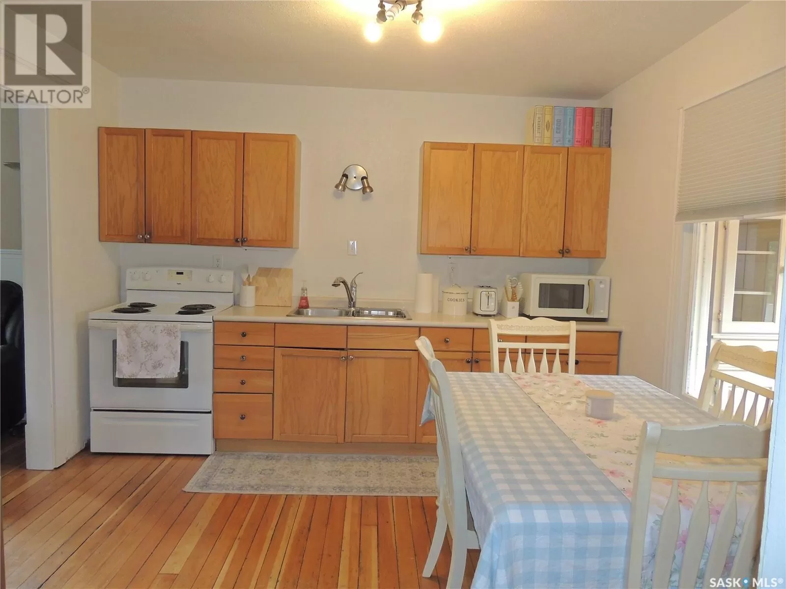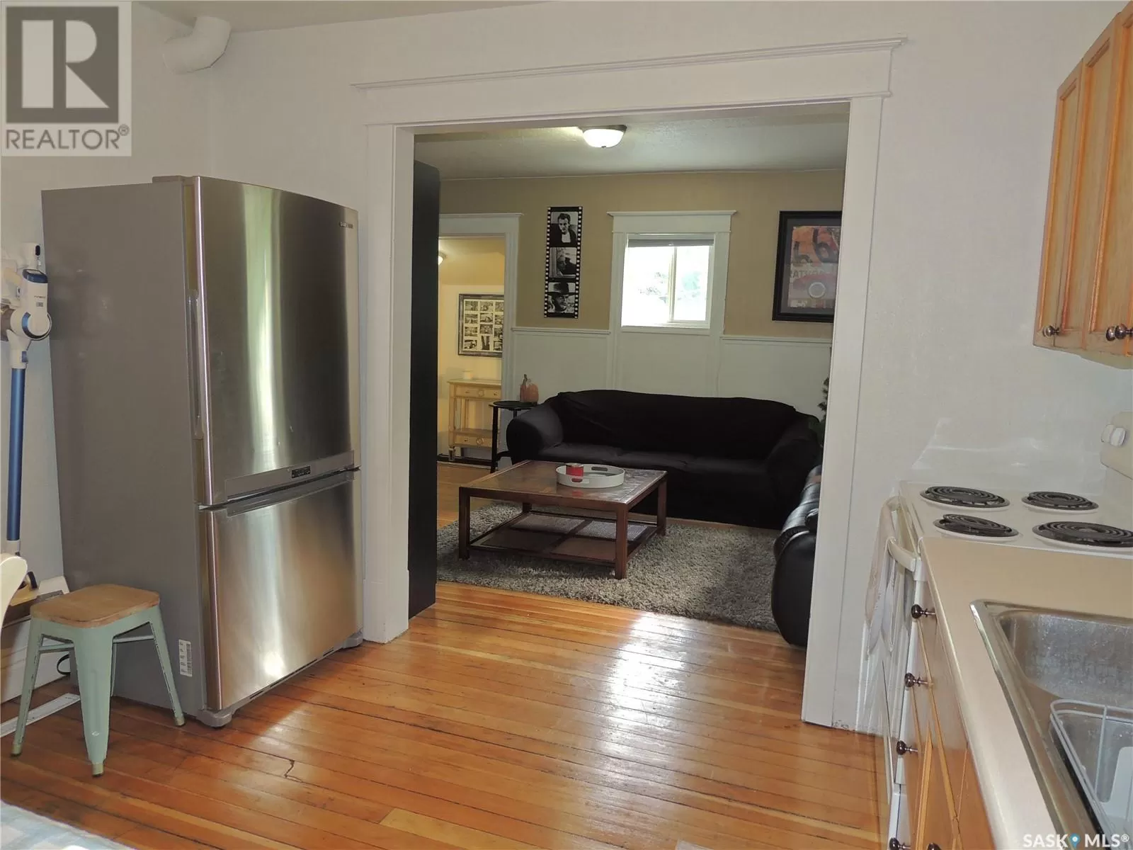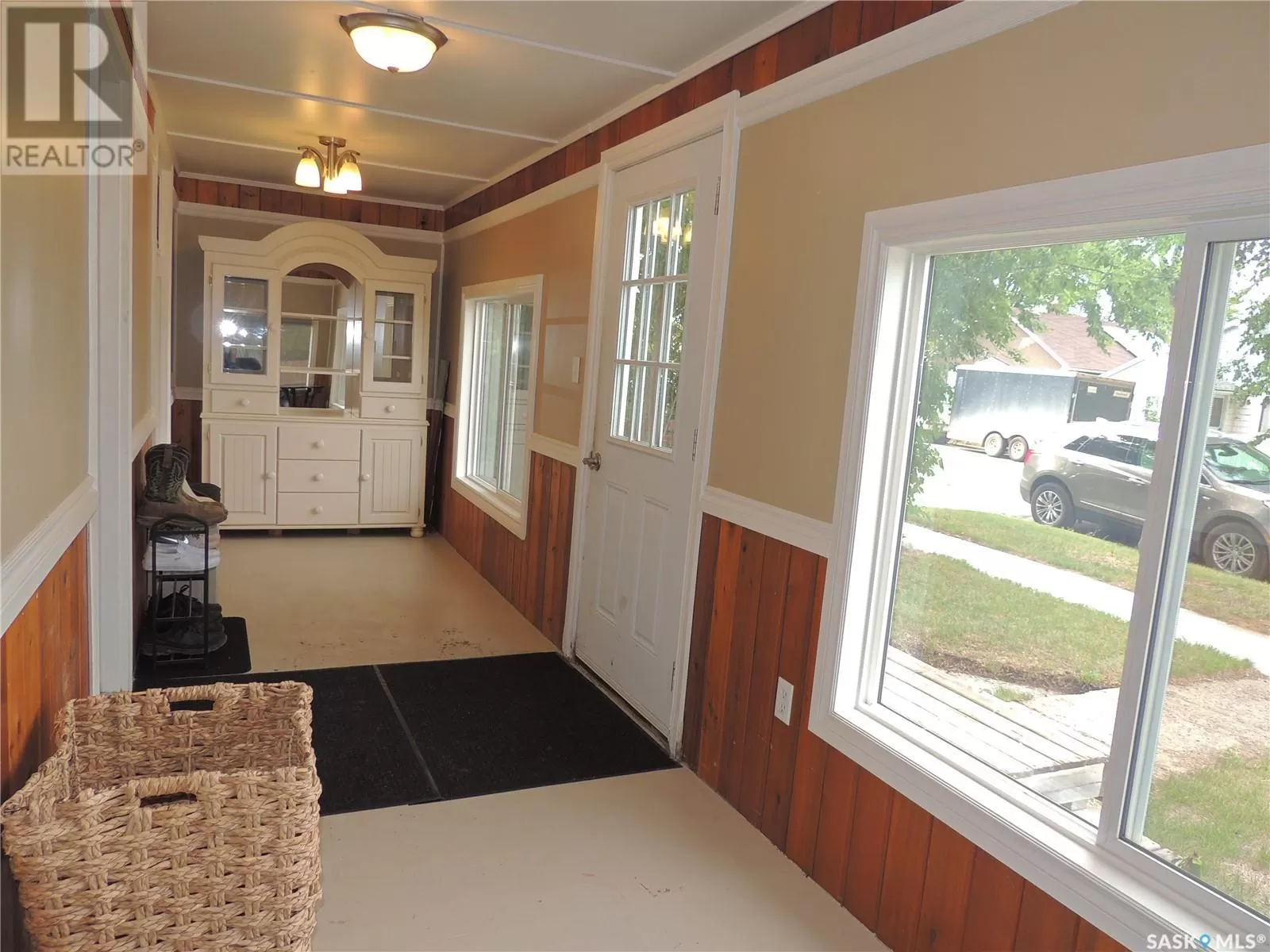 This home is full of character but still has many updates throughout the home. The front veranda is full of opening windows to let the breeze through on a beautiful Sask summer night. It has 2 original stained glass windows looking into the home. The kitchen has oak cabinets and is open to the rear living room. There is access off it to the back yard or directly into the basement. The main floor has 2 bedrooms and a 3 piece bathroom. The upstairs has an open loft area. The bedroom has a walk in closet and ensuite bathroom with original claw foot soaker tub. The basement is dry and great for storage and has the laundry area. The yard is well treed and has a single detached garage. The furnace was done in 2024, and the sewer line was done in 2025. (id:27476)