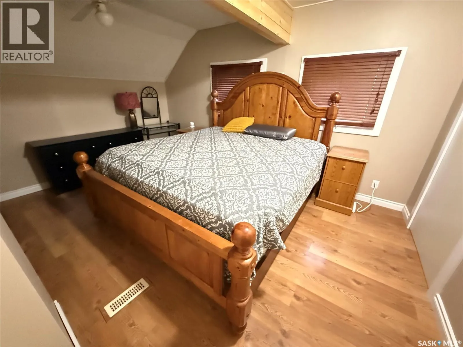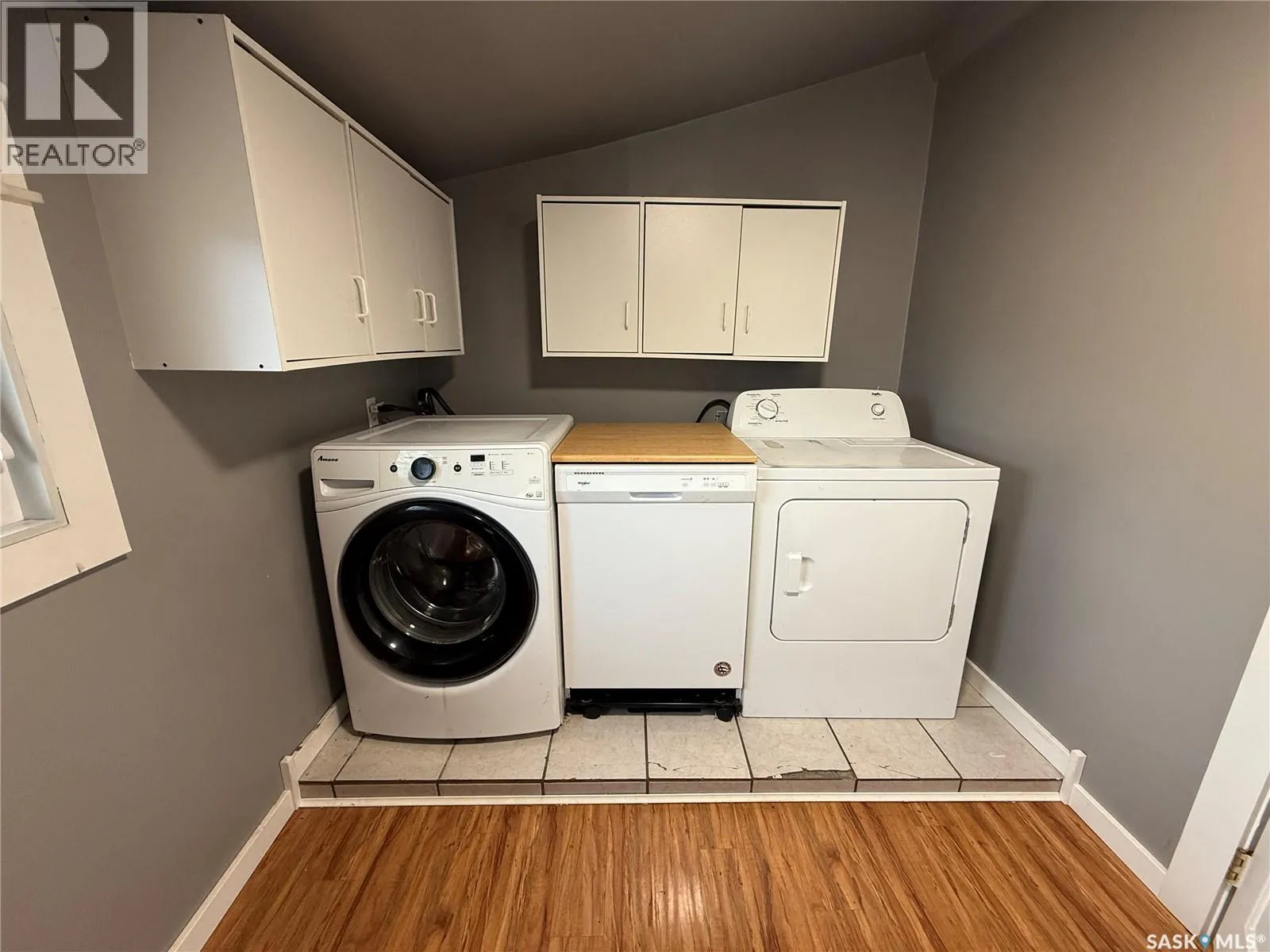 Super charming one and a half storey home in Estevan with a large fenced in deck and patio area perfect for summer enjoyment and entertainment. This home has a bright open kitchen and dining area that leads into a spacious laundry room with tons of room for additional storage. The living room is open to the four season sunroom which allows for extra space for the kids to play with direct access to the fenced in out door living space. The four piece bathroom completes the main. Upstairs there are two large bedrooms. The 32'x14 workshop is perfect for the handyman or hobbyist. (id:27476)