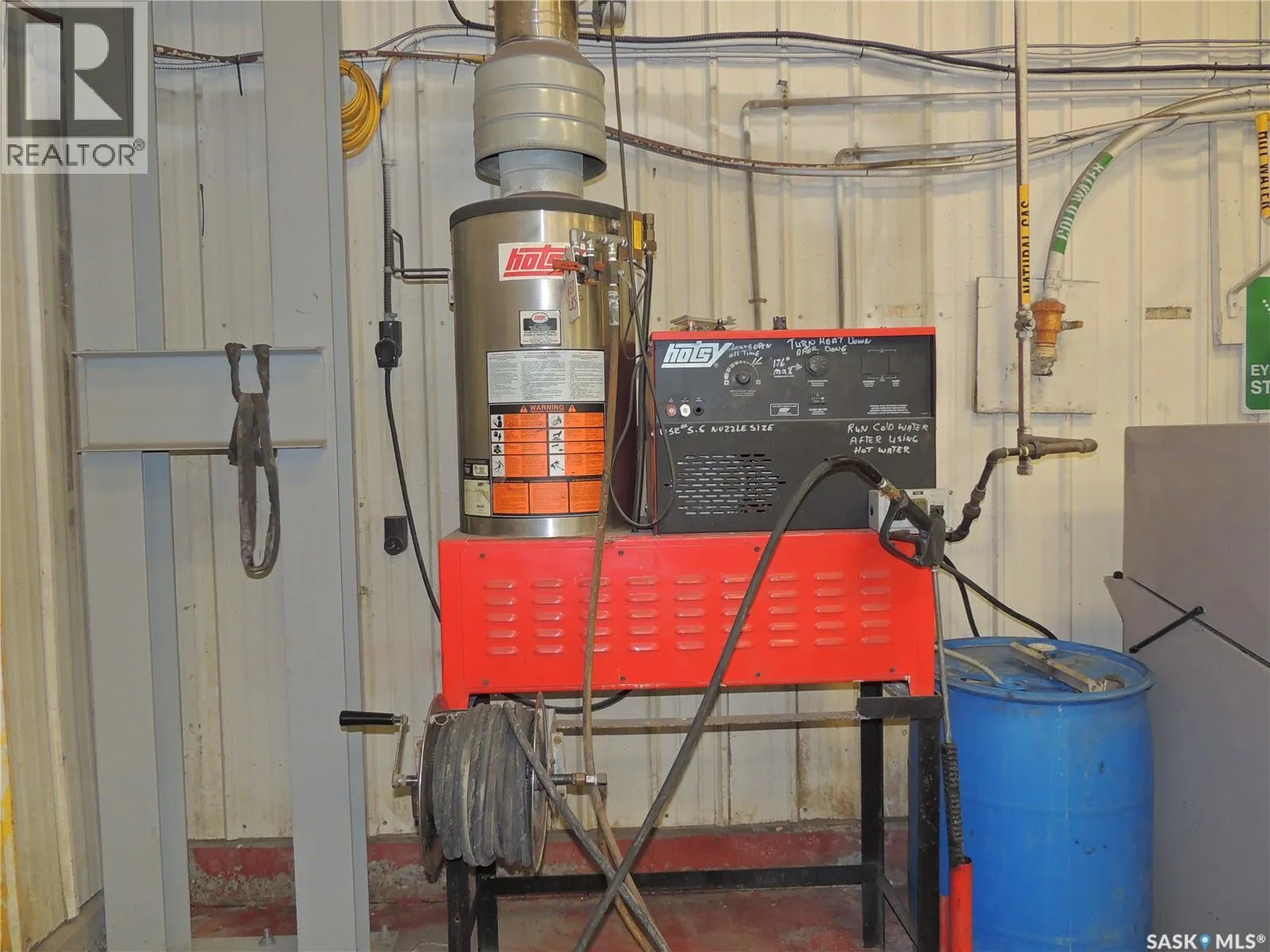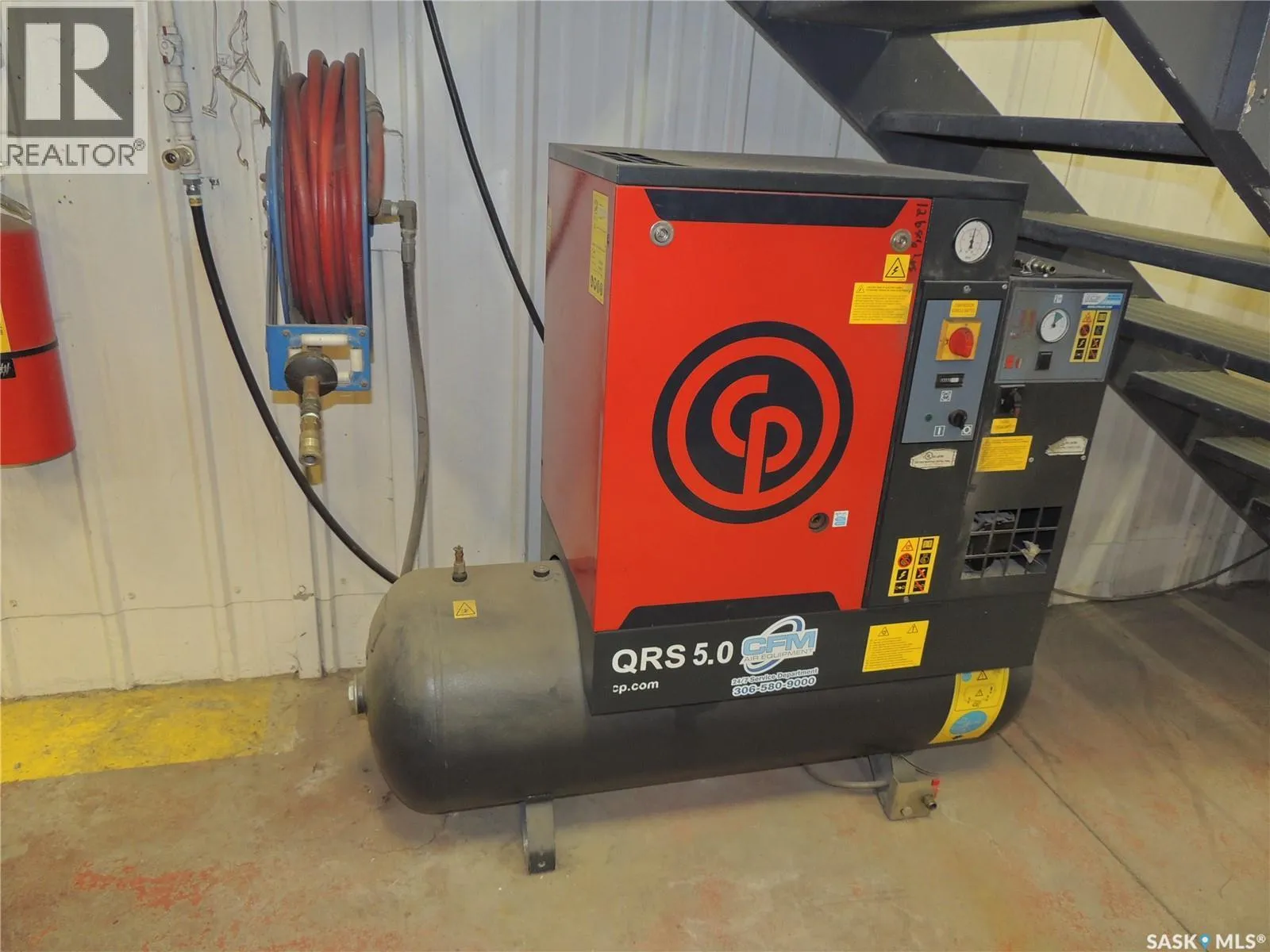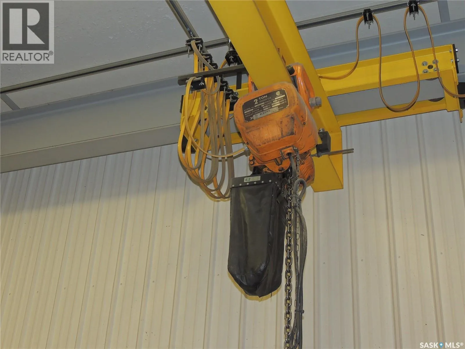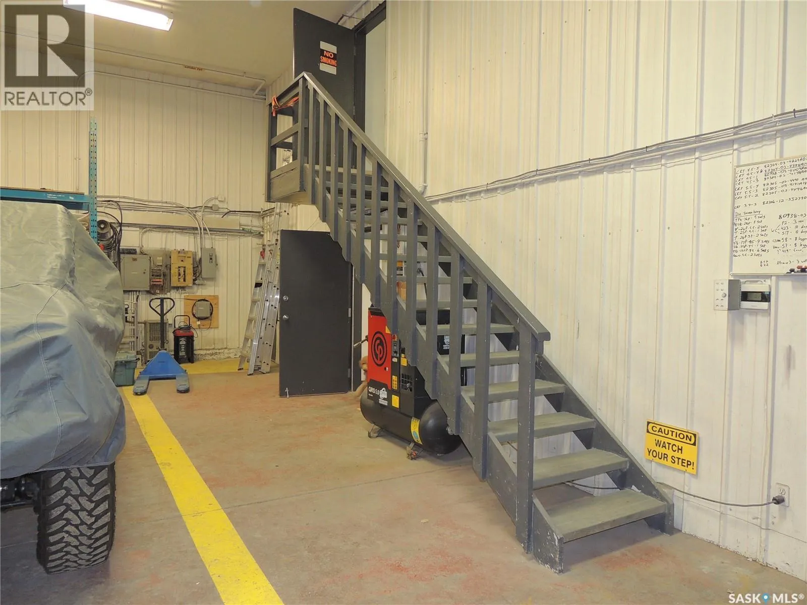 This 4040 sq ft shop is located in soo industrial subdivision. The lot size is 1.51 acres. There is an additional 1000 sq ft mezzanine on the second floor. The main floor has a front porch, reception area, 2 offices, board room and a half bathroom. There is also a back office and half bathroom on the shop side. The second floor has a board room, laundry room and 1 office. The shop has 3 doors. There is a 2 ton crane installed in 2017. There is also a natural gas hotsy pressure washer and a compressor. The yard has a tarped 2500 sq ft building with wood matting floor. There is an additional 14x24 garage with 3 pause power in the shed behind. (id:27476)
