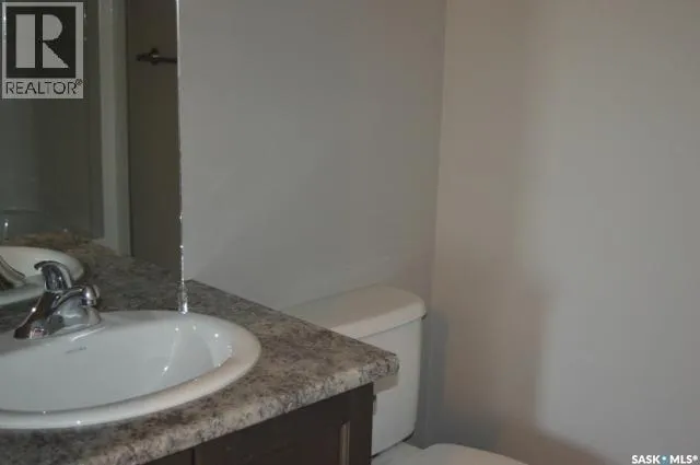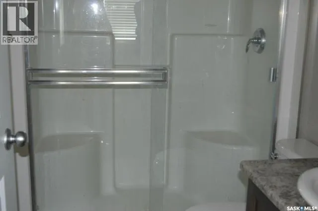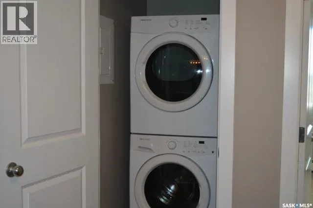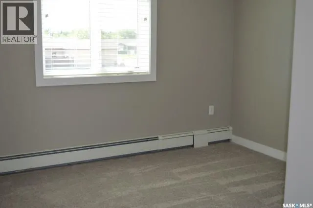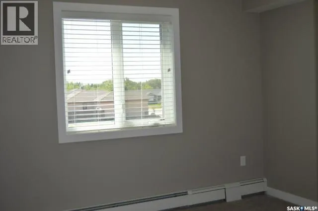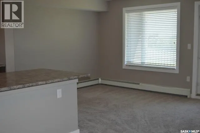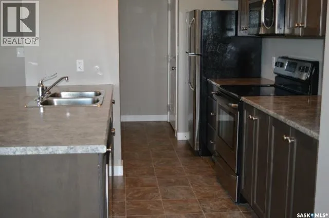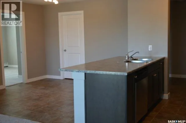 907 sq.ft. corner unit faces South/East in one of the newest Condominium buildings in Estevan. This unit is open concept featuring Linoleum flooring throughout the entrance, kitchen, dining room and grey carpet in the living room. Spacious master bedroom with large windows to let in natural light, walk in closet and 3 pc bathroom with a walk in shower. There is a large spare bedroom and full bathroom and laundry. Off the living room is a nice sized balcony to sit out on. One underground parking is included. Call to view!! (id:27476)